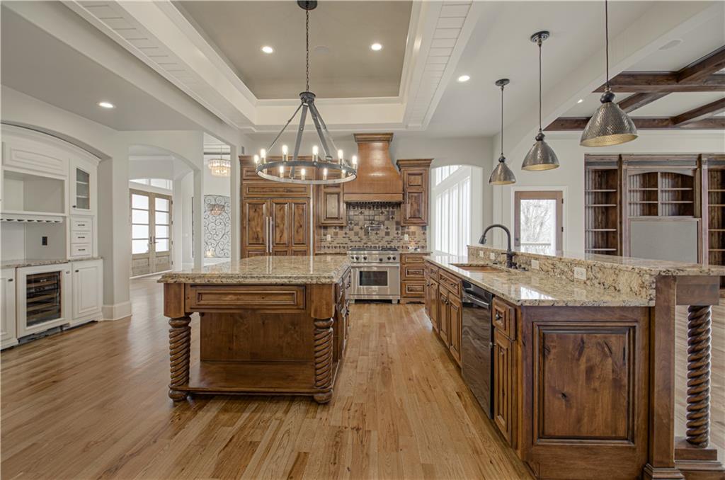 Looking for resort-style living on an acreage lot that Backs to Mature Timber with a true Scenic view… From the moment you arrive, you’re welcomed by a sense of space, privacy, and quiet luxury that’s increasingly hard to find, This One-of-a-kind Custom Built Reverse 1.5 home offers an Open Main Level Design with Sunlight that pours through the oversized windows, Elegant Box Beam Ceilings, highlighting rich architectural details while multiple gathering spaces create a natural flow for hosting on any scale. A gorgeous Chefs Kitchen, Refinished Hardwoods, New Lighting, Private Master Suite on Main with all new carpet, new tile in the spa like master bath & giant walk-in closet. Fabulous Screened-in sunroom and large office. Oversized 4-Car Garage with new floors .Downstairs, a fully finished lower-level transforms into an entertainer’s dream. With 3 Bedrooms, 2 and a half baths ,a Bonus Room, Wine Cellar, finished Rec Room, Second Kitchen area, and wait until you see the Full Suspended Slab Storage/Workout space! The lower level offers space for additional rooms. Step outside and the lifestyle continues. The Carriage home (detached garage) built in 2015 offers additional living space and work space! The main level hosts a 4 car tandem garage space and a half bathroom . Upstairs is a full living space with a Gorgeous kitchen, Granite oversized island, custom cabinets, Full bathroom ,W/D, Bedroom, large closets with extra storage, loft space, and lower level host an amazing theatre room ready for more entertaining and another full bathroom. Additional storage and another garage space! With a full outdoor oasis for the grilling connoisseur waiting for you! This home has been painted inside and out, freshly landscaped, new sprinkler system installed. Just minutes from shopping and restaurants .A rare opportunity to own a true estate experience in one of the Northland's gated communities.