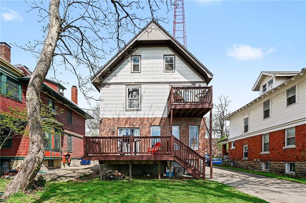 Fall in love with this classic Kansas City Shirtwaist home at 33 E 32nd Street?where timeless 1900 charm meets modern updates. From the inviting covered front porch to the original architectural details, this home offers character at every turn. Inside, enjoy an open main level featuring a spacious living room with gas fireplace, dining area, and updated kitchen with newer appliances, perfect for everyday living and entertaining. The second floor boasts a generous primary suite with private bath, including double vanity, shower, tub, and walk-in closet, plus access to a private deck, ideal for morning coffee or evening relaxation. You'll also find a full hall bath and convenient laundry, nook. The third floor offers two additional bedrooms, a half bath, and zoned HVAC for added comfort. Unfinished basement provides storage or hobby space. Private drive accommodates 2-3 vehicles. Prime location within walking distance to restaurants, coffee shop, and the streetcar extension that can take you from the riverfront to the Brookside area.