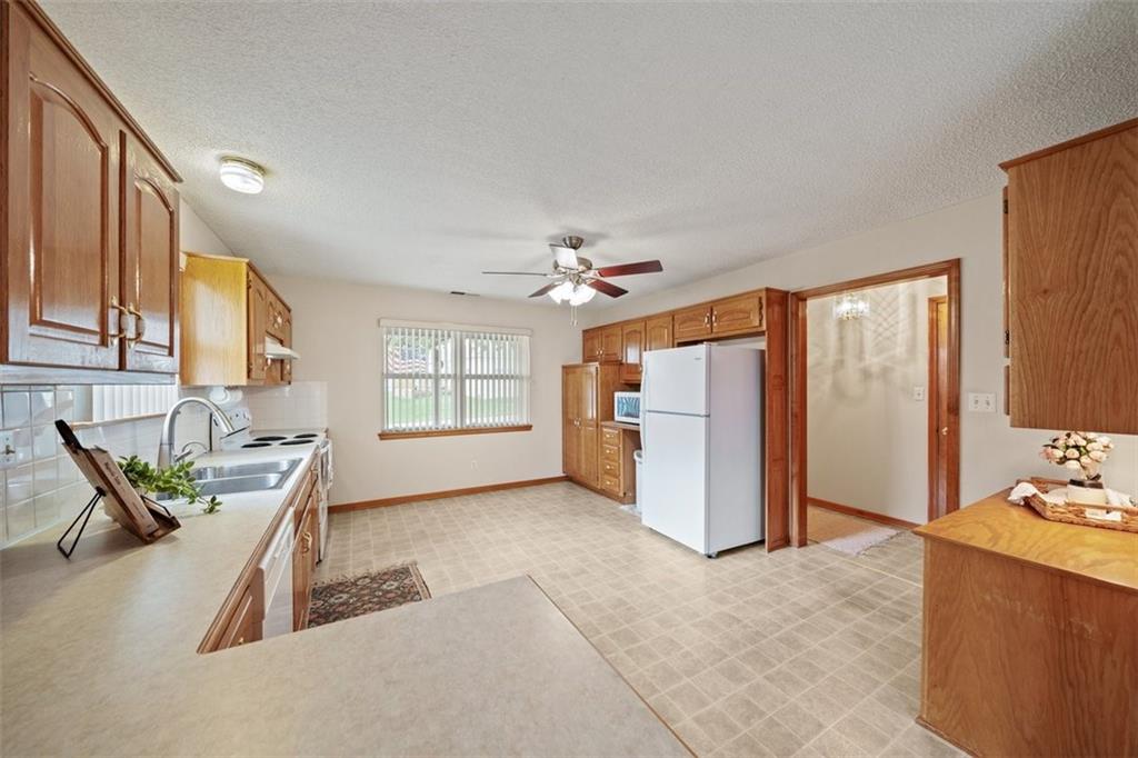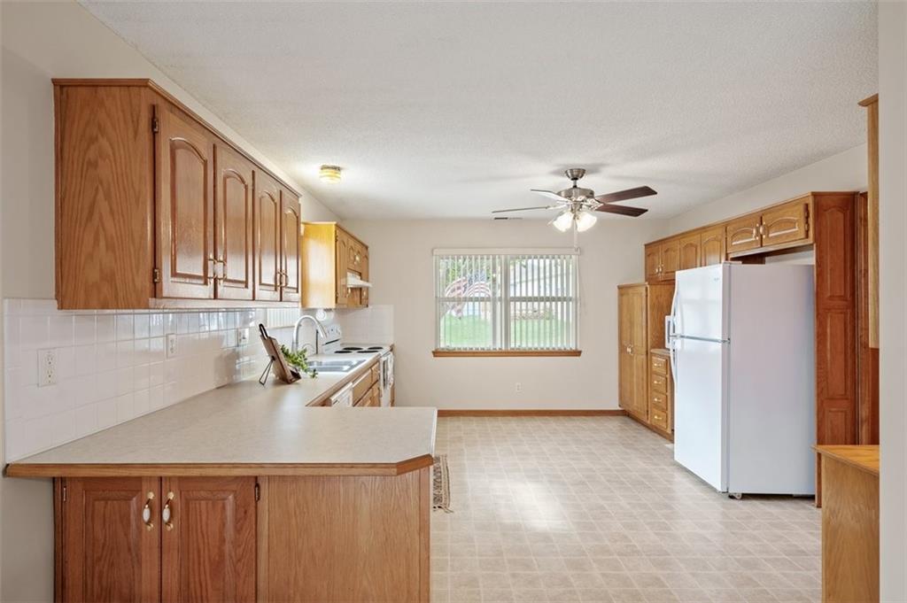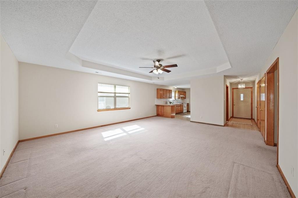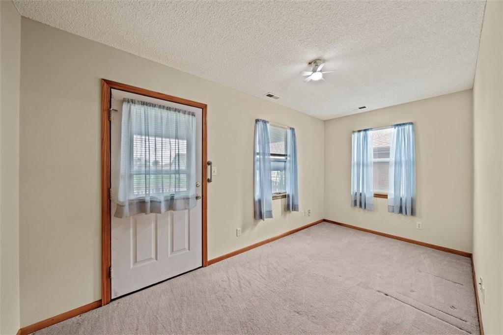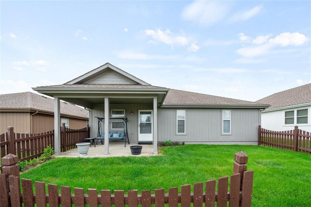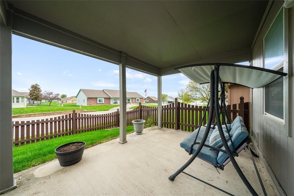 Charming, Move In Ready in 55+ Community, Morningview! This ranch style home offers 2 generously sized bedrooms with large closets and ceiling fans. Master Bath features a NEW Walk In Shower installed November 2025 with transferable warranty. 2nd Full Bath includes bathtub and shower combination. Kitchen features oak cabinets, built in desk area, plenty of cabinet storage and eat-in dining. Sunroom/Office Space provides extra space for relaxing with a morning coffee or good book! The backyard is fenced in and has walk out patio area as well. This home is well maintained and conveniently located just across the street from the clubhouse. HOA Covers exterior maintenance, lawn care, snow removal, trash, clubhouse access and more. Morningview is a quiet community in Raymore with convenient access to shopping, restaurants, medical facilities, banks and more. Come take a look and Welcome Home ~ *This home is scheduled for new exterior paint in April of 2026. New Owners can choose from 5 available colors offered by the HOA.