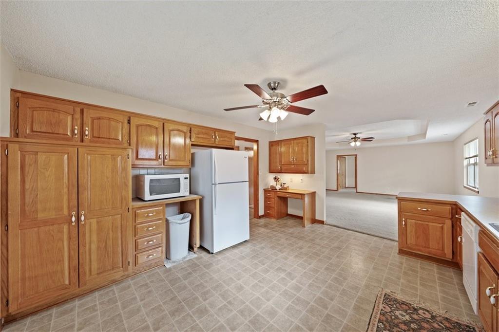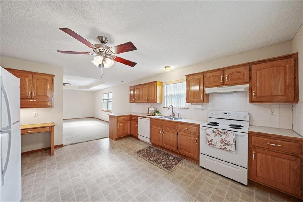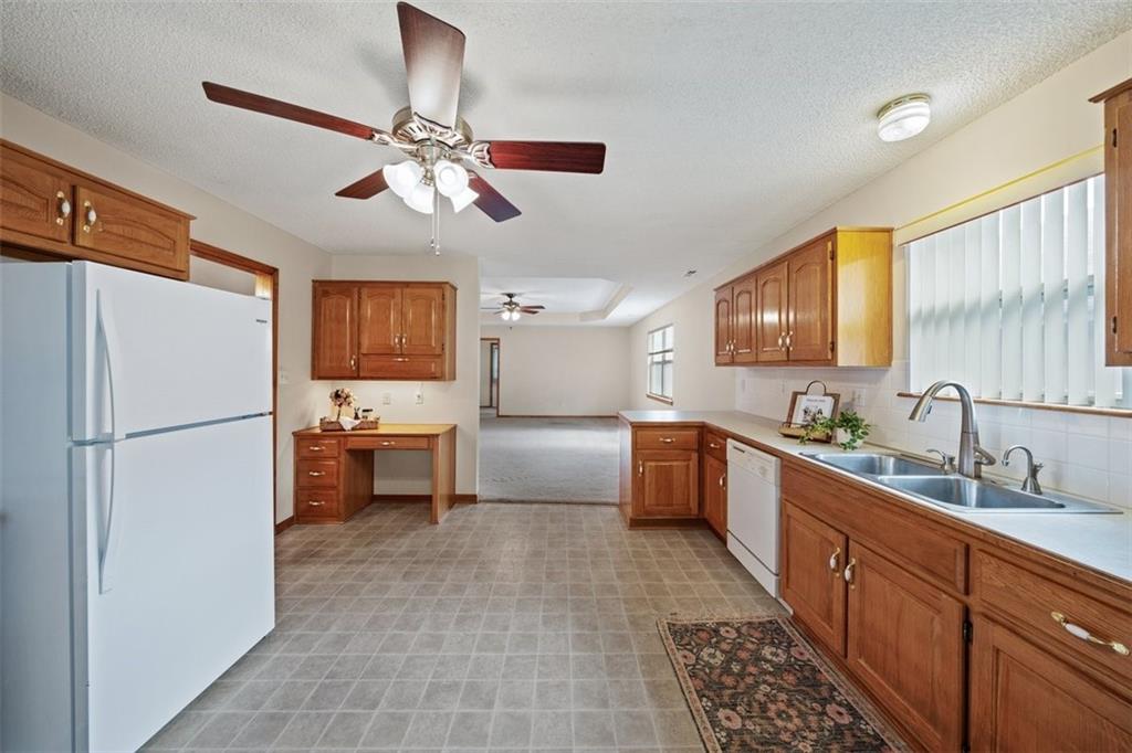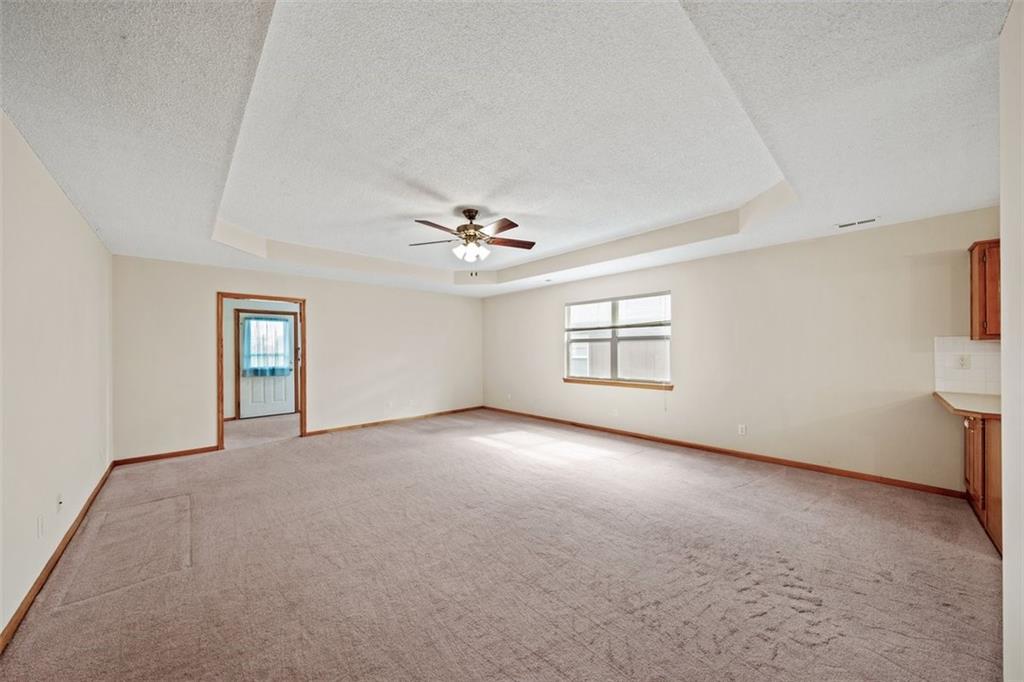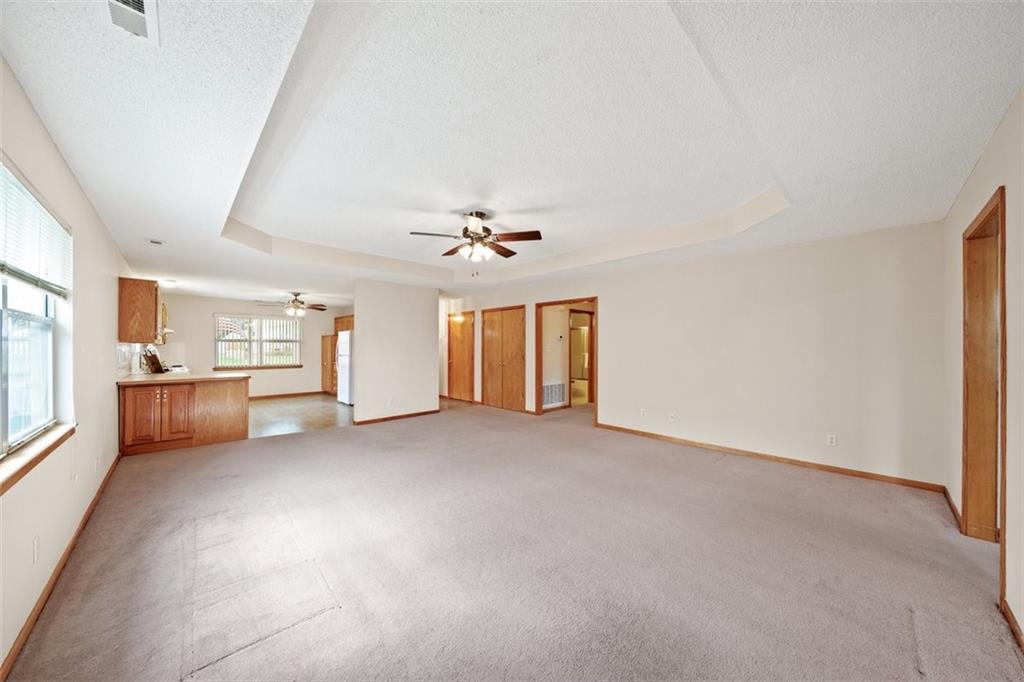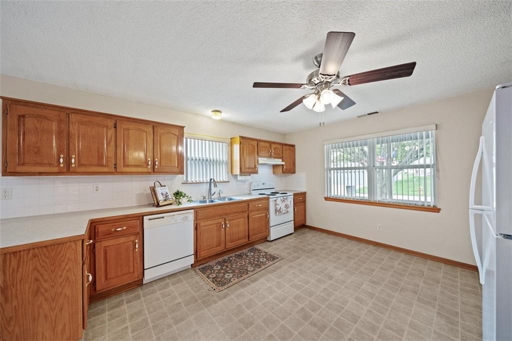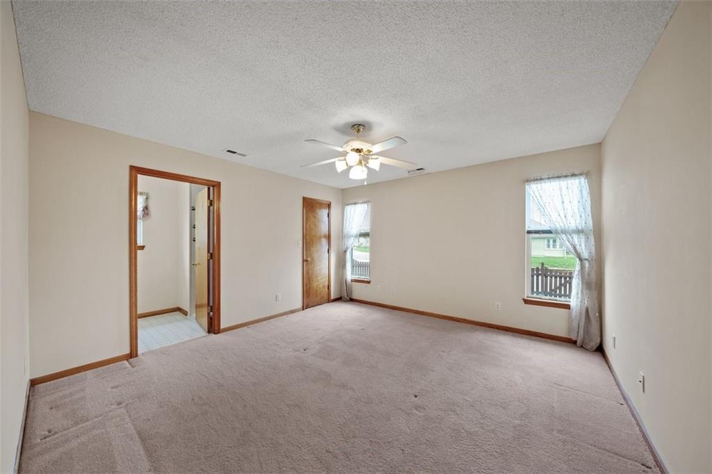 Charming, Move In Ready in 55+ Community, Morningview! This ranch style home offers 2 generously sized bedrooms with large closets and ceiling fans. Master Bath features a NEW Walk In Shower installed November 2025 with transferable warranty. 2nd Full Bath includes bathtub and shower combination. Kitchen features oak cabinets, built in desk area, plenty of cabinet storage and eat-in dining. Sunroom/Office Space provides extra space for relaxing with a morning coffee or good book! The backyard is fenced in and has walk out patio area as well. This home is well maintained and conveniently located just across the street from the clubhouse. HOA Covers exterior maintenance, lawn care, snow removal, trash, clubhouse access and more. Morningview is a quiet community in Raymore with convenient access to shopping, restaurants, medical facilities, banks and more. Come take a look and Welcome Home ~ *This home is scheduled for new exterior paint in April of 2026. New Owners can choose from 5 available colors offered by the HOA.