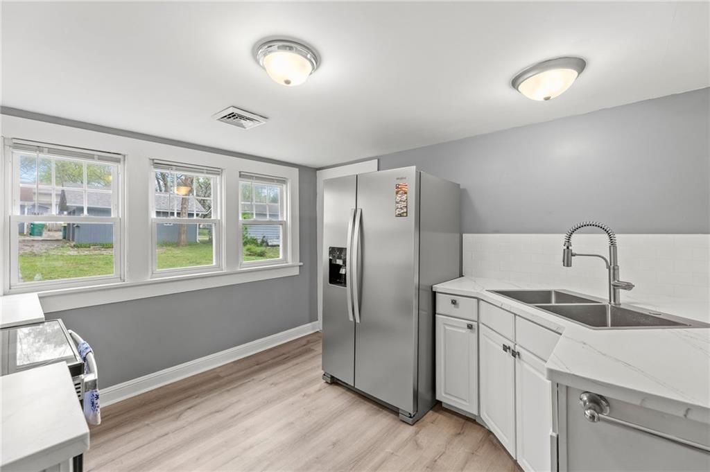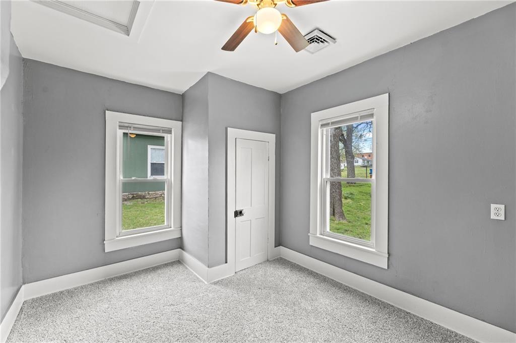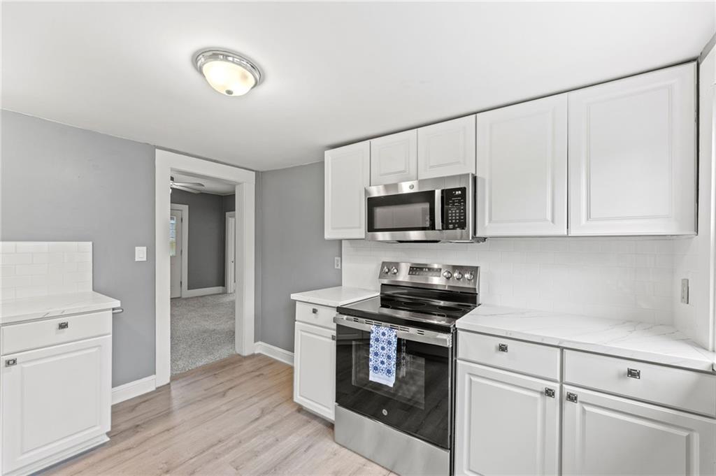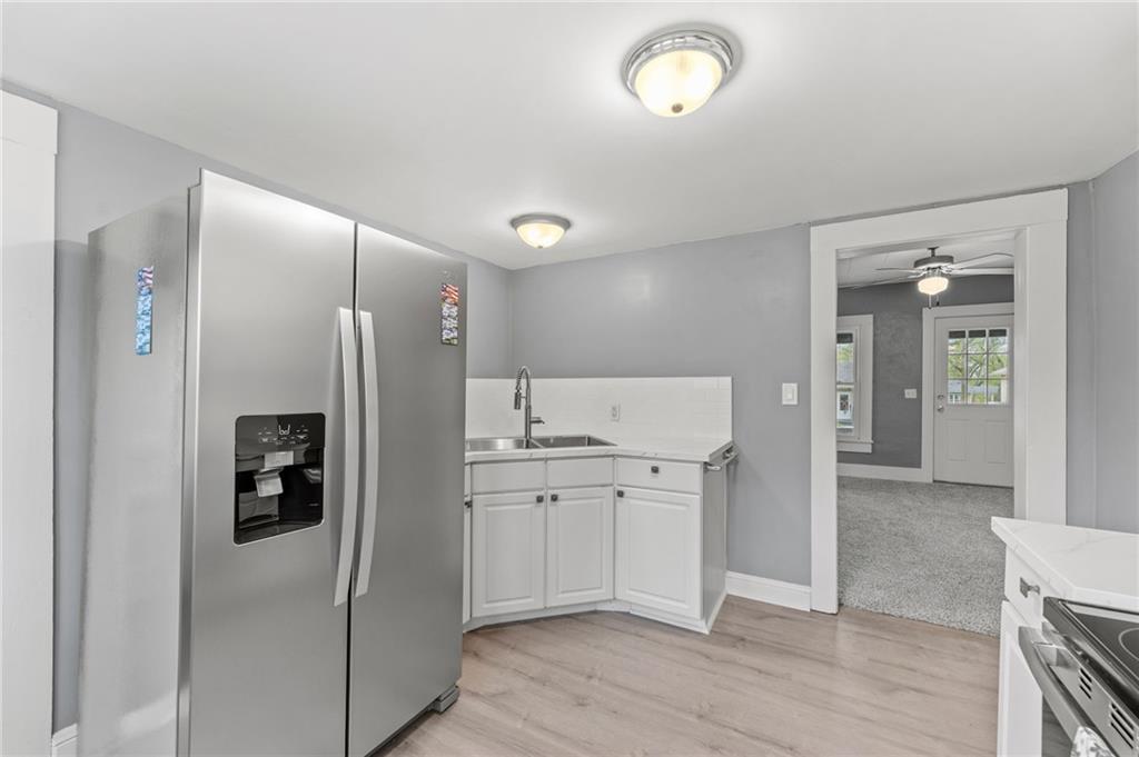 Here is a home with lots of charm! A 3 bedroom, 1 bath home that has been remodeled and brought back to life. New roof and gutters, newer tilt-in windows for easy cleaning, new paint inside and out, ceiling fans, and carpeting! The bathroom features new LVP flooring, new shower, toilet and remodeled. The kitchen has new LVP as well as new stainless steel appliances, double sink, refrigerator, electric stove, microwave and new Corian countertops. This house is move in ready. Come take a look! Did I mention the detached garage? Fresh new landscaping out front!