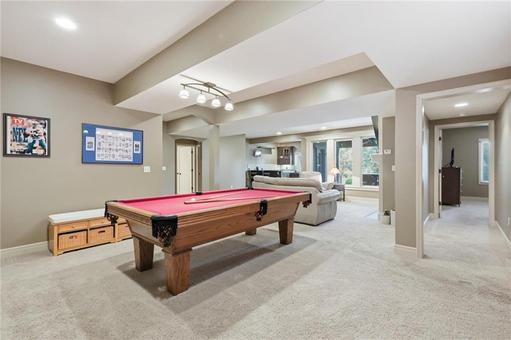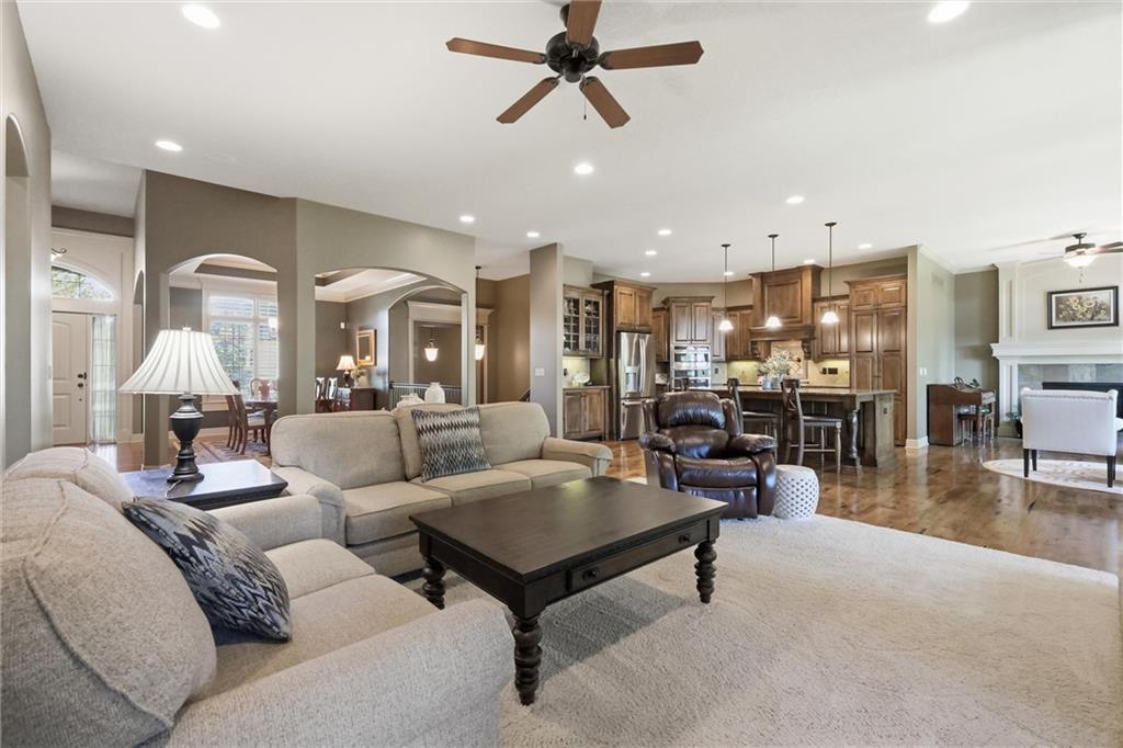 Don’t miss this beautifully maintained home designed for both everyday living and exceptional entertaining. Every bedroom features its own full bathroom, offering comfort and privacy for family and guests alike. The heart of the home is the stunning kitchen, complete with stained wood cabinetry, stone countertops, stainless steel appliances, a large island, and a walk-in pantry. The open layout flows seamlessly to the screened-in deck, where you’ll find a see-through fireplace with space for a TV—perfect for cozy evenings or hosting friends. The main level also offers a versatile second bedroom or office, along with an oversized laundry room for added convenience. The spacious primary suite is a true retreat, featuring a tray ceiling, private deck access, a large walk-in closet, and a luxurious en-suite bathroom with a soaking tub, separate shower, and double vanity with ample storage. Downstairs, the finished walkout basement is built for entertaining, complete with a fireplace, game room area, and a wet bar with stained cabinetry, sink, and dishwasher. Two additional bedrooms and two full bathrooms provide even more living space. Step outside to enjoy the extended patio, thoughtfully designed with an outdoor kitchen area, fire pit, and beautifully finished ceiling detail over the covered patio. The backyard also features professional landscaping and a tranquil water feature. The home is even prepped for a hot tub hookup. Car enthusiasts and hobbyists will appreciate the oversized three-car garage with a staircase leading directly to the basement. This home has been exceptionally cared for and is truly move-in ready—an incredible opportunity for its next owner.