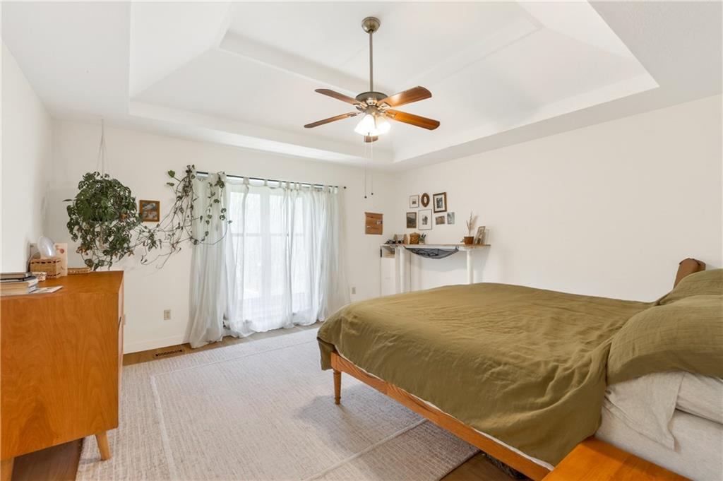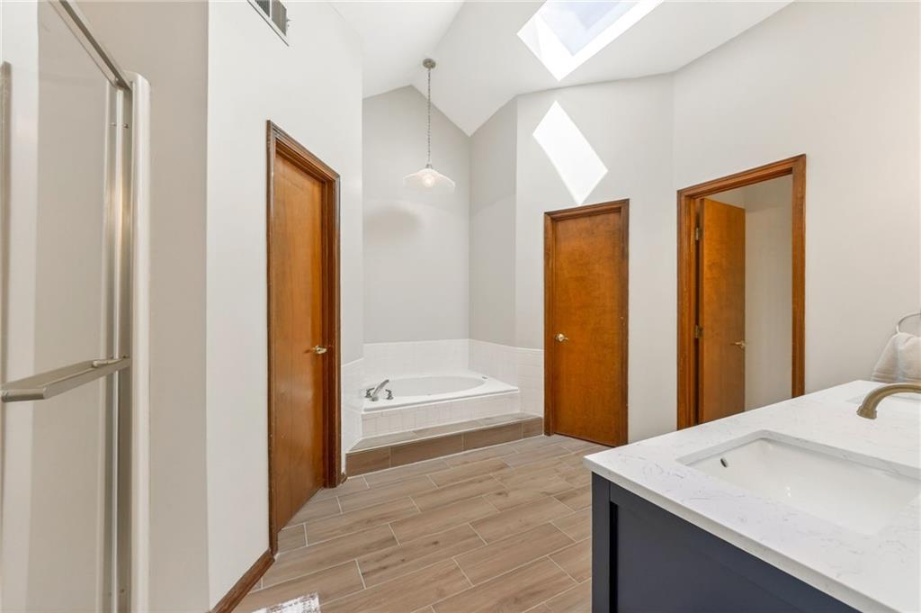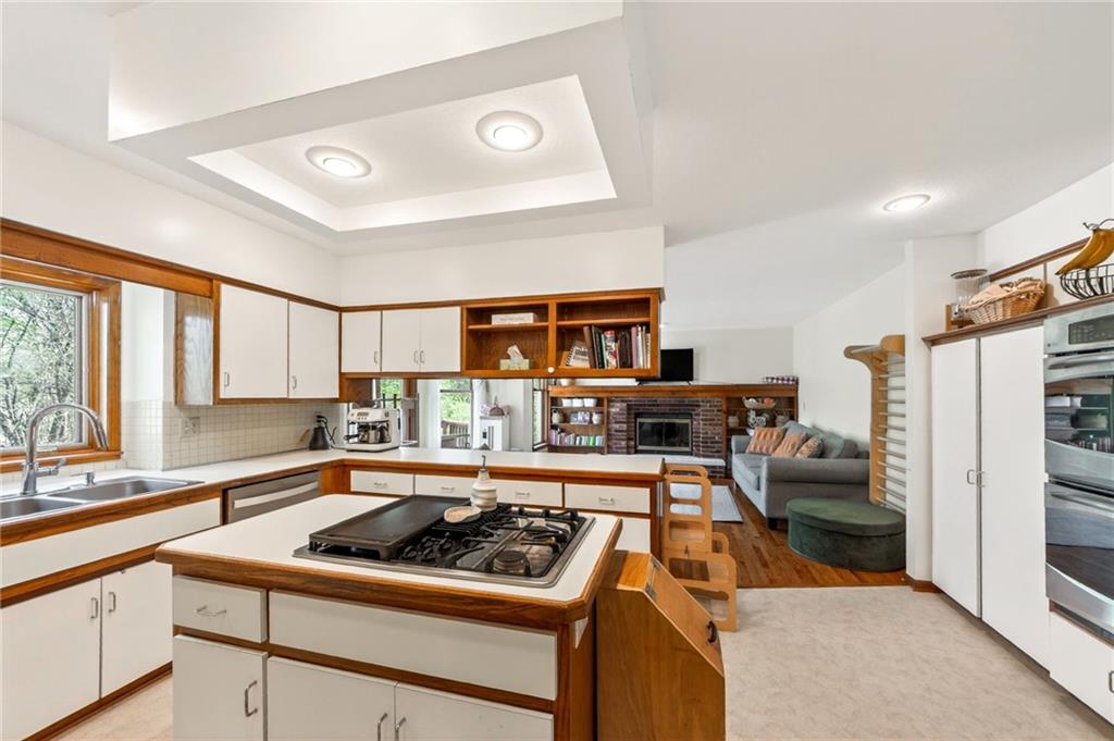 Located at the end of a cul-de-sac with green space behind and no rear neighbors, this 4-bed, 2.5-bath two-story has a freshly painted interior with new luxury vinyl plank flooring throughout. The main level features two fireplaces, a double oven kitchen, and main floor laundry. All four bedrooms are upstairs with a deck out back overlooking the green space. The finished walk-out basement features TWO non-conforming bedrooms and a second kitchen with butcher block counters, white shaker cabinets, a farmhouse sink, and a large island. This space is ideal for multi-generational living or rental income. The Solar panels and tankless water heater provide a more energy efficient home to help cutdown on utility costs. The green space to the right of the home includes a trail system ready to be explored. Don’t miss this one! Schedule your showing today!