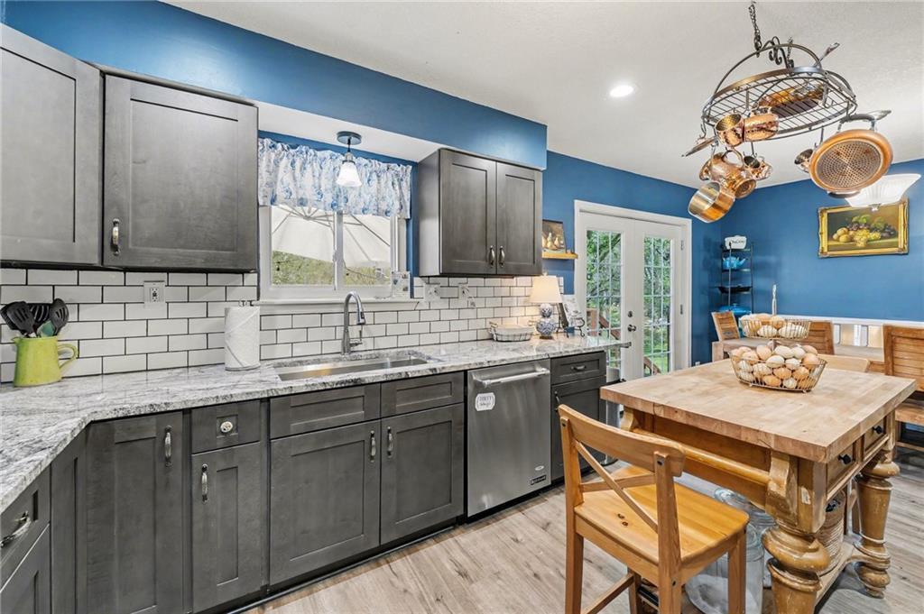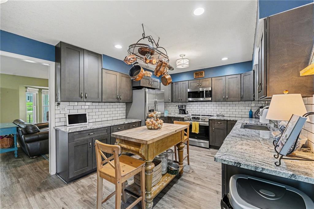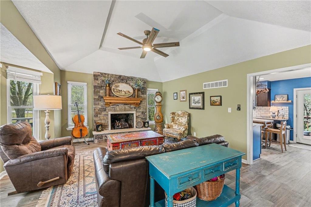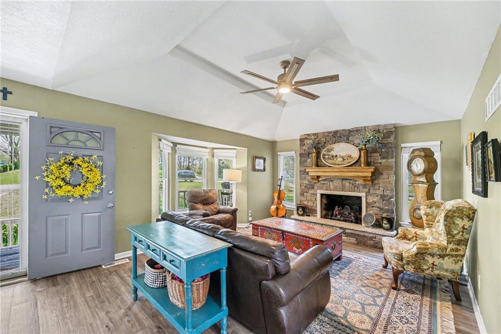 Hard-to-find, beautifully updated home on +/-2 acres—offering the perfect blend of peaceful, off-the-grid living with the convenience of being close to town. A spacious front porch welcomes you home and sets the tone for relaxed country living. Inside, you’ll love the soaring ceilings, inviting fireplace, and seamless flow from the living room to the dining area and out to the large deck—perfect for entertaining or unwinding. The updated kitchen features newer cabinetry, granite countertops, a tile backsplash, and a convenient Lazy Susan. Upstairs, the primary suite offers a tray ceiling, two walk-in closets, and a beautifully updated bathroom with a double vanity and tiled shower. Two additional bedrooms, a full bath, and a laundry area complete the upper level. Downstairs includes a cozy family room and a sub-basement ready to be finished for future expansion. Step outside and enjoy your own private retreat—featuring a large deck for sunset views, fruit trees (apple, pear, peach, & persimmon), a peaceful creek, scenic surroundings, a garden, and a functional storage shed. There’s even a chicken coop, with chickens included if you’d like! Additional updates include a newer furnace, air conditioner, water heater, and fresh interior paint.
