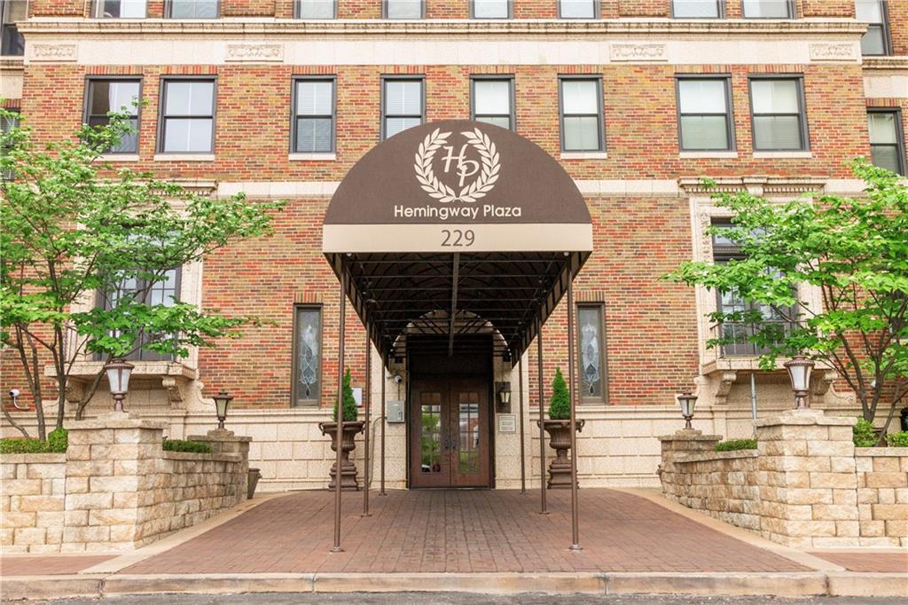 Live in the iconic Hemingway Condominiums just steps from the Country Club Plaza. This rare 2-bed, 2-bath unit offers 1,542 sq ft—one of the larger floor plans in the building. Located on the first floor for easy access, this home sits on the quiet south side and remains highly secure within a gated building with 24-hour doorman service. The spacious, light-filled layout features generous living and dining areas and a functional kitchen with ample storage. The primary suite includes an en-suite bath, great closet space, and in-unit laundry conveniently located within the master closet. The second bedroom offers flexibility for guests or a home office. Enjoy premium amenities including valet parking, secure entry, fitness facilities, garage parking, and a rooftop terrace with stunning Plaza views. A rare combination of size, location, and convenience—this is Plaza living at its best.