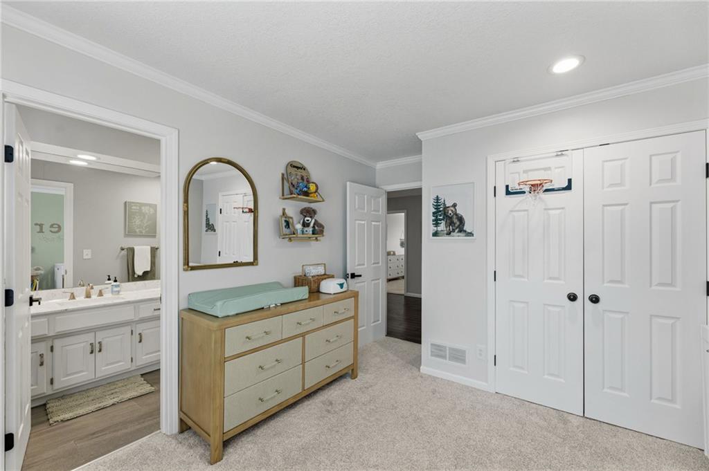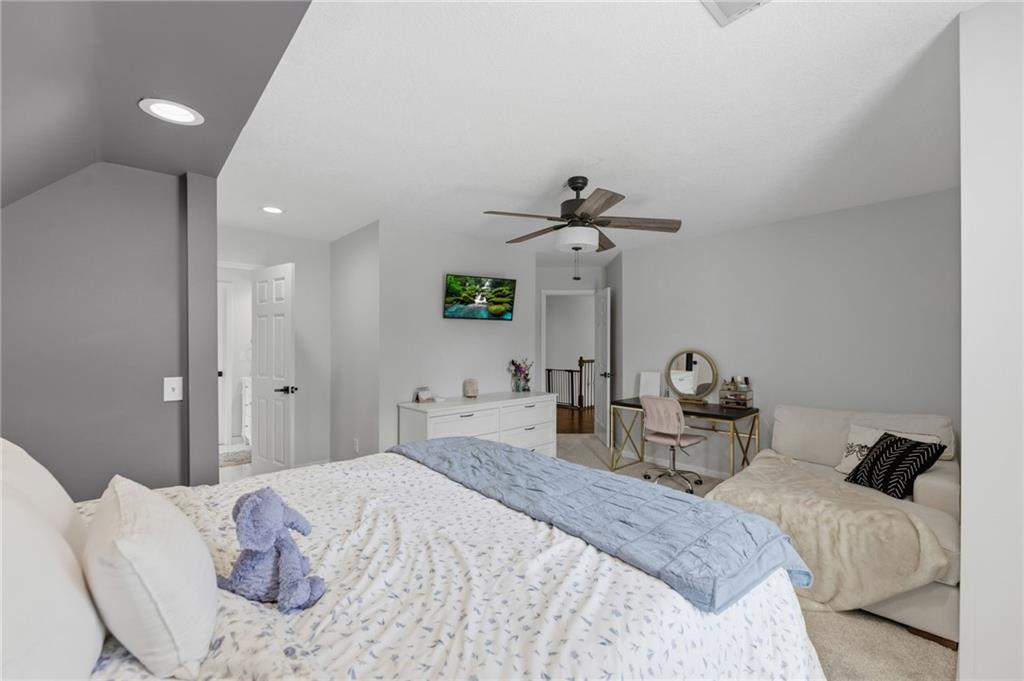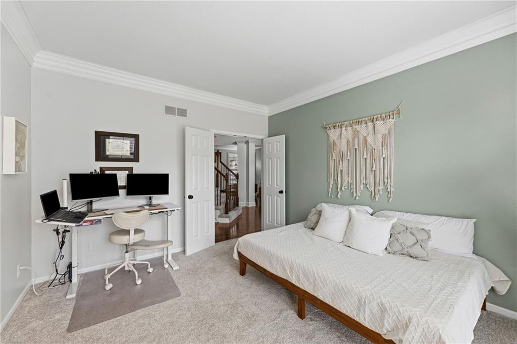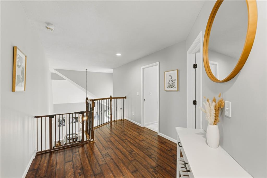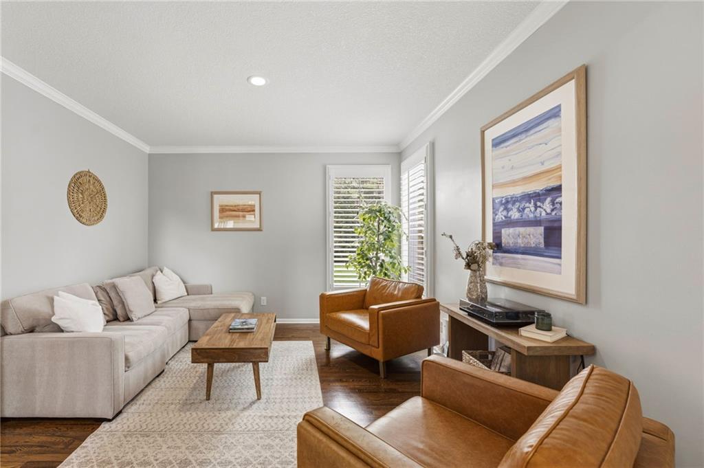 This home offers an impressive blend of luxury, functionality, and an unbeatable location. Step inside to a spacious, light-filled interior featuring designer finishes and quality craftsmanship throughout. Hardwood floors anchor the main level, where a thoughtfully designed layout offers multiple living and dining spaces—perfect for both everyday living and effortless entertaining. Enjoy a large, inviting family room ideal for gathering, along with additional living areas that provide flexibility for relaxing, working, or hosting guests. The home also features multiple dining spaces, including a formal dining room for special occasions and more casual areas for everyday meals. Soaring vaulted ceilings and generously sized rooms create a bright, airy atmosphere showcasing the home beautifully. Freshly painted inside and out, the property also boasts numerous upgrades throughout. The stunning gourmet kitchen is a true centerpiece, complete with stainless steel appliances, quartz countertops, and abundant white cabinetry. A well-appointed main-level bedroom provides added flexibility, ideal for guests, multigenerational living, or a private office retreat. Additional highlights include a composite roof replaced less than two years ago, and a lower-level recreation room featuring new LVT flooring, a cozy fireplace and wet bar—ideal for relaxing or hosting guests. A non-conforming sixth bonus room and a convenient half bath complete the lower level. For those who enjoy the outdoors, the newly screened porch offers the perfect retreat. Unwind with a good book while taking in peaceful sunset views over the private fenced backyard. Located in a highly sought-after neighborhood, this home is just minutes from Town Center, offering a variety of dining and shopping options, as well as nearby parks with scenic walking and biking trails.