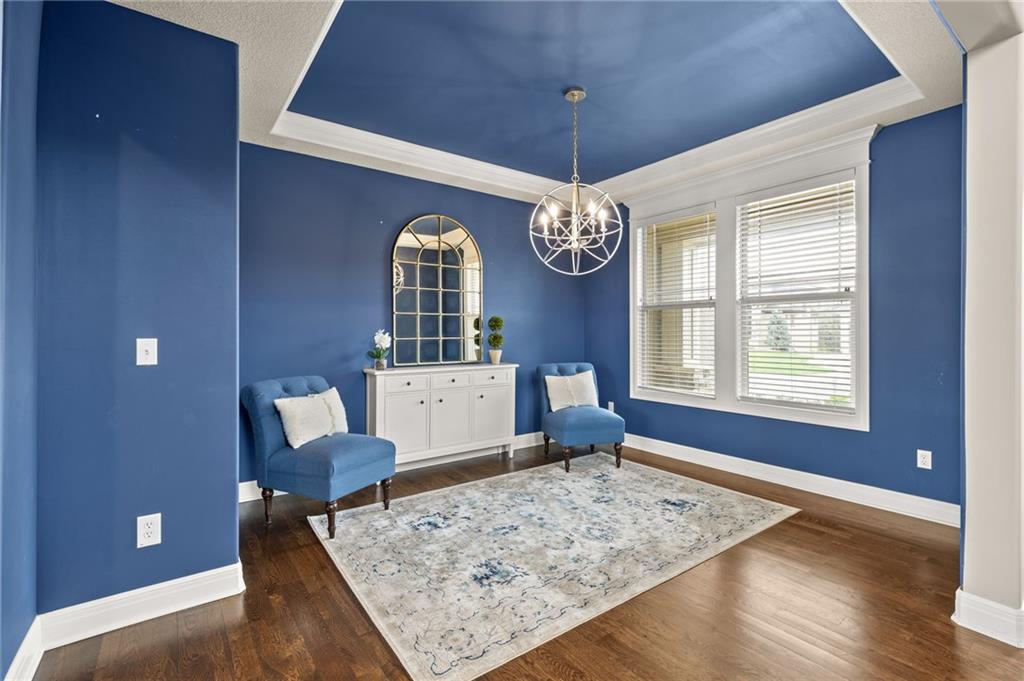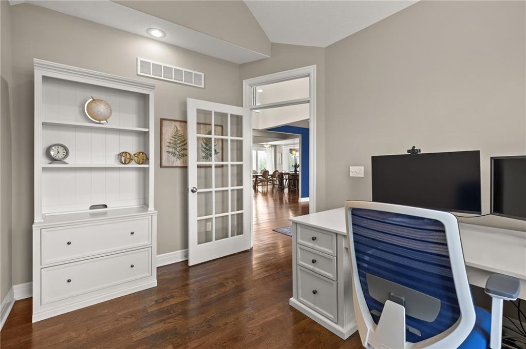 Traveling on highway 69, take W 167th St exit west. Continue on W 167th St to Switzer Rd and turn right (north). Northbound on Switzer Rd, turn right (east) onto W 164th St. Make another quick right hand turn (south) onto Perry St and the home will be on the right (west) side of the street.
