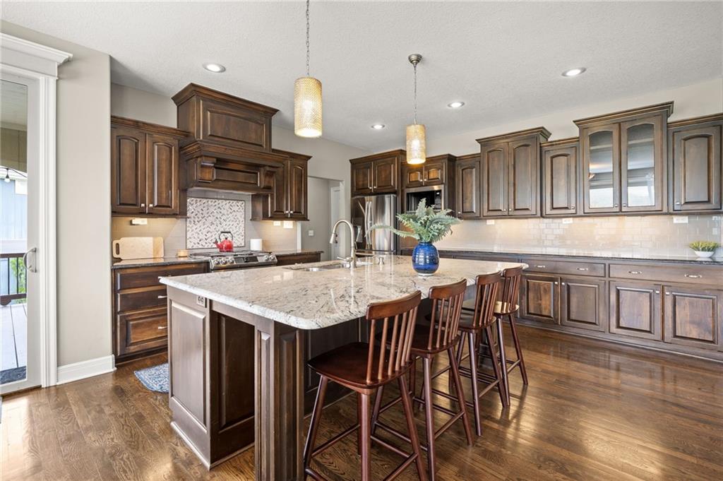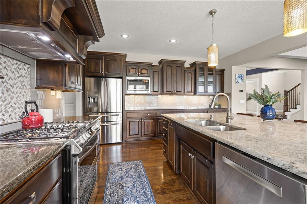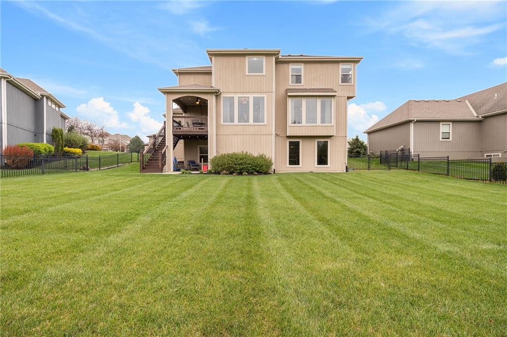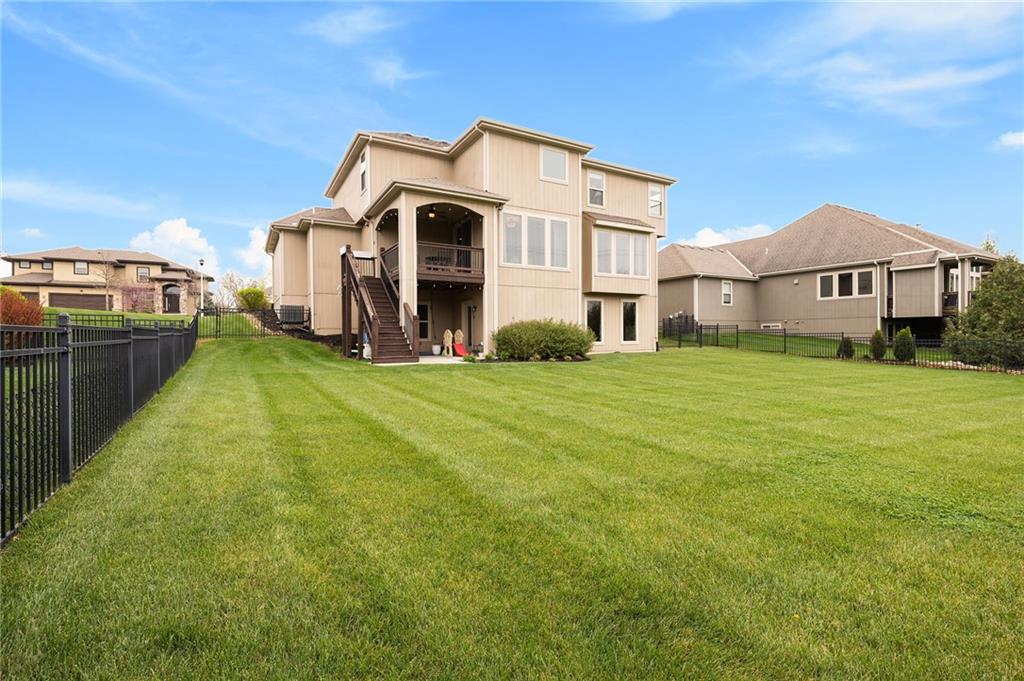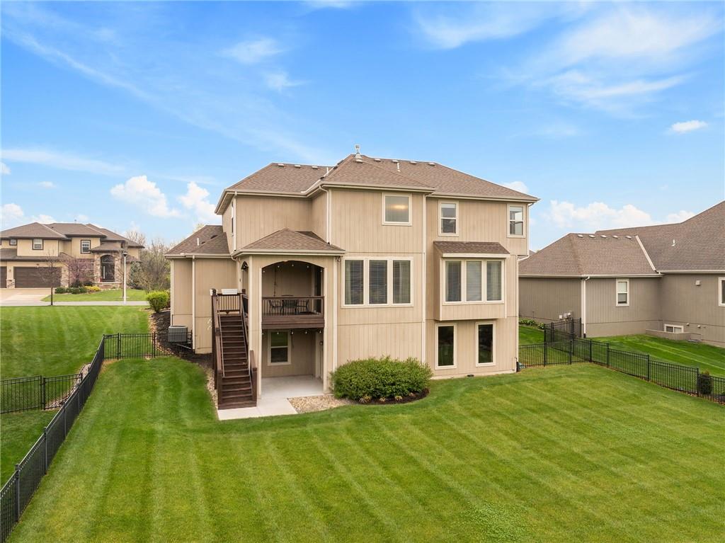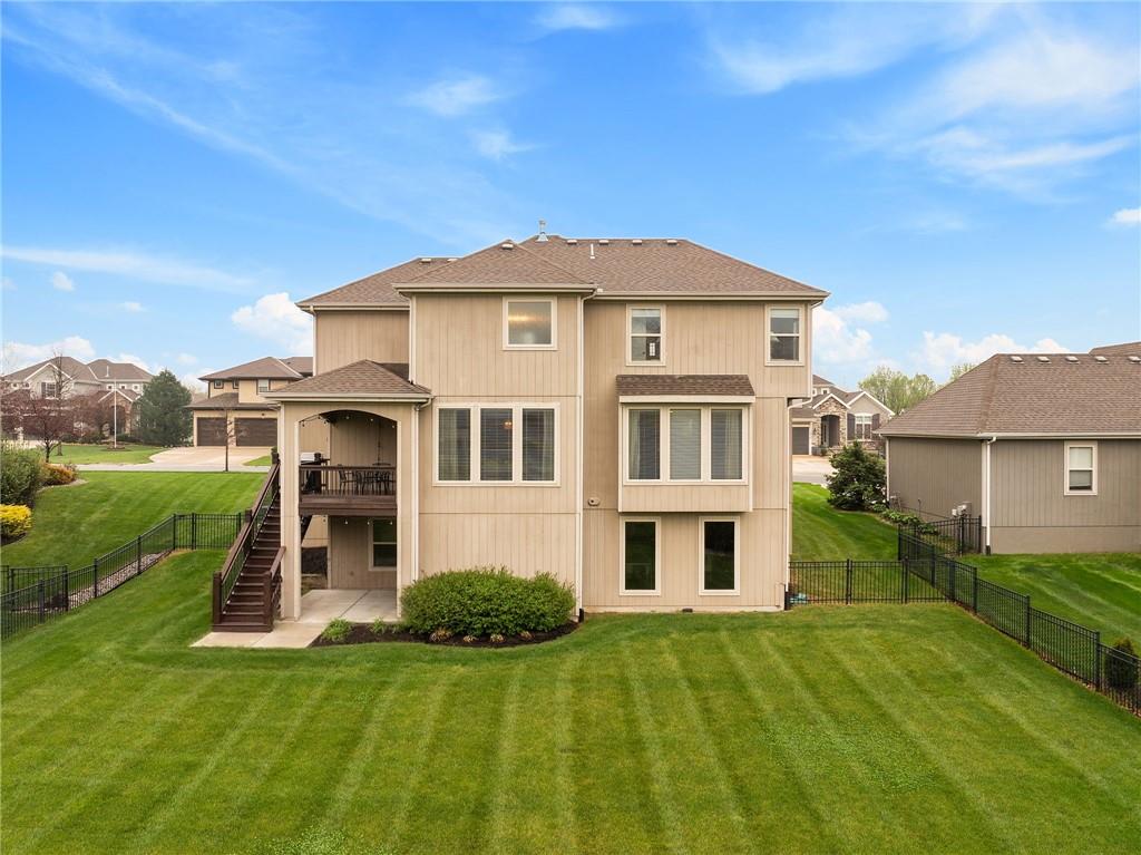 Welcome to Wyngate, a 4 bed 3.5 bath 2900 sqft home that checks every box. The open floor plan is built for entertaining while the generously sized bedrooms are designed for growth. The master suite boasts a fully remodeled granite bathroom with a spacious walk-in closet that leads right to the laundry room. Granite countertops in the kitchen, a covered deck in the backyard, a 3-car garage, and a walkout basement already plumbed for a bath sits ready for your finishing touches. A 2-year old HVAC brings peace of mind. Being within walking distance of Blue Valley elementary, middle and high school brings convenience. This one lives as good as it shows!