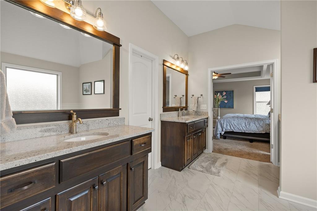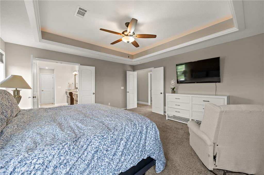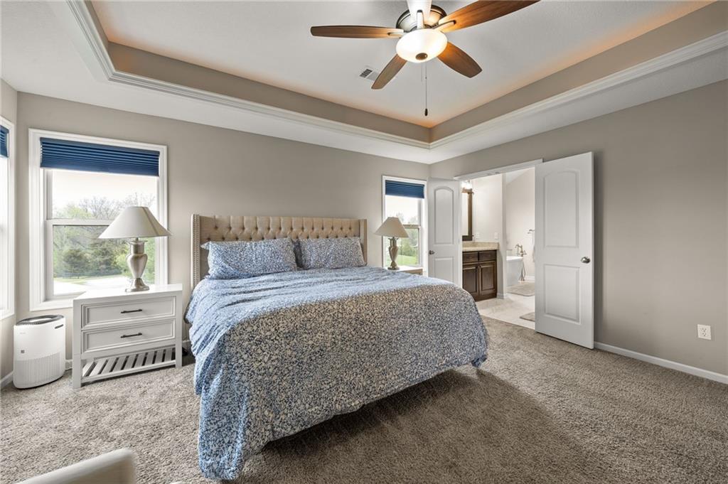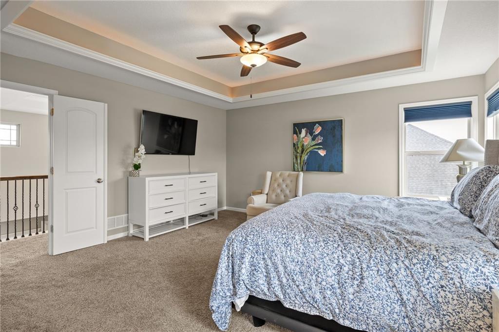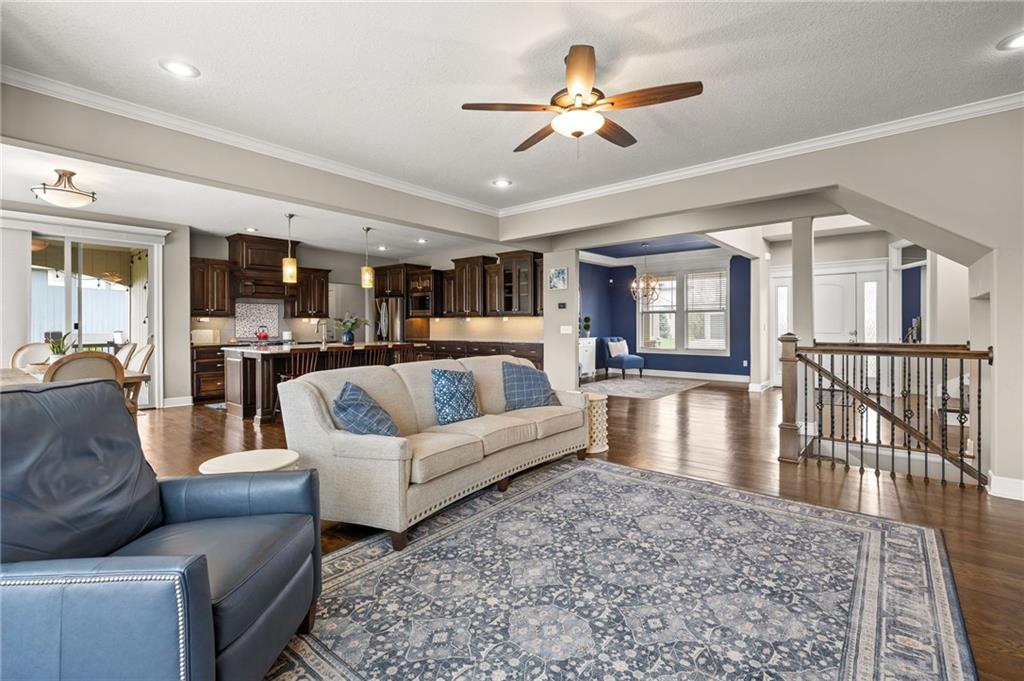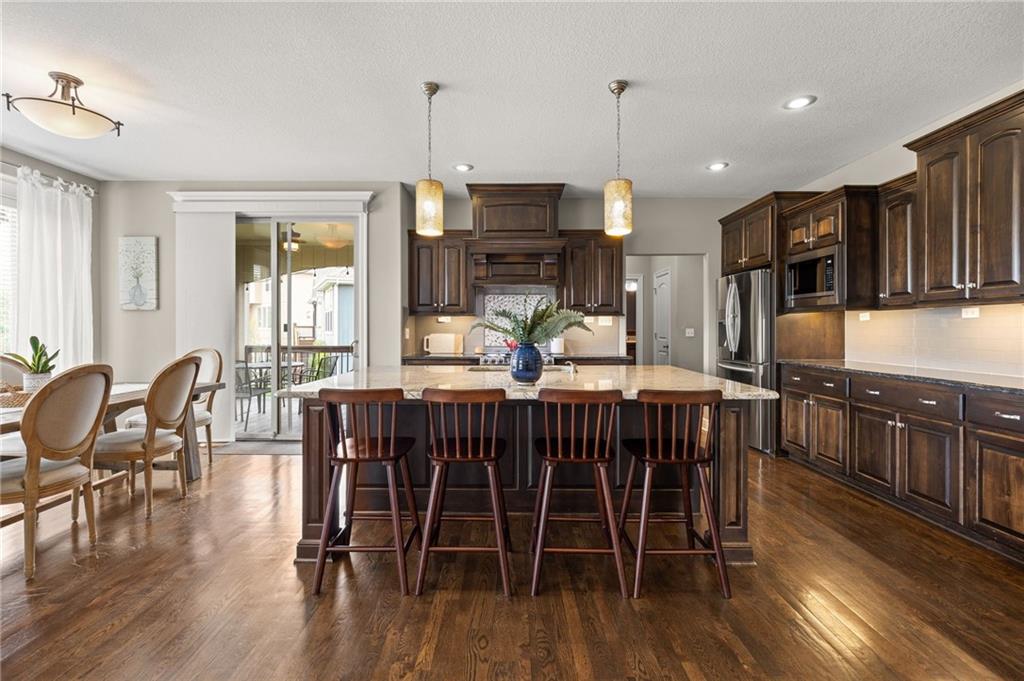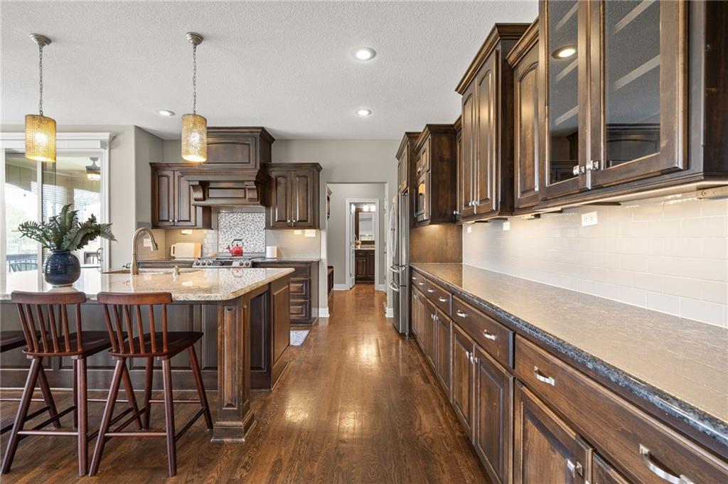 Welcome to Wyngate, a 4 bed 3.5 bath 2900 sqft home that checks every box. The open floor plan is built for entertaining while the generously sized bedrooms are designed for growth. The master suite boasts a fully remodeled granite bathroom with a spacious walk-in closet that leads right to the laundry room. Granite countertops in the kitchen, a covered deck in the backyard, a 3-car garage, and a walkout basement already plumbed for a bath sits ready for your finishing touches. A 2-year old HVAC brings peace of mind. Being within walking distance of Blue Valley elementary, middle and high school brings convenience. This one lives as good as it shows!