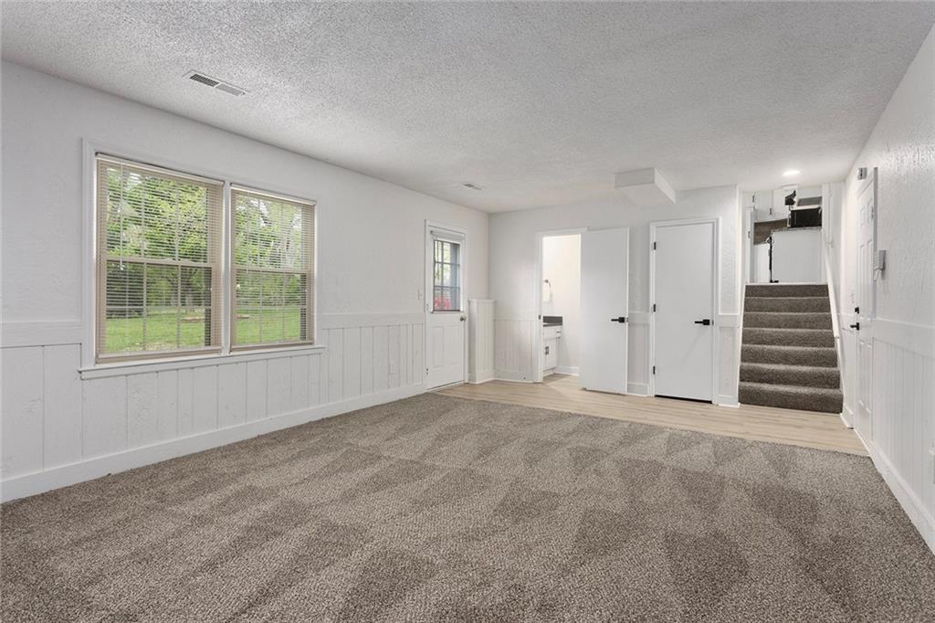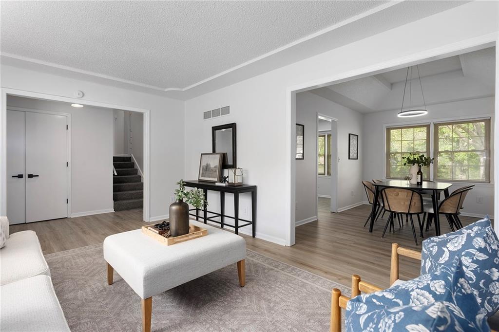 Renovated 3 bed, 2.5 bath home with a functional layout and multiple living spaces. The main level features a spacious living room with large windows and natural light, along with an adjoining dining area. Kitchen includes ample cabinet space and updated countertops. All bedrooms are located on the upper level, including a primary suite with private bath. Lower level offers an additional living area with fireplace, half bath, and walkout access to the backyard - ideal for a second living space, office, or recreation area. Additional features include a 2-car garage, fresh interior finishes, and a large backyard. Conveniently located with easy access to major highways and shopping.