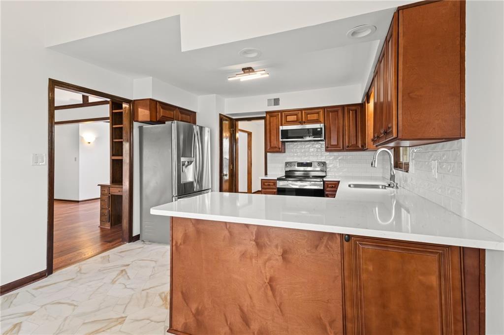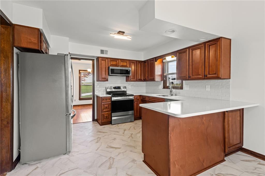 Welcome to this spacious, beautifully maintained and thoughtfully updated home nestled in scenic Platte County, just outside the city limits—offering the perfect blend of peaceful living and everyday convenience. Step inside to a spacious main-level living room featuring soaring ceilings and abundant natural light, creating an open and inviting atmosphere. The home boasts updated flooring and fresh interior paint throughout, along with unique features like a cedar closet and multiple entertaining spaces. The updated kitchen is both stylish and functional, showcasing quartz countertops and stainless steel appliances—ideal for cooking and gathering. Three spacious bedrooms on the main level. The finished basement expands your living options with a large rec room, wet bar, and additional space perfect for a non-conforming bedroom, home office, or guest area. Enjoy cozy evenings by either of the two masonry fireplaces, both equipped with gas logs for comfort and ease. Designed with efficiency in mind, this home includes energy-efficient HVAC, double-pane windows, and extra attic insulation. A large laundry room with additional storage adds everyday practicality. Outdoor living is just as impressive, featuring a spacious deck with a natural gas grill—perfect for entertaining or relaxing. The oversized two-car garage includes openers and a durable epoxy floor, and a new roof provides added peace of mind. Located just a short walk from the neighborhood clubhouse, you’ll enjoy access to a pool, tennis and basketball courts. Situated in the highly rated Park Hill School District and just minutes from Parkville, English Landing Park, the farmers market, Park University, major highways, and the airport—this location truly has it all. Don’t miss your chance to own a move-in-ready home in a fantastic community!
