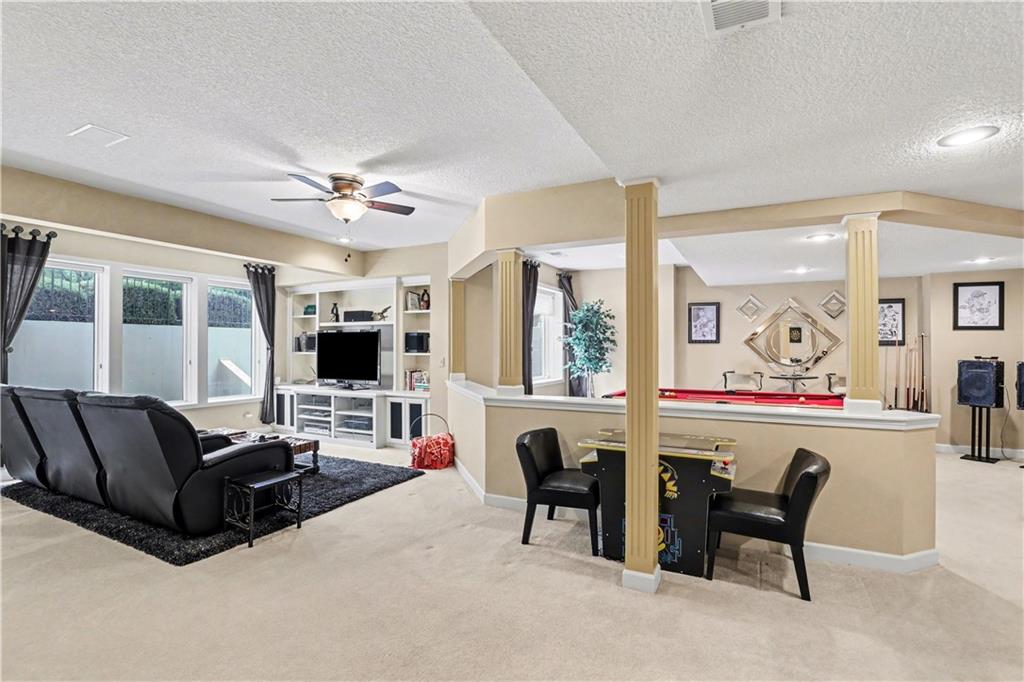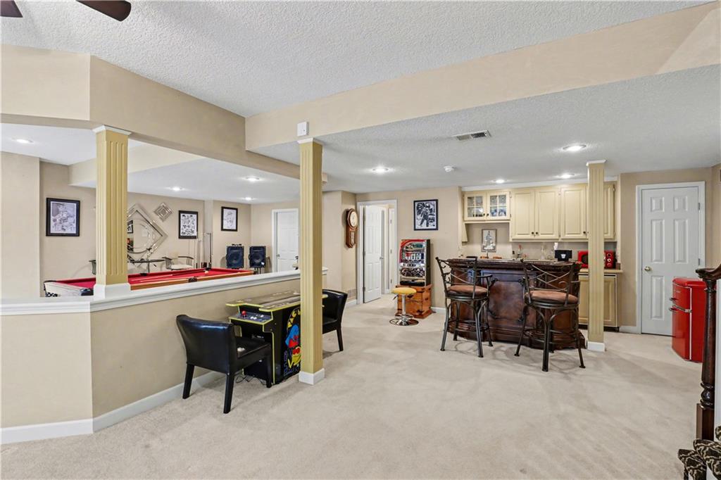 Welcome to this stunning 1.5-story residence nestled in the prestigious Lakewood Shores community, where luxury living meets an unmatched lifestyle. Boasting just under 5,500 square feet, this beautifully maintained home offers 4 bedrooms, 4 full baths, 1 half bath, a 3-car garage, and a fully finished lower level—all set on a beautifully landscaped lot with a spacious patio perfect for outdoor entertaining. From the moment you step inside, you’re greeted by soaring ceilings, dramatic floor-to-ceiling windows, and a grand staircase that sets the tone for the elegance throughout. The expansive living room features a gas fireplace, custom built-ins, and flows seamlessly into the formal dining space. At the front of the home, a private office or sitting room provides a quiet retreat. The updated kitchen is a true showstopper, complete with granite countertops, a center island, gas cooktop, stainless steel appliances, abundant cabinetry, and additional built-ins. The kitchen opens into the hearth room with a second fireplace and casual dining area. Perfect for entertaining! Step outside to the generous patio and enjoy peaceful views of the beautifully maintained backyard. Mudroom and laundry area just off the kitchen. The main-level primary suite is a luxurious retreat, offering a large walk-in closet and a beautifully updated spa-like bath featuring dual vanities, a soaking tub, separate shower, and private water closet. Upstairs, you’ll find three spacious bedrooms—all with walk-in closets—and two full bathrooms. The finished lower level is an entertainer’s dream, featuring a wet bar, full bath, game area, fitness room, office space, family room, and an abundance of storage. Enjoy the incredible amenities that Lakewood community has to offer, including two scenic lakes, swimming beach, pools, tennis and pickleball courts, a golf course, walking trails, and a vibrant calendar of community events. This is more than just a home—it’s a lifestyle.