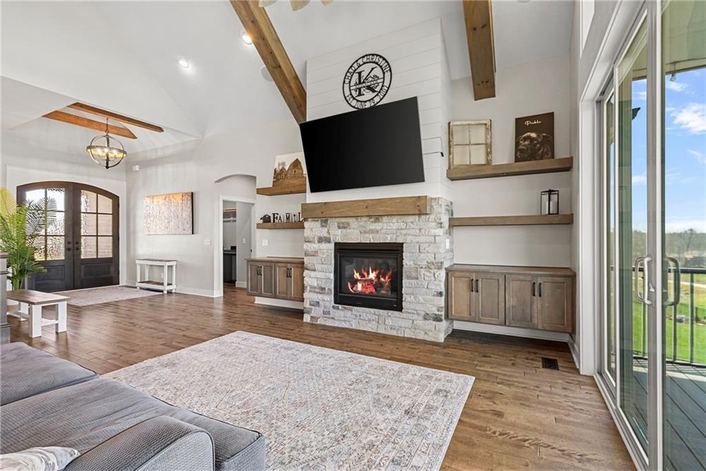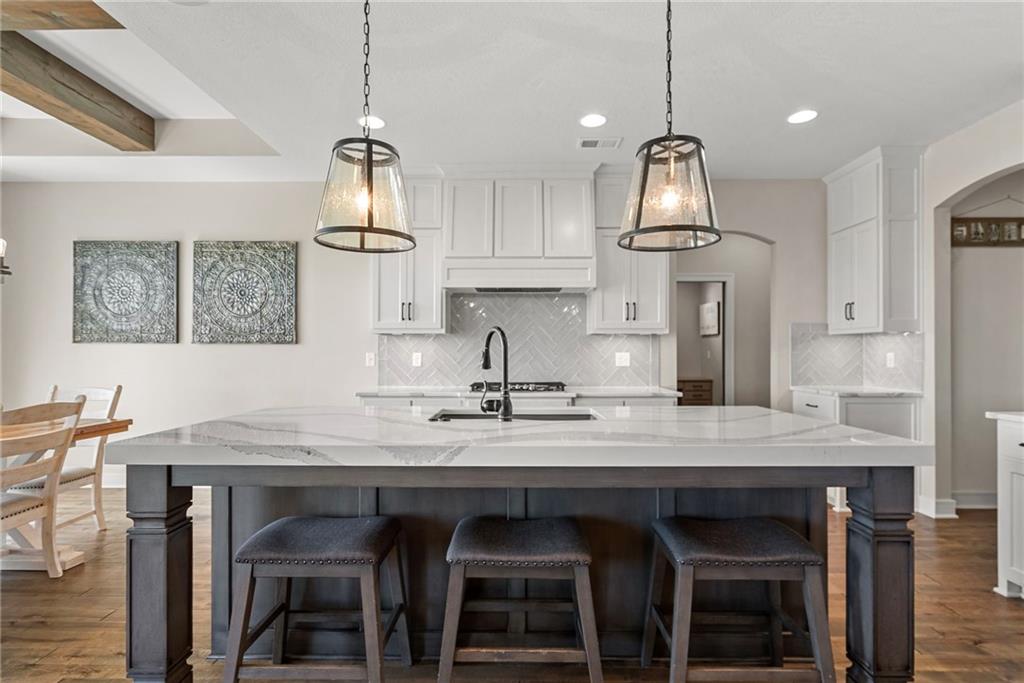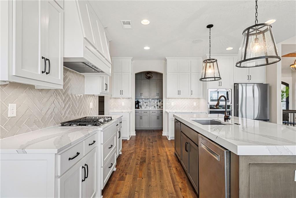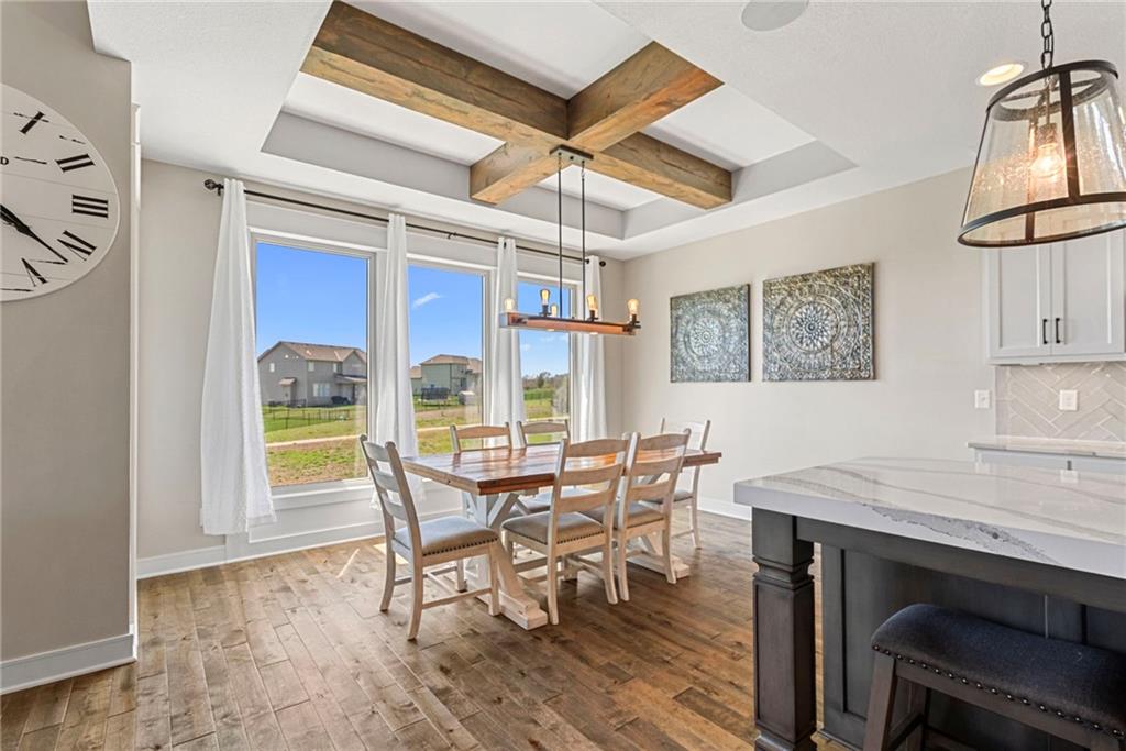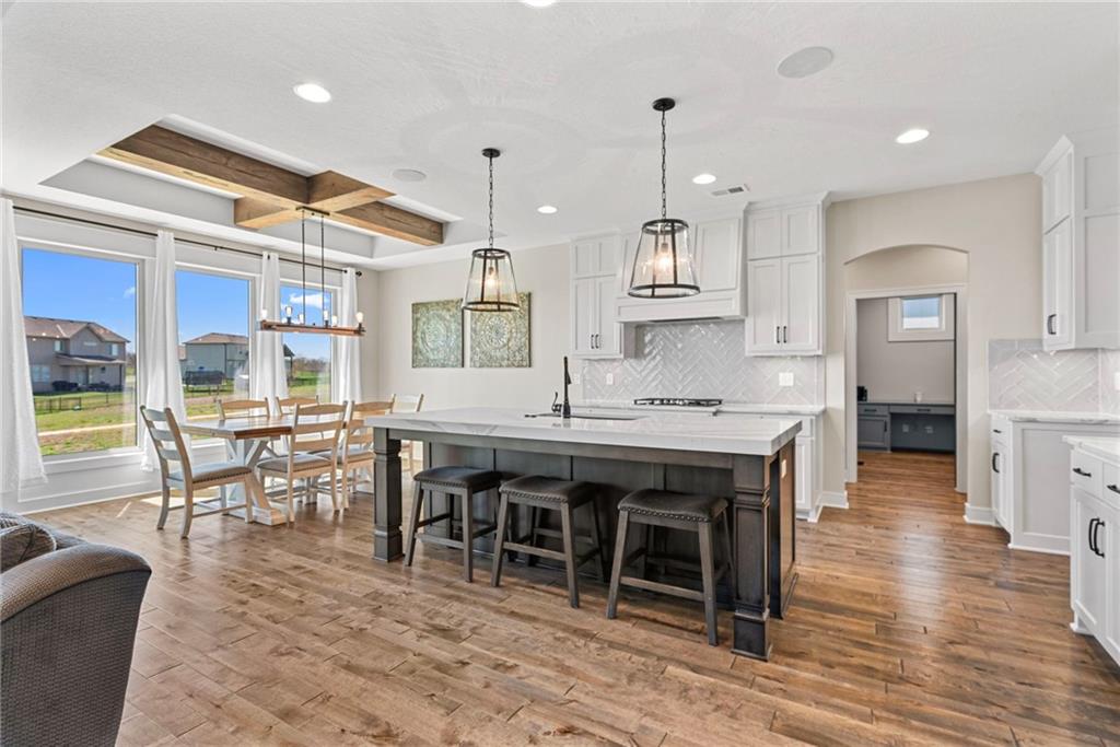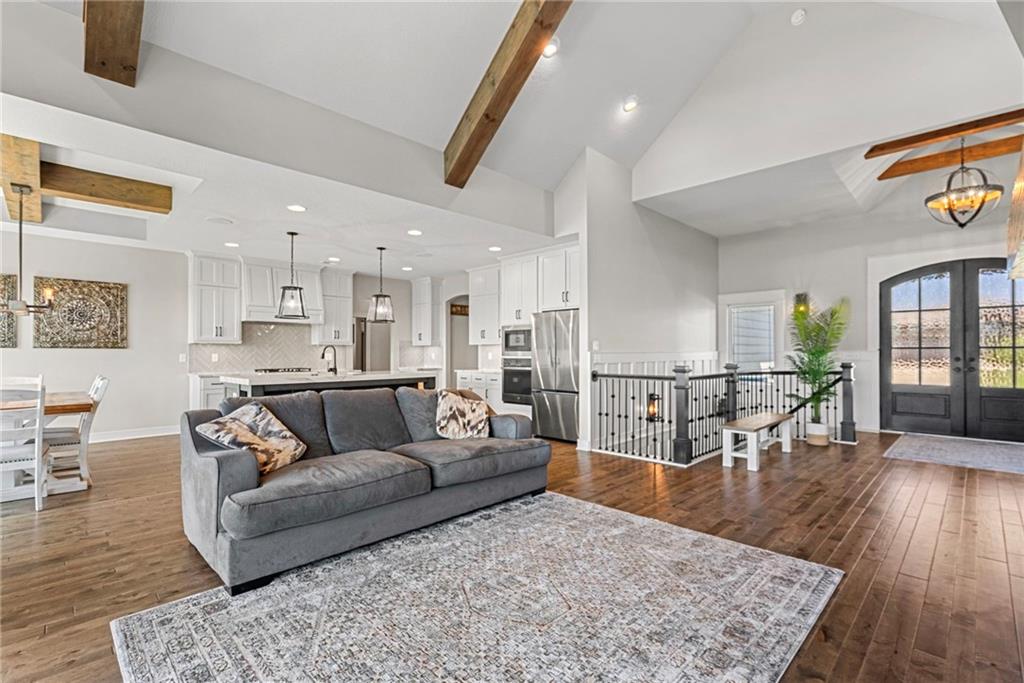 Welcome to 1013 Old Hickory Road, a truly custom-built 4-bedroom, 4-bathroom home located in one of Greenwood’s most sought-after neighborhoods. Unlike a typical spec home, this thoughtfully designed property showcases quality craftsmanship, premium finishes, and a layout built for real-life living and entertaining. From the moment you walk in, you’ll be impressed by the bright, open floor plan, soaring vaulted ceilings, and attention to detail throughout. The spacious kitchen is a showstopper, featuring sleek quartz countertops, custom cabinetry, and stainless steel appliances—all flowing seamlessly into a cozy living room anchored by a fireplace. The main level features generously sized bedrooms, including a stunning primary suite with a walk-in closet and a luxurious ensuite bath. The lower level is a fully finished walkout basement, offering flexible space for a second living area, home theater, game room, with 2 additional spacious bedrooms—plus easy access to the backyard for seamless indoor-outdoor living. Step outside to enjoy a beautifully landscaped yard, a large deck for entertaining, and the privacy you’ve been searching for. With 4 full bathrooms, there's no shortage of space and comfort for family and guests alike. Located in the award-winning Lee’s Summit School District and just minutes from parks, dining, and shopping, this one-of-a-kind home blends custom style with everyday functionality. Don't miss your chance to own this exceptional property—schedule your private showing of 1013 Old Hickory Road today! JFE Construction (Gunnison IV Reverse Plan). Enjoy a built-in Sonos speaker system throughout the interior and exterior, perfect for effortless whole-home audio and outdoor entertaining. The back patio is pre-wired for a hot tub, making it ready for your personal spa setup whenever you're ready to unwind.