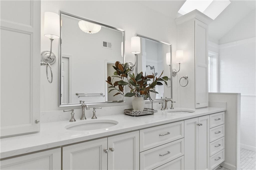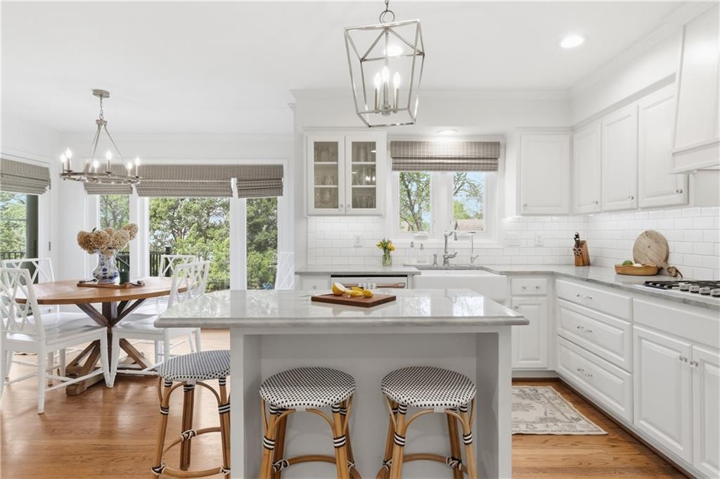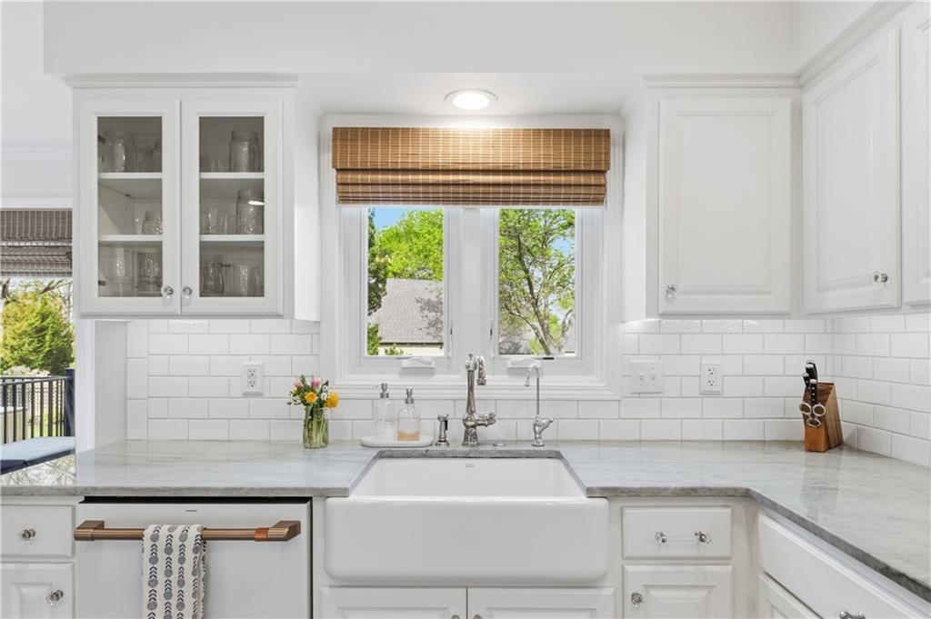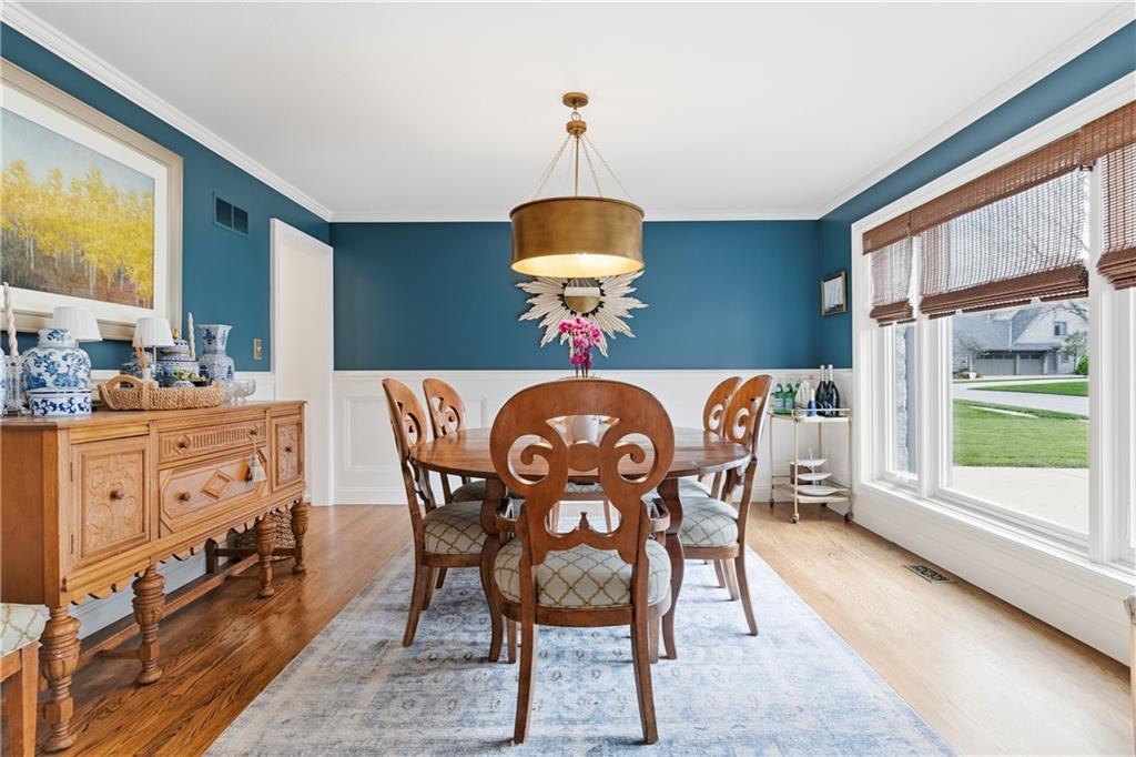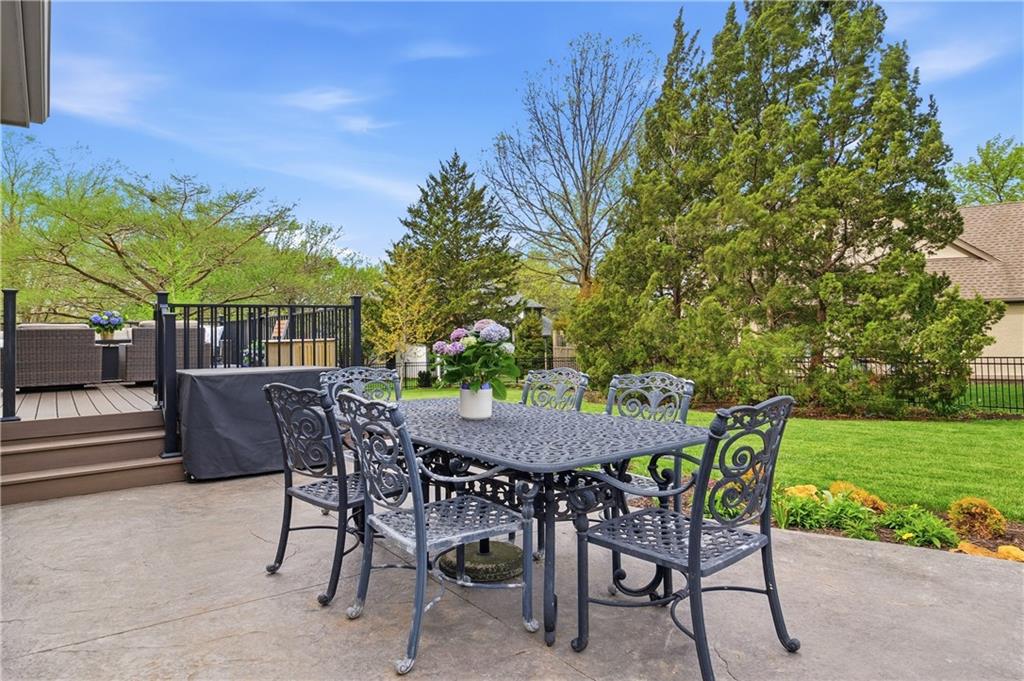If you want to feel like you're living in a movie set, this is the home for you. This 2-story home located in the heart of Leawood in coveted Berkshire, feels like a warm hug from the moment you step inside. The entire home is light, bright, and meticulously updated, boasting a high-end designer aesthetic throughout. The heart of the home, the gourmet kitchen, features quartzite countertops, porcelain tile backsplash & white farmhouse sink. New kitchen cabinet fronts and hardware installed in 2020 & new white GE Cafe appliances with brass handles. The main level shines with continuous hardwoods, a wood staircase with a custom runner, new powder bath, fresh wainscoting in the foyer and custom Nell Hills & rattan window treatments, too. Finished basement includes wet bar, half bath, bonus room & tons of space! Upstairs, the JUST FINISHED primary bath features marble heated floors, quartz countertops & new custom cabinetry. The zero entry walk-in shower is a luxurious retreat. The motorized blackout Roman shades ensure a great night's rest at the push of a button. Two walk-in closets renovated with custom solutions to maximize functionality. Brand new carpet thru out the upstairs. Brand new mudroom off kitchen & garage is a perfect drop zone. Brand new laundry closet upstairs near the bedrooms for convenience. New wrought iron fence around the large yard includes back gate for fast access to the neighborhood amenities. New Trex deck and stamped concrete patio were installed in 2023, along with custom landscaping. You will love the mature hostas, peonies, & hydrangea bushes. Addition off the back of the 2-car garage for a dedicated storage space comes in handy. Down the road from incredible dining, shopping & entertainment at Town Center, Park Place, Prairie Fire & Corbin Park. Just blocks to the Tomahawk Trail, offering a paved trail with amazing wildlife views. Located near some of the city and state's best public and private schools, you can't go wrong!