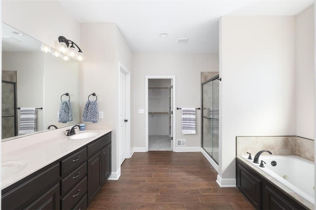 NEW CARPET AND INTERIOR PAINT JUST FINISHED. Gorgeous home in the Basehor/ Linwood school district. Open concept with a large kitchen island, granite countertops and a walk in pantry. Hardwood floors on the main level. 2BRs on the main level and 2BRs in the walkout basement. Covered deck with a large patio. Newer AC and Furnace, Newer roof completes the picture. Backs up to greenspace. HOA dues cover the common areas and the pool also includes a stocked pond and trails.