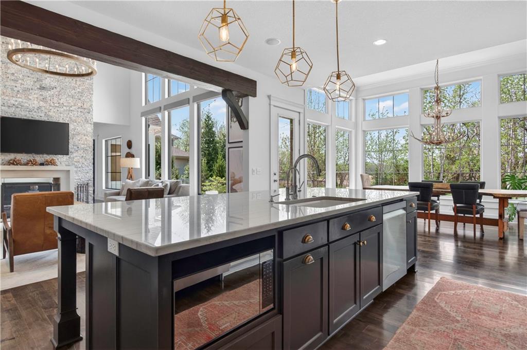 STUNNING POLO FIELDS 2-STORY—A TRUE ENTERTAINER’S DREAM IN BLUE VALLEY! Perfectly positioned in one of the area’s most sought-after communities, this exceptional residence blends refined finishes with a thoughtfully designed layout tailored for both everyday living and upscale entertaining. A striking see-thru fireplace anchors the formal living room and dramatic Great Room, where soaring ceilings and walls of windows flood the space with natural light. The chef’s kitchen is a showpiece—featuring a large center island, quartzite countertops, walk-in pantry and premium stainless steel appliances—all remaining. The adjoining breakfast area and private main floor office both open directly to the patio, creating seamless indoor-outdoor flow ideal for al fresco dining and gatherings. Retreat to the luxurious primary suite offering a spa-inspired bath with dual vanities, whirlpool tub, separate shower and an expansive walk-in closet with convenient access to the bedroom-level laundry. Three spacious secondary bedrooms each feature private en-suites and walk-in closets, delivering comfort and privacy for all. Finished lower level is designed to impress—complete with a media-ready family room with projection screen, an entertainer’s wet bar with oversized quartz topped island (hidden handles for tons of storage) and set up for ice machine and under counter mini-fridge, wine cellar (with cut-out ready for your chiller), fitness area, fifth bedroom and fifth full bath with walk-in shower and dry sauna. Step outside to your own private escape—featuring a stunning stone patio and firepit designed for evenings under the stars. Refined. Elevated. Unforgettable. This is luxury living—just minutes from everything--parks, premier shopping, dining and quick highway access. WELCOME TO YOUR DREAM HOME!
