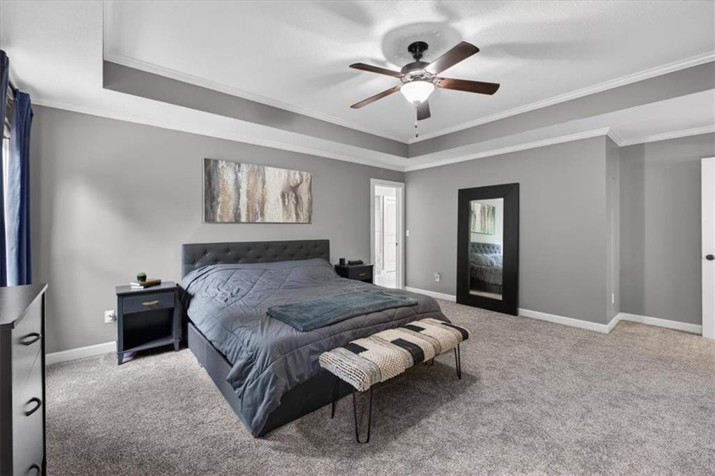 Welcome to 19104 W 100th Ter in the highly sought after Falcon Valley community, where thoughtful upgrades and quality craftsmanship shine throughout. From the inviting covered front porch to the extensive landscaping, retaining wall, wrought iron fence, and exterior downlighting, the curb appeal is unmatched on this large corner lot. Inside, abundant natural light highlights the open and engaging floor plan, featuring extensive trim, crown molding, wainscoting, and a beautifully trimmed fireplace in the family room that flows seamlessly into the kitchen with a large island, modern backsplash, gas stove, and walk-in pantry. The main-level primary suite offers a spacious retreat with a tray ceiling, spa-like bath with soaking tub and walk-in shower, and a large closet with direct access to the laundry room. You’ll love the versatile front den, which could also serve as a formal dining space or playroom, while the breakfast area and island seating provide ample room to gather. Upstairs includes three oversized bedrooms, all with walk-in closets. One bedroom features a private bath, while the others share a Jack and Jill bathroom. The finished basement expands your living space with built-ins, a wet bar with wine fridge, full bath, large fifth bedroom with egress window, PLUS an 85” TV and surround sound for a truly immersive experience AND a new pool/game table that will convey with the property. Step outside to a covered patio with ceiling fan, outdoor kitchen, and professionally landscaped yard designed for entertaining. Complete with a heated three-car garage featuring coated floors and an organized storage system, plus NEW HVAC system and newer carpet throughout, this property offers the perfect blend of style, space, and functionality in a highly desirable Lenexa location.