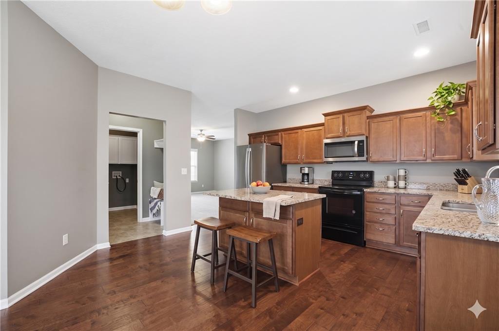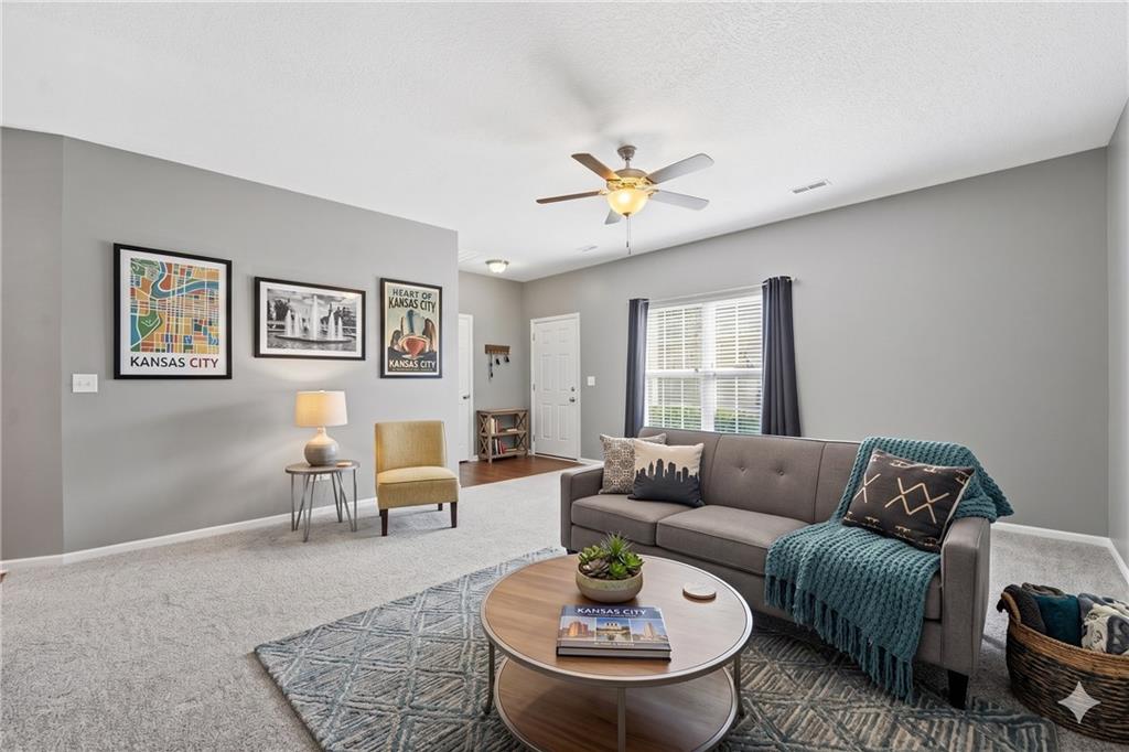 Enjoy easy living in this well-maintained 3 bedroom, 2 bathroom home offering true one-level living in a convenient location. The spacious layout features a large living area with vaulted ceilings and abundant natural light, creating an open and inviting atmosphere. The kitchen is equipped with warm wood cabinetry, ample counter space, a center island, and flows seamlessly into the dining area with access to the patio, perfect for everyday living and entertaining. Recent updates include new carpet and interior paint in 2022, along with a brand new roof in 2025, providing peace of mind for years to come. The primary suite offers a comfortable retreat with a tray ceiling and generous space, while additional bedrooms are well-sized. A dedicated laundry room and attached two-car garage add to the home’s functionality. With yard/snow removal provided, this home offers a low-maintenance lifestyle in a desirable setting.