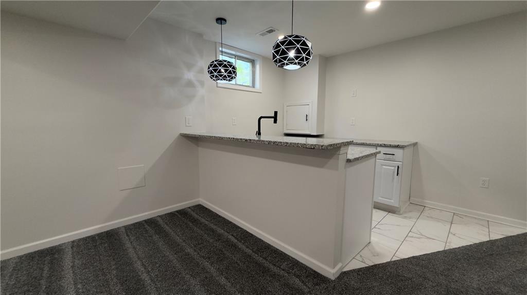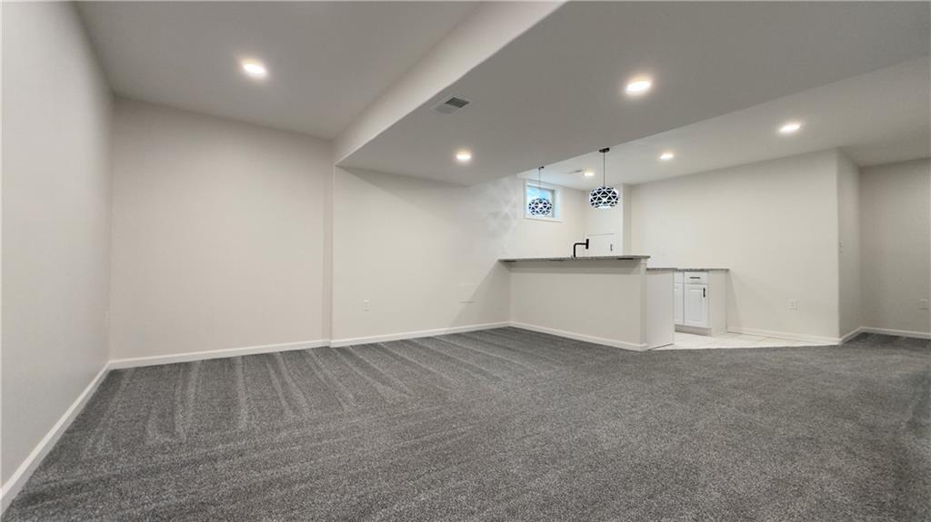 Beautifully updated home in Olathe, KS featuring modern finishes and a unique design throughout. The exterior stands out with black accents, great curb appeal, a spacious driveway, and a two-car garage, all situated on a good lot. Inside, the home has been well maintained and updated over the years with new ceramic flooring, carpet, and fresh paint. The kitchen offers a stylish layout with updated fixtures and a clean, modern feel. The primary suite is spacious and includes a private bathroom with a double vanity, whirlpool tub, separate shower, and a wet bar. The main level also features two additional bedrooms, a full bathroom, and a convenient half bath off the kitchen and living area. The finished basement adds extra living space with a custom bar and wine cooler, an additional bedroom, full bathroom, and ample storage. The backyard offers plenty of room to enjoy the outdoors. Overall, a solid home with thoughtful updates and plenty of space.