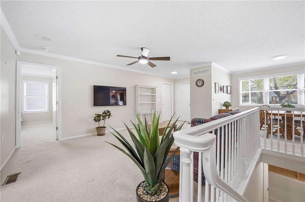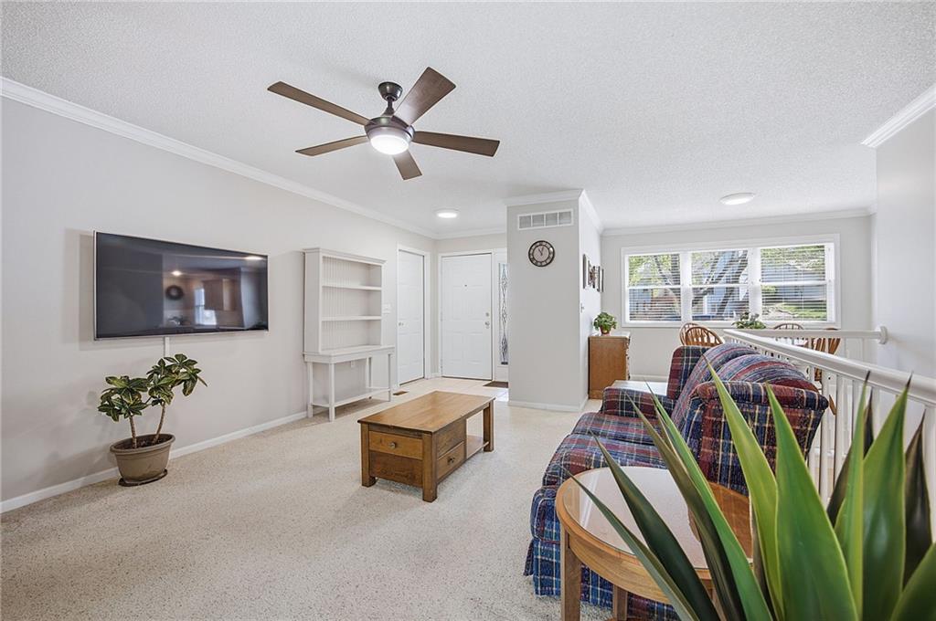 Welcome home to this beautifully maintained 2-bedroom, 2-bath ranch townhome in the highly sought-after Sterling Estates, a charming 50+ maintenance-provided community in Olathe. Opportunities in this tucked-away neighborhood are rare, and this one is truly special! Step inside to a light-filled open floor plan featuring a bright kitchen with a breakfast bar, and seamless flow into the dining and living spaces—perfect for easy everyday living and entertaining. The spacious primary suite offers double closets and a private en-suite bath, while the secondary bedroom is conveniently located near a full guest bath. Enjoy peaceful mornings or relaxing evenings on the private covered deck overlooking beautiful trees and greenspace, offering both privacy and serene wooded views. The finished basement provides incredible extra living space, with two large rooms, abundant closet storage, built-in bookshelves, and a half bath—ideal for a family room, office, hobby space, or guest area. This friendly, vibrant community offers true low-maintenance living with the HOA covering exterior maintenance, roof, siding, lawn care, and snow removal. Residents also enjoy wonderful neighborhood events including monthly luncheons, social gatherings, and annual picnics. Conveniently located close to shopping, dining, and highway access, this hidden gem offers easy living in Johnson County at an affordable price. Homes in Sterling Estates rarely come available—don’t miss your chance!