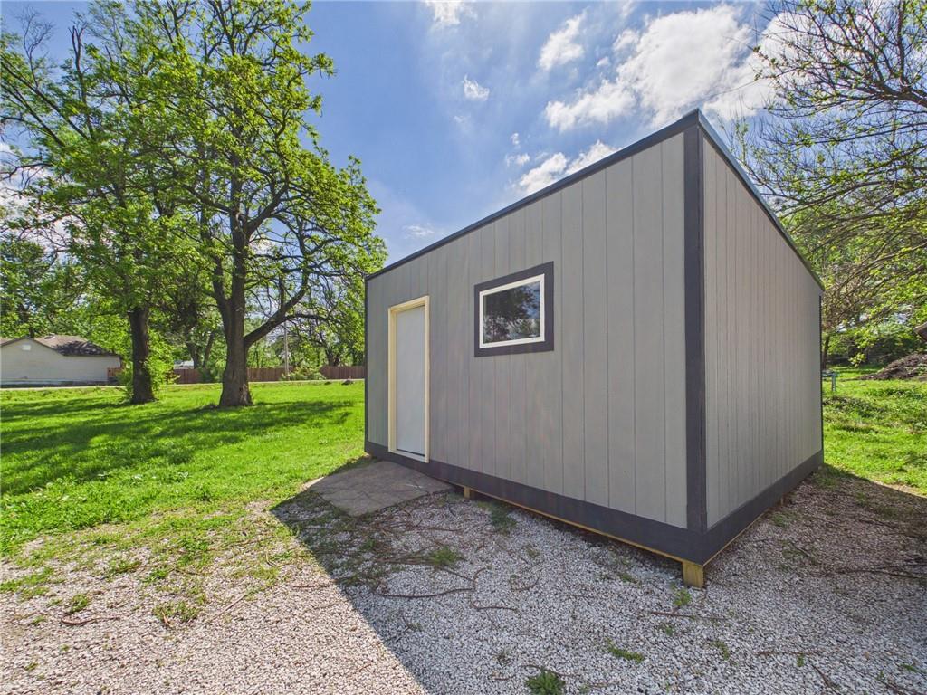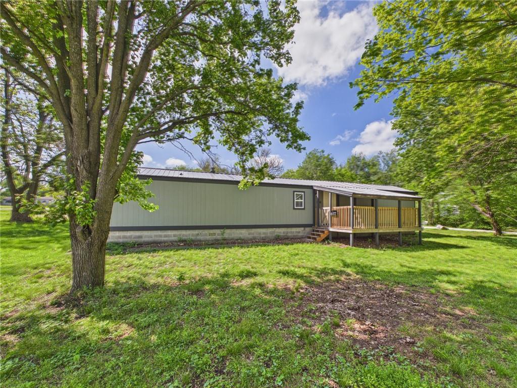 This tastefully updated 3-bedroom, 2-bath ranch-style home offers 924 square feet of cozy living. Remodeled less than three years ago, this home features a host of upgrades including a new metal roof, new windows, new fixtures, and stylishly painted kitchen cabinets that bring a fresh, contemporary feel to the space. Step inside to an open living room/kitchen layout. Two bedrooms are located at one end of the home, while a third is located at the opposite end creating privacy. Having two full bathrooms adds convenience and functionality. Outside, you’ll find a spacious 15x16 shed—ideal for hobbies, storage, or a small workspace. The covered porch provides a great spot to relax and enjoy the outdoors, while the corner lot offers additional yard space & privacy. The title has been eliminated with the county and is permanently affixed to the land making it real estate. Whether you’re a first-time buyer, downsizing, or looking for a move-in-ready investment, this home checks all the boxes.