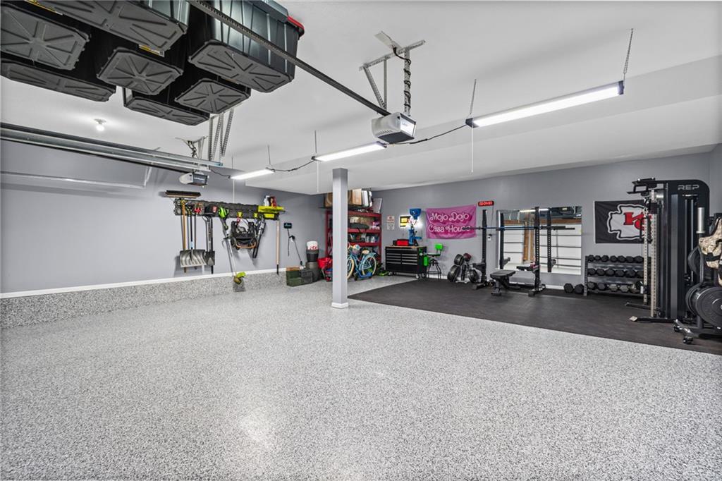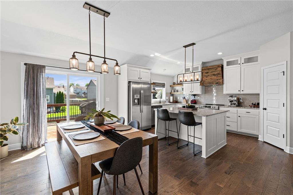 This beautifully updated home is truly move-in ready, featuring fresh interior paint, new flooring and carpet throughout, a newly epoxied garage floor, upgraded landscaping, lawn irrigation system, and a wrought iron fence—plus so much more! From the moment you arrive, you’ll be charmed by the inviting front sitting porch, cedar shutters, and striking architectural beams. Step inside to discover vaulted ceilings, rich hardwood floors, and a warm, welcoming living room complete with a gas fireplace, decorative shiplap, and a wood mantle. The staircase showcases sculptured carpet and elegant white spindles, leading you into a breathtaking kitchen and dining area. The kitchen is a true showstopper with custom white cabinetry (including glass-front accents), a custom stained hood, granite countertops, stainless steel appliances, wood shelving, a spacious pantry, and a brand-new stove highlighting the tiled backsplash. The dining area is generously sized—perfect for hosting large gatherings—and flows seamlessly with the hardwood flooring that extends throughout the kitchen, dining space, and hallway. Stylish light fixtures add a modern touch throughout the home. The spacious primary bedroom features decorative beams and leads into a luxurious ensuite bath complete with double sinks, cultured marble countertops, tiled backsplash, custom shelving, a relaxing soaking tub, walk-in closet, and tiled shower—all enhanced with charming shiplap details. Two additional bedrooms and a conveniently located laundry room complete the main level. Downstairs, enjoy a huge recreation room along with an additional half bath—ideal for entertaining or relaxing. The oversized, extra-deep garage offers exceptional storage space. Located in a fantastic neighborhood, this home truly has it all. Don’t miss your chance—schedule your showing today!