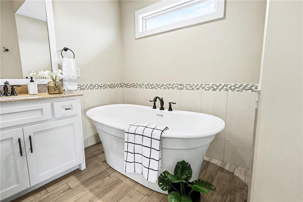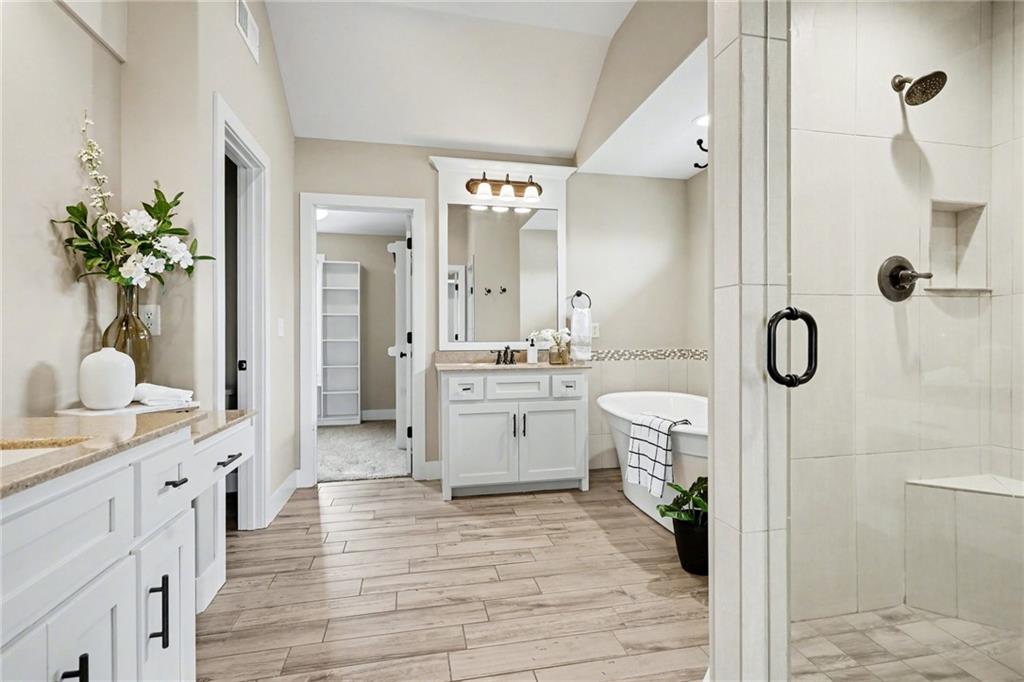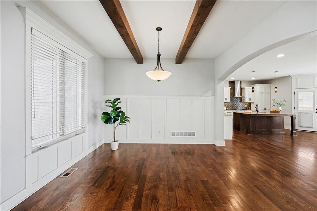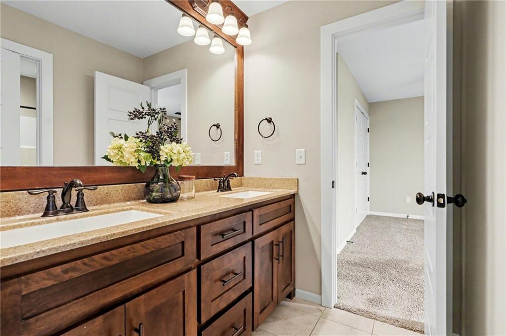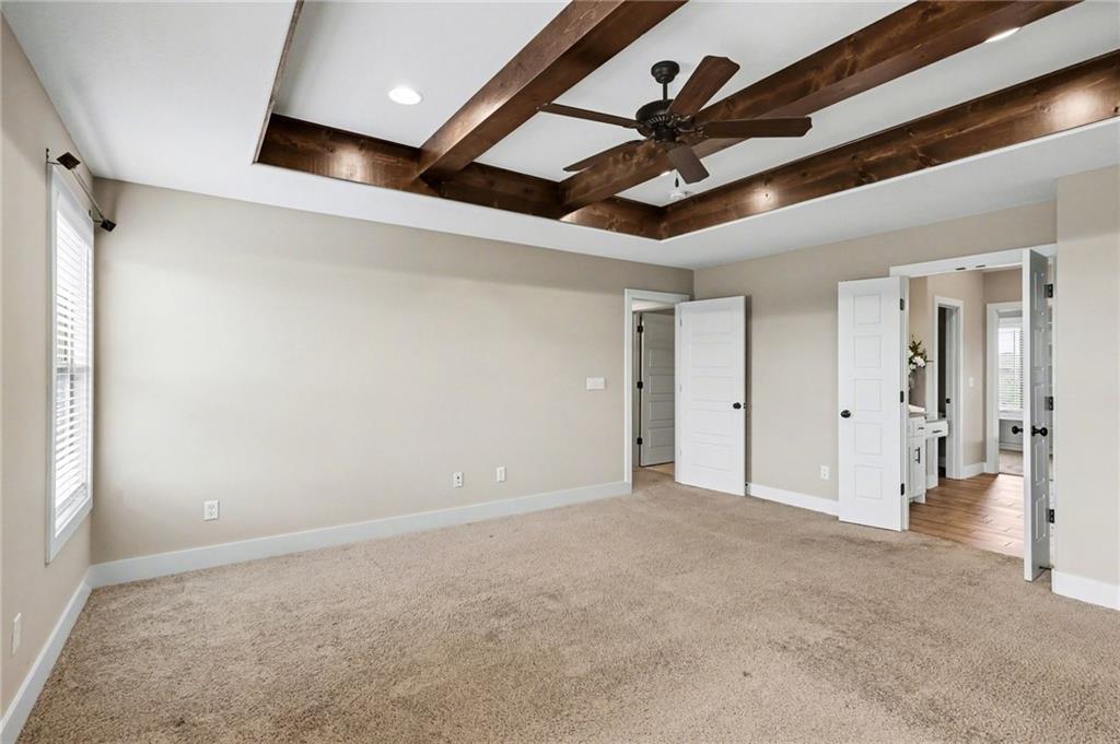 Welcome to this beautifully designed home in the highly sought-after Foxberry Estates, where thoughtful upgrades and spacious living come together in one exceptional property. Beautiful great room featuring expansive windows, hardwood floors, and a cozy fireplace. The gourmet kitchen is designed for both function and style with a center island, tiled backsplash, granite countertops, and a spacious walk-in pantry. Formal dining room showcases picture box molding and stunning walnut-stained ceiling beams. Upstairs, the primary suite offers a true retreat with eye-catching wood beams, a large walk-in closet, and a spa-like bath complete with dual vanities, a free-standing soaking tub, and a walk-in shower with dual showerheads. Bedrooms 2–4 are generously sized with convenient immediate access to bathrooms. The finished lower level provides additional living space with a rec room featuring luxury vinyl plank flooring, a 5th bedroom, and a 4th full bath—perfect for guests or multi-generational living. Enjoy the outdoors in the fenced backyard with an extended patio and firepit, plus the convenience of an in-ground sprinkler system. Located in highly desirable Foxberry Estates, residents enjoy resort-style amenities including a zero-entry pool, clubhouse for events, scenic walking trails, three stocked ponds, basketball hoop, and playgrounds.