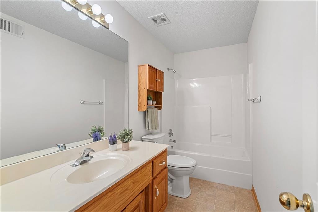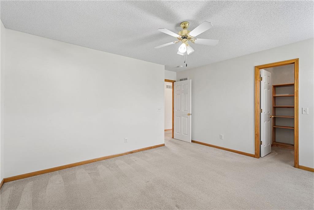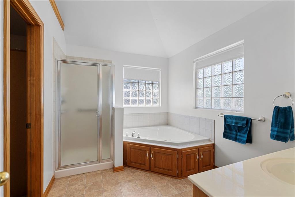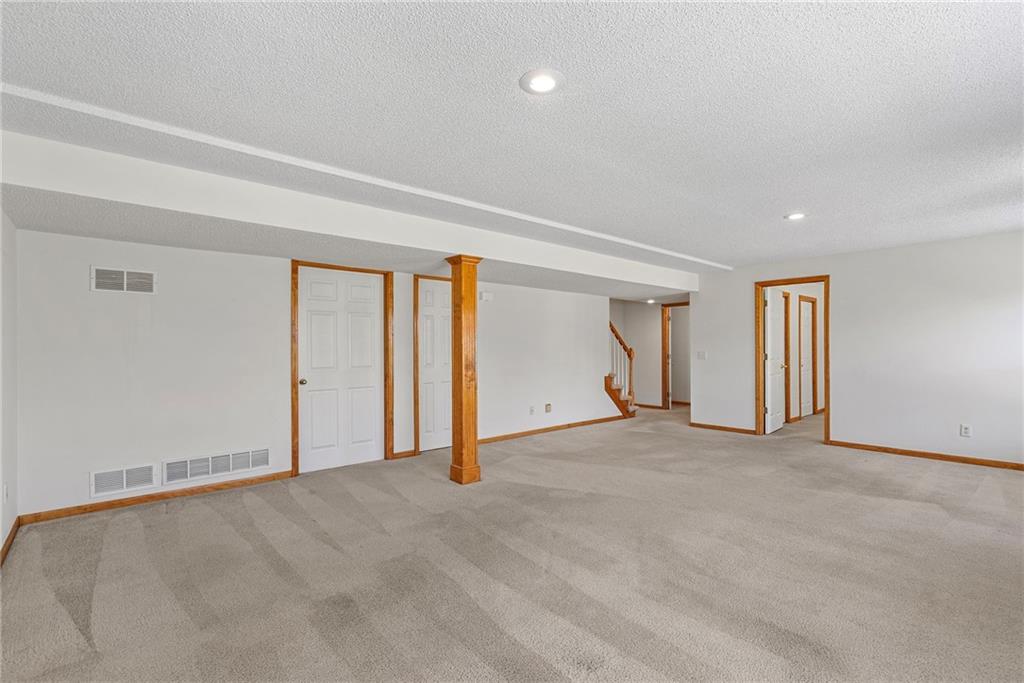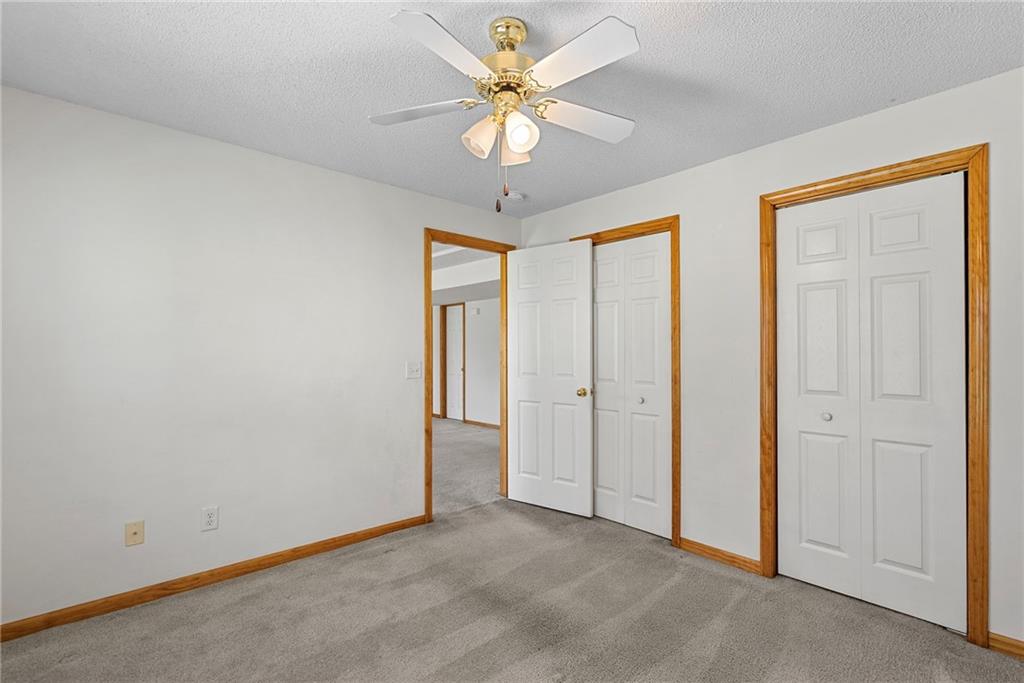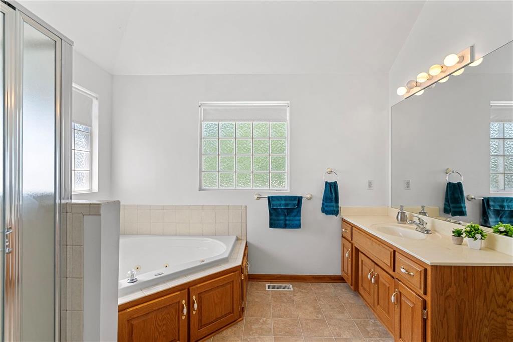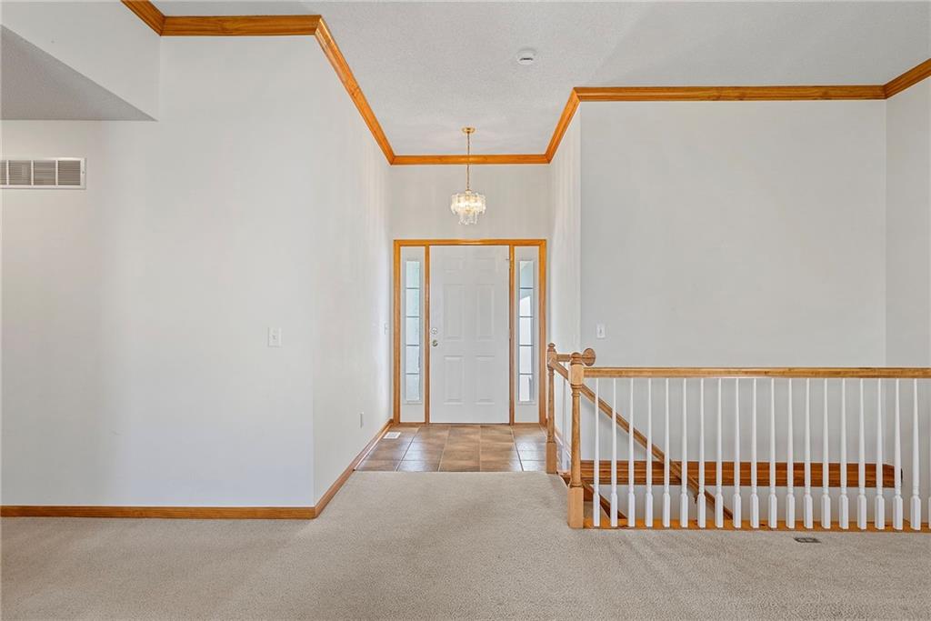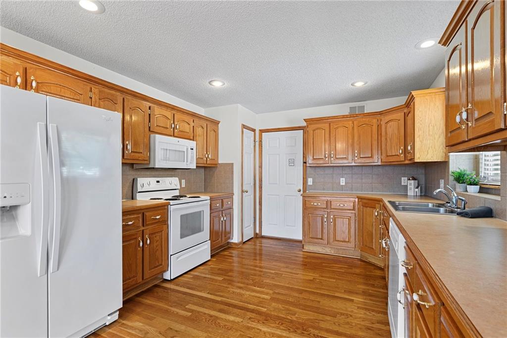 Rare opportunity in the desirable Eastridge Meadows community! This well-maintained ranch/reverse 1.5 story home on a walkout lot offers 3 generously sized bedrooms, 3 baths, and nearly 2,200 finished square feet. The thoughtfully designed layout provides comfortable main-level living with spacious rooms, wide hallways, and excellent storage. The great room features 10-foot ceilings with crown moulding, a cozy gas fireplace, and an open feel ideal for everyday living and entertaining. The eat-in kitchen offers hardwood floors, abundant cabinetry, and all appliances stay — just bring your dishes! The bright dining area features tray ceilings and easy access to the deck for seamless indoor-outdoor flow. The primary suite impresses with a vaulted ceiling and semi-circle window, while the spacious primary bath features a jetted tub and large walk-in closet. The second main-level bedroom also offers a walk-in closet and flexible use as a guest room or home office. Main-level laundry is conveniently located just steps from both main-level bedrooms. The finished walkout lower level adds a large third bedroom and adjacent bath, along with a spacious rec room — ideal for guests, extended family, or multi-generational living. Additional highlights in the lower level include a cedar closet and ample storage with built-in shelving. Walk out to the patio, offering another great outdoor space along with the deck above. One unique lower-level feature is the utility garage/workshop space with its own garage door entrance, perfect for hobbies, projects, lawn equipment, or extra storage. Major improvements include a NEWER roof and gutters (2024) and HVAC replaced in 2015. Carpets have been freshly cleaned, and this one-owner home has been very well cared for, offering an excellent opportunity to personalize while enjoying a solid home in a convenient Blue Springs location. This is one you definitely won't want to miss!