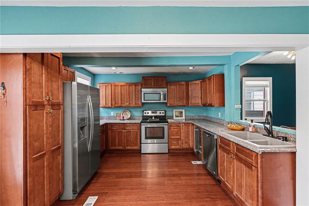 Historic character and modern convenience come together in the heart of Hyde Park. This well cared for home reflects true pride of ownership throughout. The inviting covered front porch sets the tone, perfect for morning coffee or welcoming guests. Enjoy the benefit of off street parking with a newly poured two car slab, ready for a future garage. Inside, the kitchen is designed for both everyday living and entertaining, featuring two pantries, expansive granite countertops, stainless steel appliances, and a built in wine fridge. Generous living spaces flow seamlessly indoors and out, offering plenty of room to gather or unwind at the end of the day. The primary suite is a true retreat, complete with a cozy reading nook, private deck access, and a beautifully remodeled en suite bath with heated tile floors and a spacious double shower. Two walk in closets offer not only exceptional storage but also the luxury of personalized space and organization. A second floor laundry room adds everyday convenience and is a standout feature rarely found in homes of this era. A main level bedroom offers flexibility, ideal for a home office, guest suite for those who prefer to avoid stairs, or a playroom. Structural improvements have been completed in consultation with an engineer, supporting the home’s long term integrity. Additional updates include added insulation for comfort and efficiency and newer vinyl windows. All just a few blocks from the new Main Street streetcar stop and the vibrant energy of Kansas City living. Do not miss your chance to experience this stunning property. Schedule your showing before the sun sets.