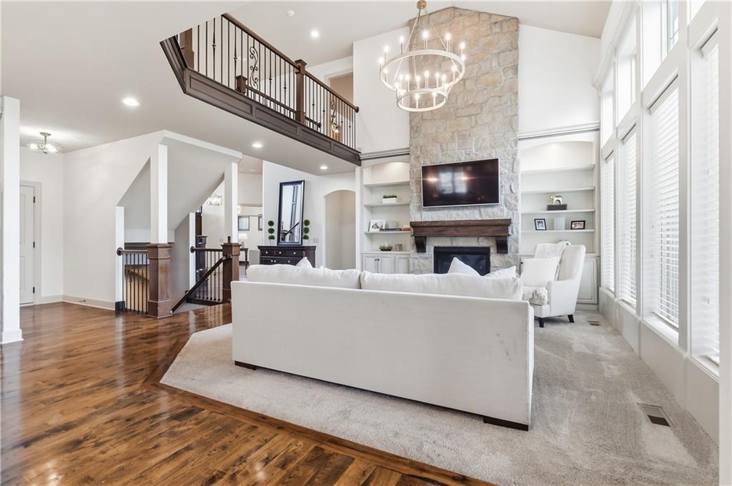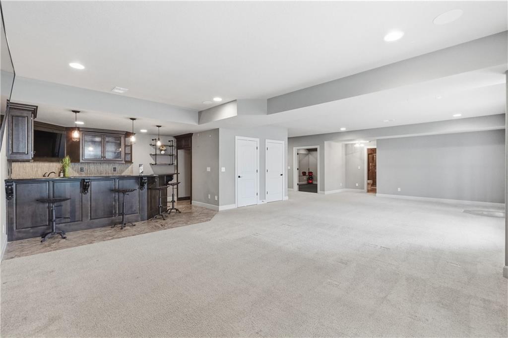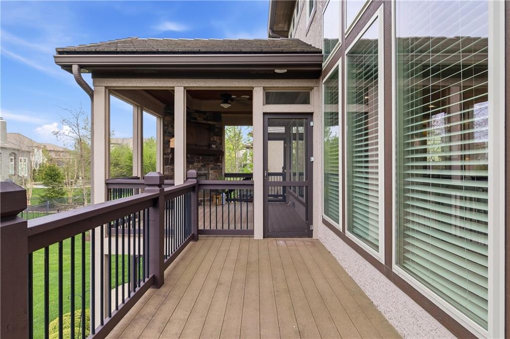 Welcome to this stunning custom-built home in the highly sought-after Mills Farm community, offering nearly 5,000 square feet of thoughtfully designed, freshly painted living space. This impressive 1.5-story home features 5 spacious bedrooms and 6 full bathrooms, blending timeless elegance with modern comfort. Inside, you’ll find an open and inviting floor plan with a seamless flow between the formal dining area, gourmet kitchen with double ovens, and expansive living room—perfect for both everyday living and entertaining. The kitchen is the heart of the home and a true centerpiece, complete with large island, abundant cabinetry, and a functional layout designed for gatherings. The main-level primary suite offers a private retreat with a spa-like bath and generous walk-in closet. Additional main floor highlights include a dedicated office, enclosed porch with trex decking, optional screens, outdoor fireplace, and convenient access to outdoor living. Upstairs, spacious secondary bedrooms provide comfort and privacy, complete with rec room while the finished walkout basement is an entertainer’s dream—featuring a an exercise space, and additional living area with large wet bar ideal for hosting or relaxing. Located in the award-winning Blue Valley School District, this community is luxury living at its finest feturing a club House with Exercise Room, Party Room, Play Area, Swimming Pool & tennis Courts. Don’t miss the opportunity to make it yours!