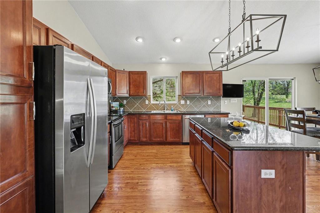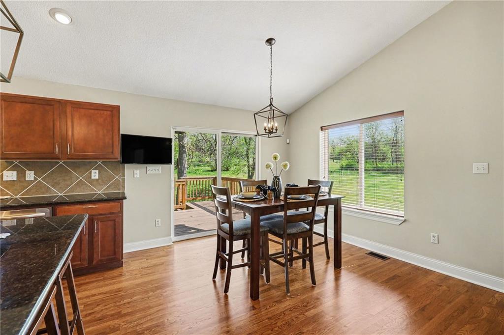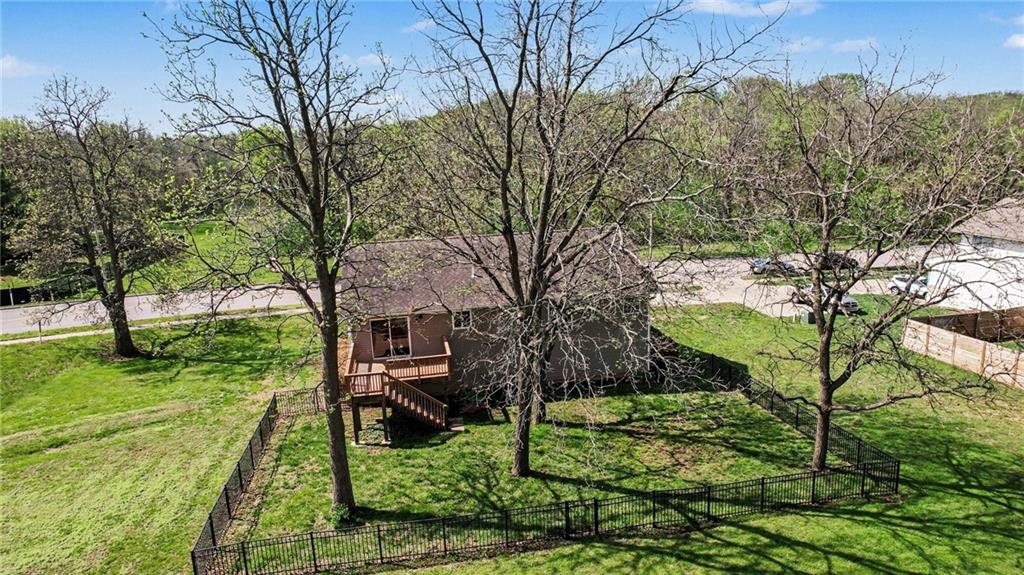 This appealing split-level home sits on an incredible 35,895.91 sq. ft. homesite — approximately .82 acre — right in the heart of Lenexa. Inside, you’ll love the light, open feel with vaulted ceilings, a great room fireplace as the focal point, and a spacious island kitchen with granite countertops and freshly refinished hardwood floors. Step out from the dining area onto the deck and enjoy private views of your expansive homesite. Built in 2005, this home offers an easy-maintenance exterior with vinyl siding and stone trim, plus a level, extra-deep driveway the width of the home, ideal for larger vehicles, sports gear, lawn equipment, and extra parking. With no HOA dues, buyers will appreciate added flexibility for outdoor living, gardens, storage, or possible future outbuilding options, subject to city requirements. The extra-long driveway off 83rd Street even includes an additional parking area. Nature lovers will appreciate the wildlife, the room to roam, and the endless possibilities for creating a private retreat right at home. Another standout feature is the nearby access to the paved Little Mill Creek Trail, leading to dog-friendly Heritage Park, north toward Mill Creek Elementary and Mill Creek Park, and on to Sar-Ko-Par Park and the Aquatic Center for even more outdoor fun.
