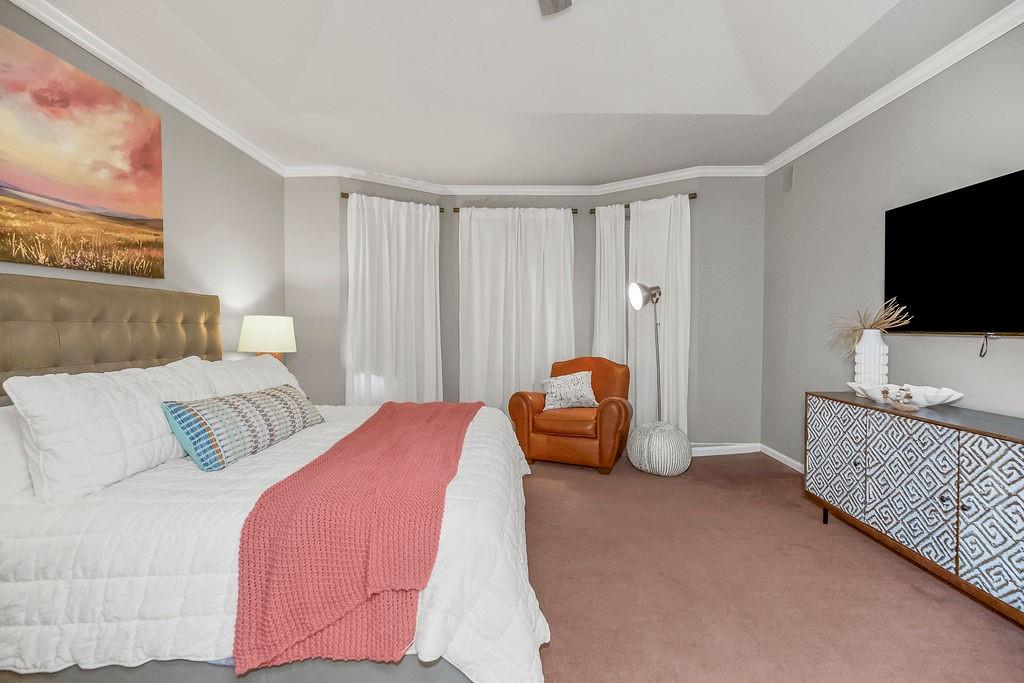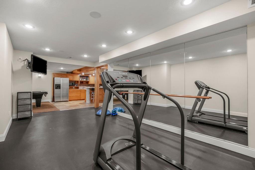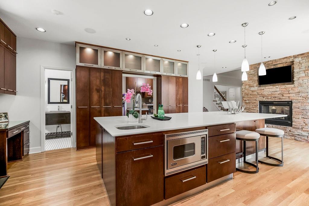 Welcome to this stunning and spacious 1.5-story home designed for both comfort and entertaining! The custom gourmet kitchen is a chef’s delight, boasting top-of-the-line Viking appliances, a gas range, and a generous island perfect for meal prep and casual gatherings. Step outside to your private retreat featuring an outdoor kitchen and a cozy fire pit—ideal for relaxing or entertaining year-round. Inside, the main level impresses with a formal dining room, a bright great room with expansive windows and a see-through fireplace, a private office, and a luxurious primary suite. Upstairs, you’ll find three spacious bedrooms and a versatile loft area—perfect for a playroom, reading nook, or extra workspace. The finished walkout lower level offers even more room to enjoy, including a family room, wet bar, rec area, and an exercise room. Nestled on a quiet cul-de-sac with a fenced yard and easy lake access, this home combines privacy, elegance, and convenience. A backyard gate leads directly to the sidewalk and dock, just steps away. This home truly has it all—style, space, and a perfect setting for everyday living or entertaining!