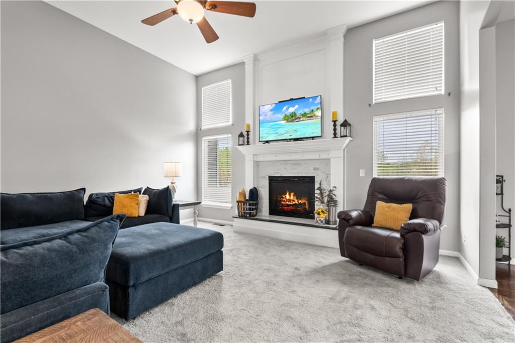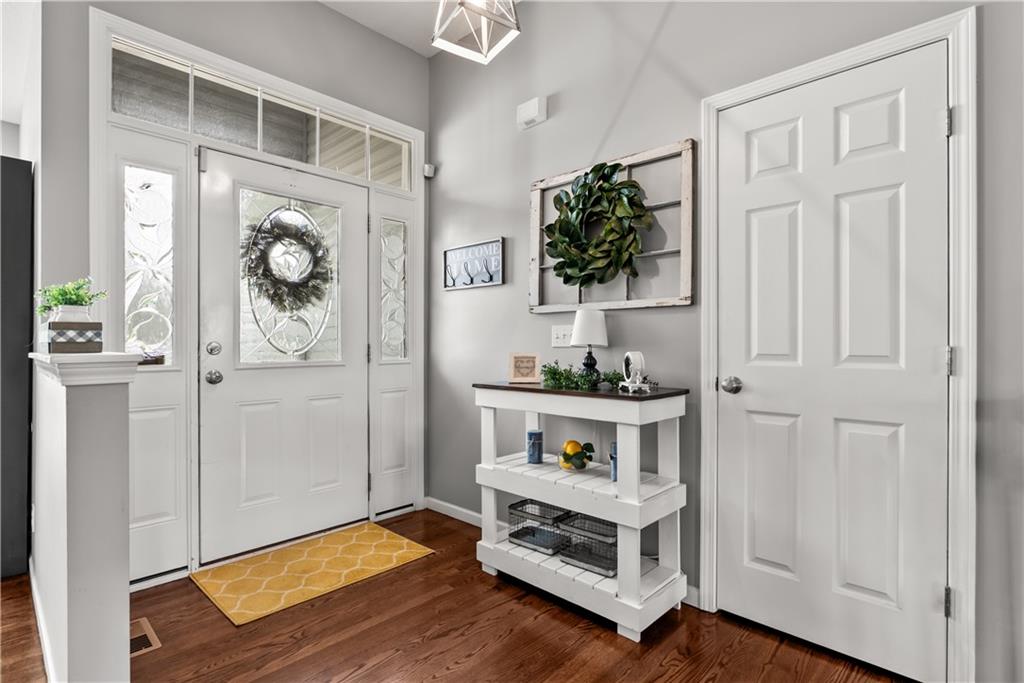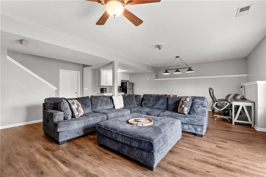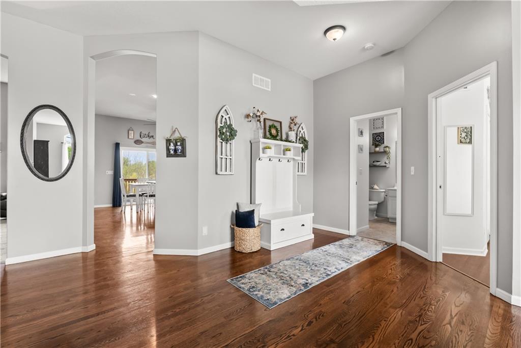 Beautifully updated Reversed 1.5 story offering a spacious and functional layout! The main level features 2 bedrooms, including the private primary suite, thoughtfully positioned on opposite sides of the home for added privacy. The kitchen is a standout with an island and painted cabinets, opening to a warm and inviting greatroom with fireplace. A formal dining room provides additional space for entertaining. The covered deck overlooks the large private backyard backing to trees. The finished lower level expands your living space with two additional bedrooms, a full bath and large family room. Ample storage throughout, including excavated space under the garage. Located in the highly desirable Liberty School District-this home has it all!