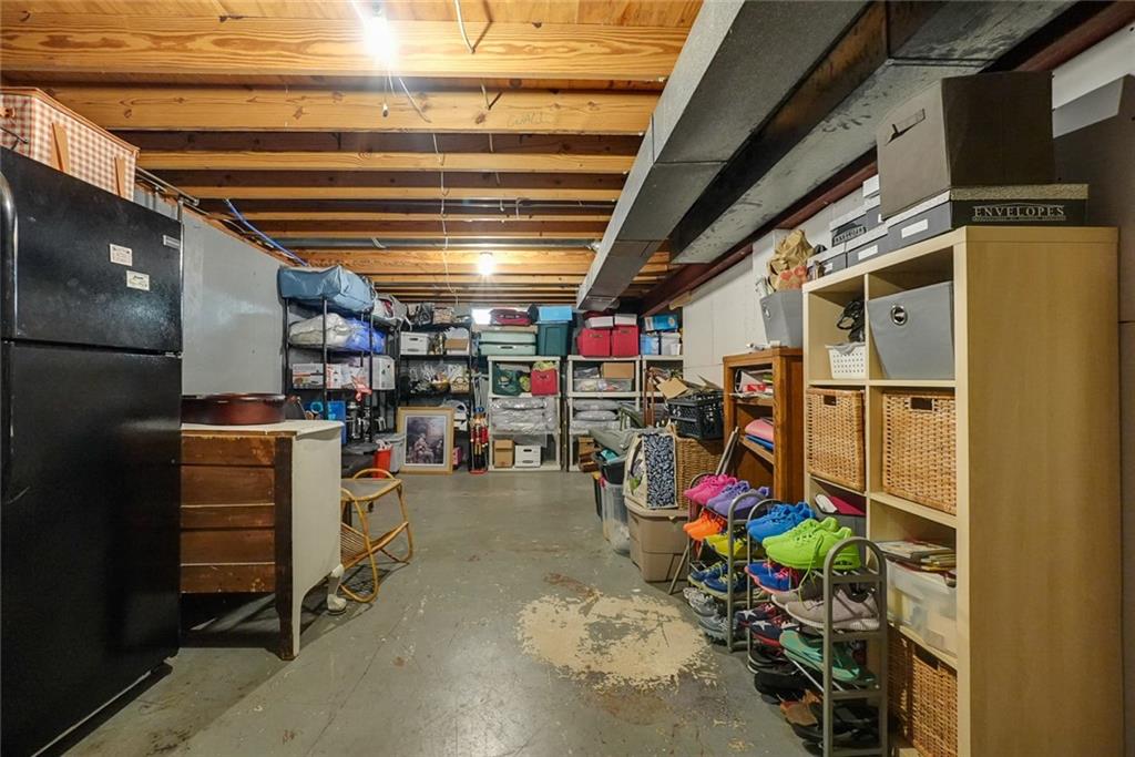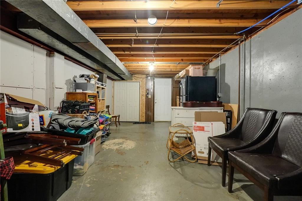 Unfinished basement featuring exposed wood joists and concrete flooring