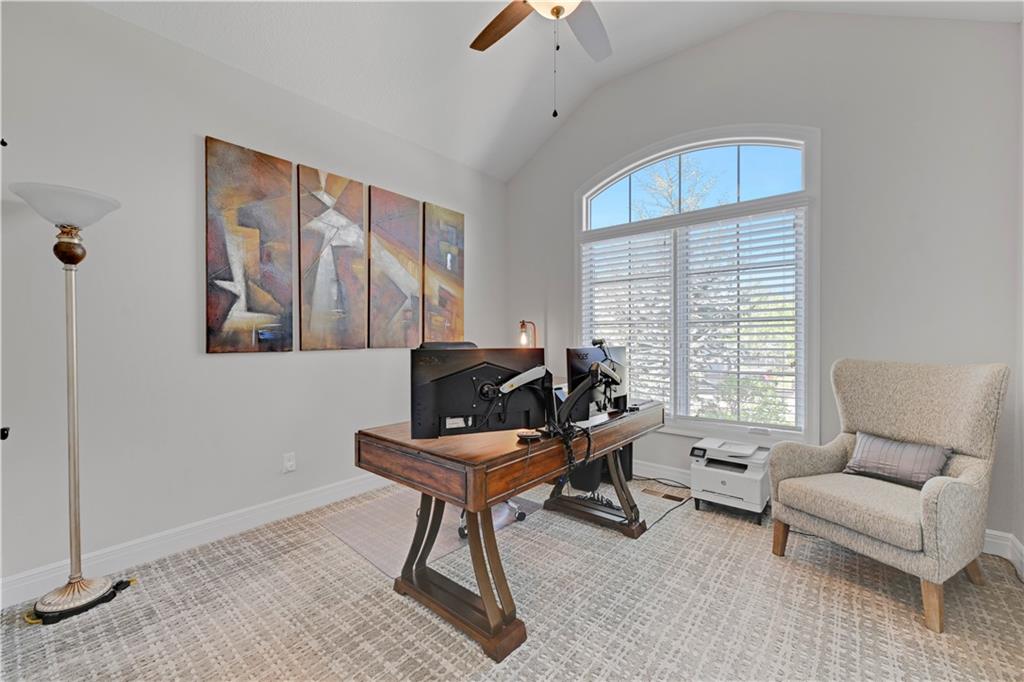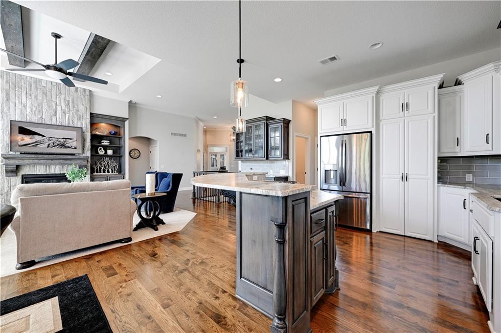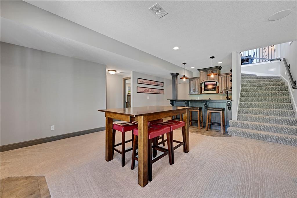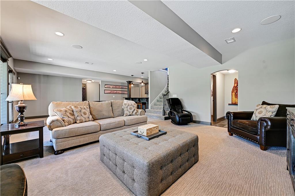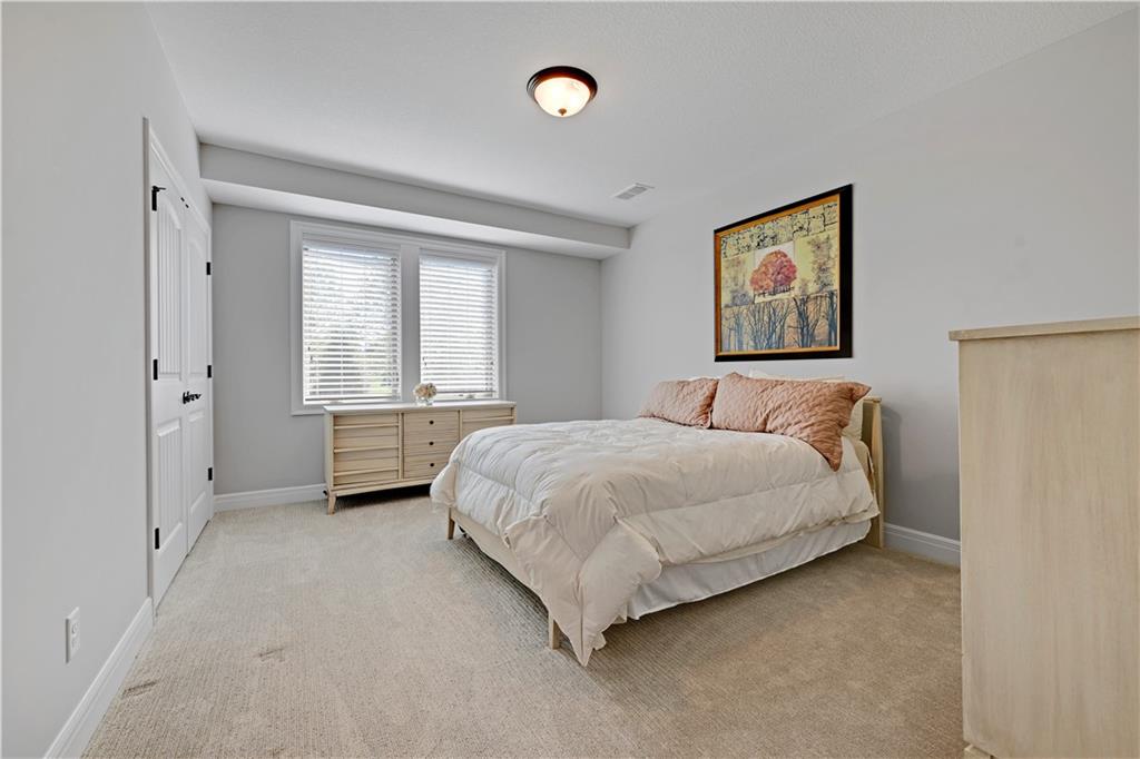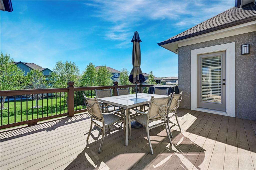 Experience refined living in this impeccably maintained reverse 1.5-story residence, showcasing exceptional curb appeal, lush landscaping, and a striking presence with a tall front door, covered porch, and elegant stone columns. Ideally positioned with a west-facing front for quicker winter snow melt and an east-facing backyard that offers cool, shaded evenings. The thoughtfully designed main level features a luxurious primary suite and a versatile second bedroom or office with access to a full bath. Entertain in style in the formal dining room or enjoy casual meals in the bright breakfast area. The gourmet island kitchen is a chef’s dream, complete with a hidden walk-in pantry that blends seamlessly into the space. Step outside to enjoy a screened porch and three separate decks, creating multiple outdoor living areas perfect for relaxing or hosting. The private backyard retreat includes a dedicated fire pit area, offering both comfort and seclusion. A dramatic curved staircase leads to the finished lower level, featuring an expansive rec/family room with a bar and a state-of-the-art in-ceiling 5-speaker surround sound system, delivering an exceptional movie and entertainment experience. The lower level also includes two additional bedrooms, 1 full and 1 half bath. A bonus room under the suspended garage provides flexible space for a gym, hobby room, or extra storage. Additional highlights include a suspended garage, full epoxy garage floor with built-in cabinets (included), and a convenient laundry/mud room off the garage entrance. Residents enjoy premier community amenities, including a clubhouse with kitchen and fireplace, swimming pool, play area, exercise room, fire pit, BBQ and picnic areas, along with scenic lakes offering fishing for residents.