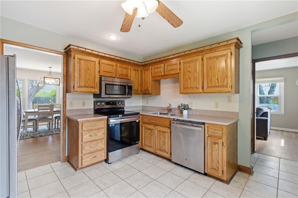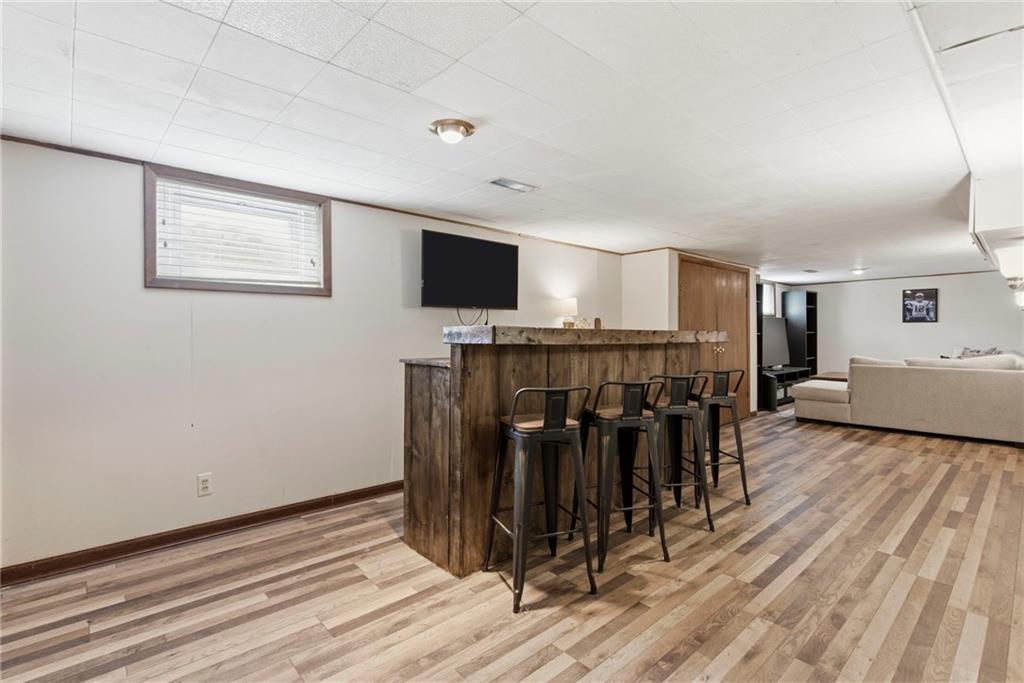 Tucked away on a quiet culdesac just minutes from downtown North Kansas City, this second owner home has been thoughtfully maintained and beautifully updated. From the moment you walk in, the home feels bright and inviting. The dining area is filled with natural light thanks to oversized windows that perfectly showcase the large backyard. The main level primary suite offers a comfortable retreat with its own ensuite bathroom and walk in closet. Additional bedrooms are generously sized, giving you flexibility for guests or a work from home space. Recent updates include luxury vinyl plank flooring and fresh interior paint throughout. Downstairs, the finished lower level adds even more living space with updated flooring and a custom built bar that is ready for game days, movie nights, or hosting friends. Out back, the fully fenced yard and large partially covered deck create an ideal setup for entertaining or simply unwinding. In the warmer months, the front garden comes to life with vibrant blooms, adding to the home’s charm and curb appeal. In the winter, the fireplace offers the perfect cozy escape. This is one of those homes that just feels good the second you walk in, with the updates already done and the location hard to beat!