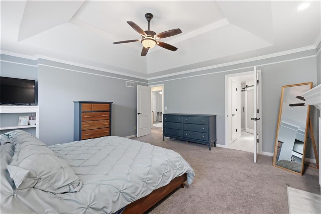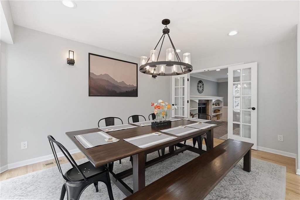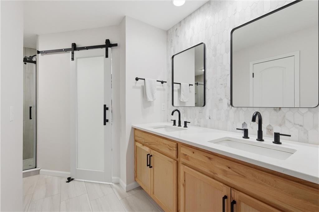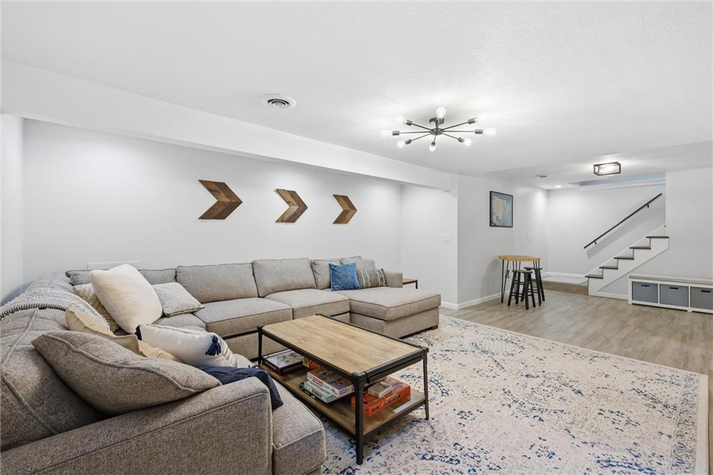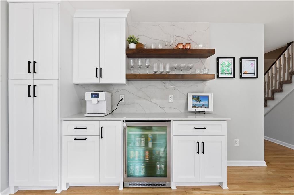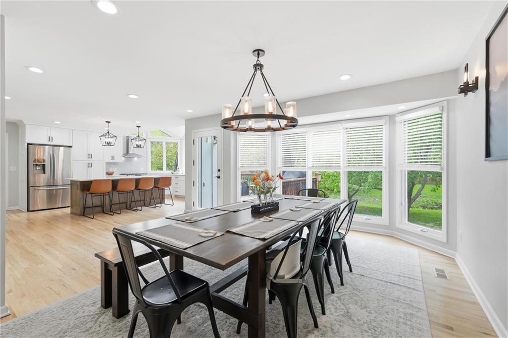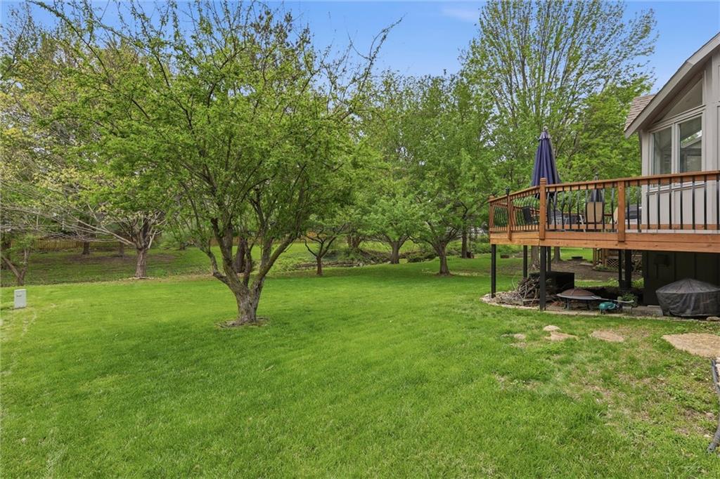 Welcome to Brookwood in Lenexa—where location meets lifestyle! Ideally situated with quick highway access, abundant nearby shopping & just minutes from the Lenexa City Center, this beautifully renovated home truly checks all the boxes. Lovingly updated by the current owners, nearly every surface has been thoughtfully refreshed. The show-stopping kitchen is sure to impress, featuring stainless steel appliances, a gas range with hood, a massive center island with quartz countertops & a stunning mix of stained wood cabinetry on the island paired with crisp white shaker cabinets along the perimeter. A charming bay window, bar area with a beverage center & floating shelves, and updated lighting complete the space. The adjacent dining area offers plenty of room to gather and is highlighted by a chandelier. Refinished hardwood floors flow throughout most of the main level, where you’ll also find a spacious carpeted living room with a fireplace and built-in shelving. The updated powder bath features a new vanity, mirror, lighting, and a shiplap accent wall. Step outside to the large deck that is set up with gas lines for a grill and firepit—perfect for entertaining & enjoy the privacy this lot provides. There is a greenbelt behind the house! Upstairs, you’ll find three generously sized secondary bedrooms, all with ceiling fans, including one with an incredible walk-in closet. The primary suite features a tray ceiling, a fireplace, dual closets, and a beautifully remodeled bathroom with a spa-like custom tiled shower, double vanity, updated lighting, mirrors & a full tile backsplash. The secondary full bathroom has also been updated with a stylish vanity, hexagon tile flooring, and newer fixtures. Convenient second-floor laundry makes everyday living easy. The finished lower level adds even more living space, complete with a wine closet and additional storage. This is a fantastic opportunity to own a move-in ready home in one of Lenexa’s most desirable areas—don’t miss it!