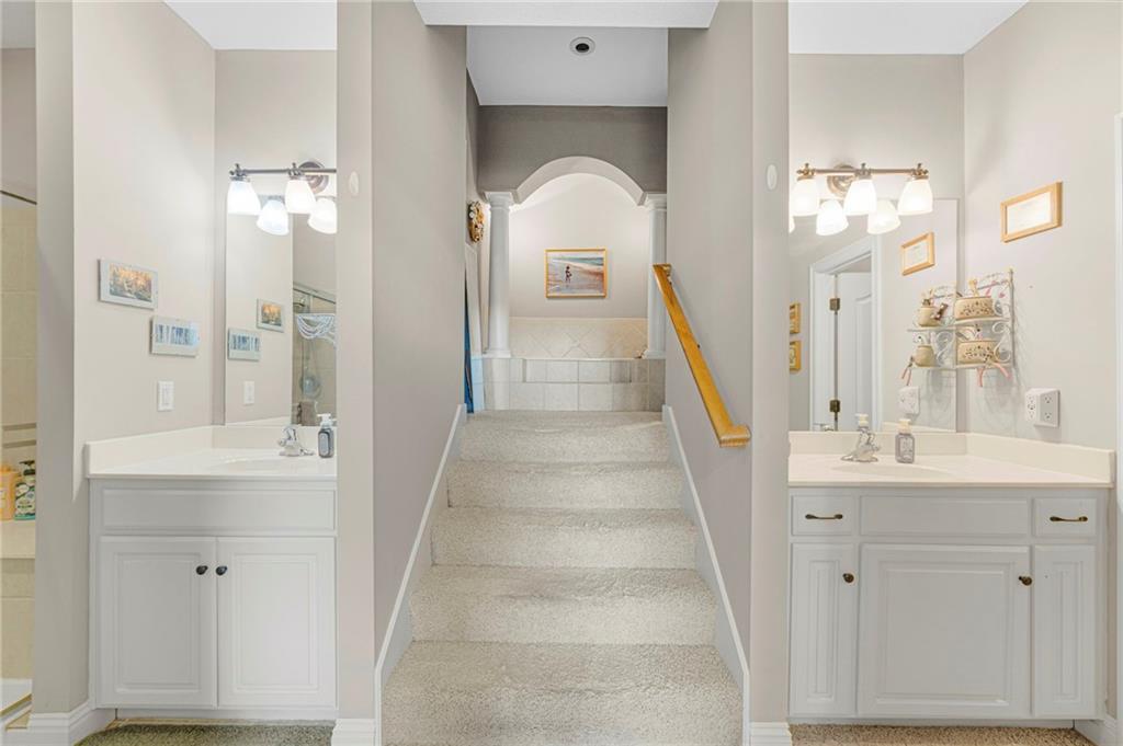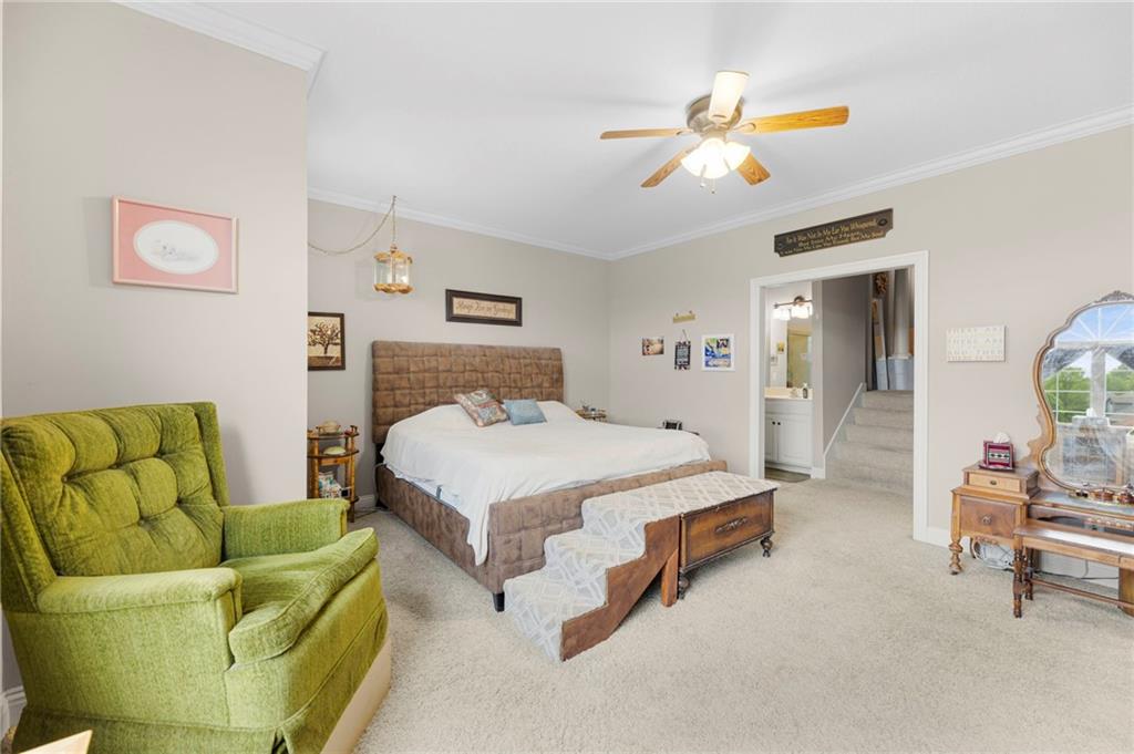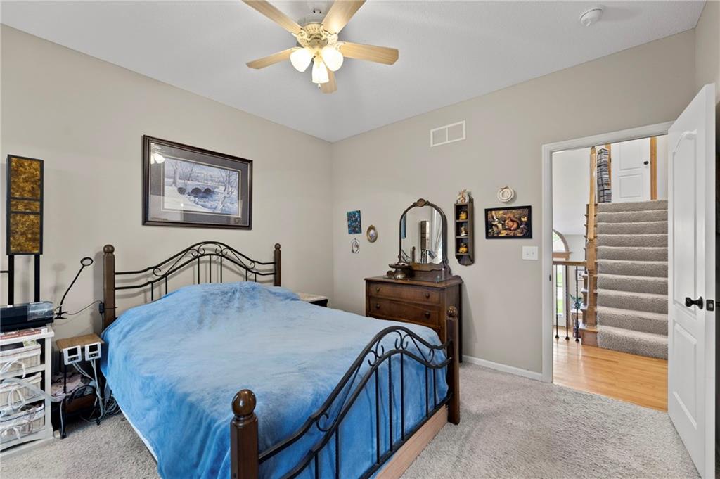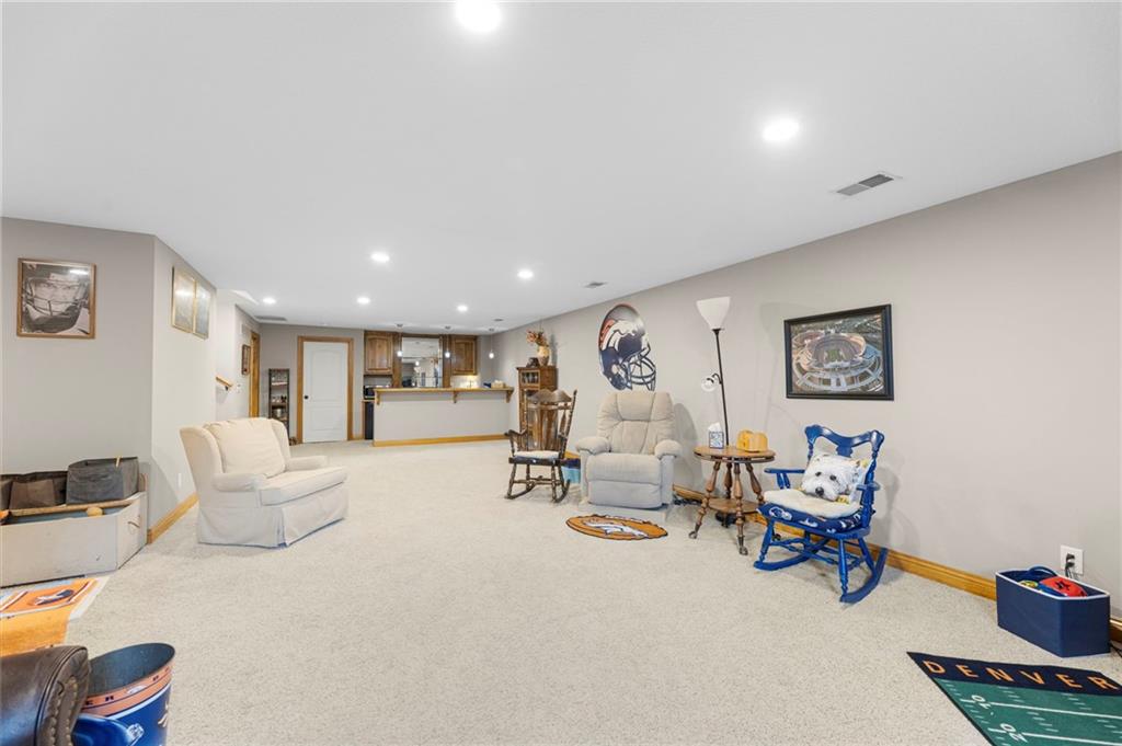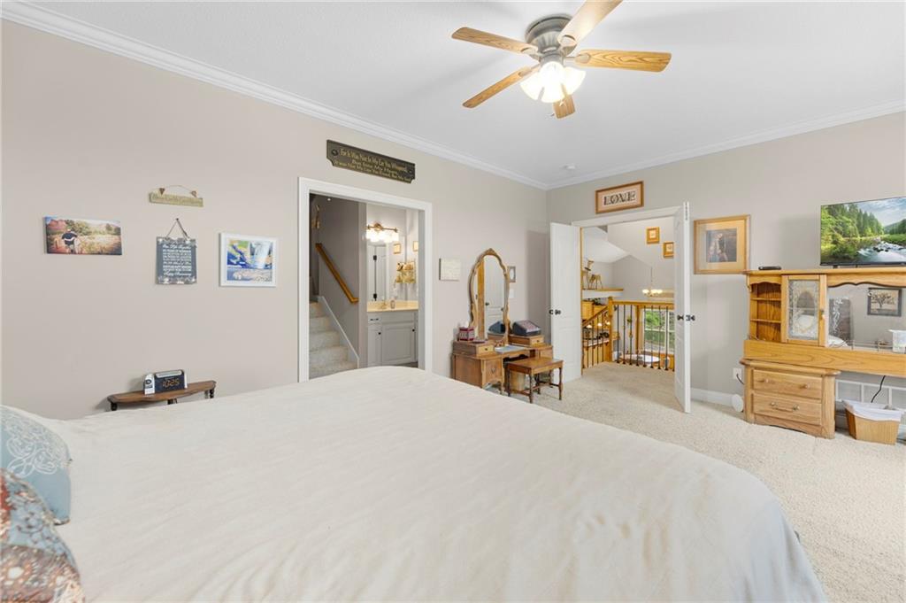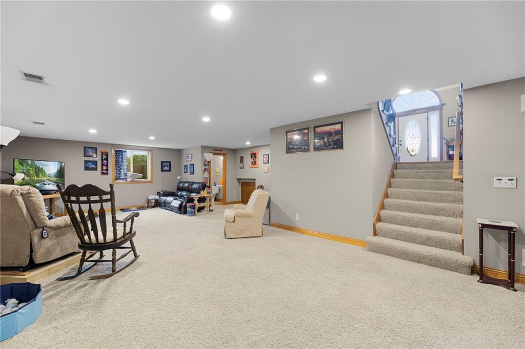 Lake, Fishing & Pool Community — WOW!! Gorgeous California Split loaded with upgrades offering over 3,100 sq. ft. and a 3-car garage! This stunning home features an open, light-filled floor plan with soaring vaulted ceilings. The spacious kitchen flows seamlessly to a large deck overlooking a private, well-maintained treed backyard—perfect for entertaining. Meticulously cared for, this home truly shines. The oversized primary suite boasts a luxurious bath with double sinks, a jacuzzi tub, separate walk-in shower, and two impressive 16x6 walk-in closets. Generous secondary bedrooms also include walk-in closets. The gigantic lower-level rec room is an entertainer’s dream, complete with a full wet bar. Major updates and features include a newer roof (2018), heat pump, gas fireplace, walk-in linen closet, and all appliances stay—making this home truly move-in ready. Enjoy all the amenities of this vibrant community for just $500/year, including a neighborhood pool, pool parties, scenic walking trail around the lake, and an annual 4th of July parade. Located in a highly sought-after Blue Ribbon school district—this home truly has it all!