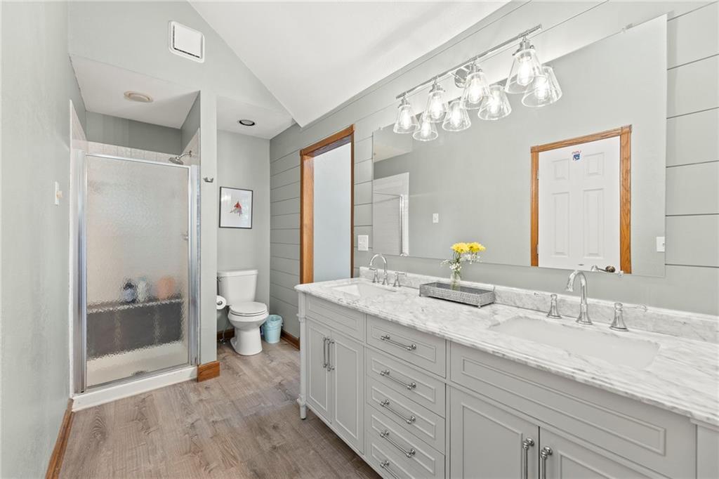 Style meets substance in this Lenexa gem. This 4 bedroom, 2.5-bath home has been thoughtfully updated inside and out-featuring gleaming hardwoods, a modern kitchen with a deep farm house sink, updated bathrooms and crisp new paint throughout. New siding, a new fence, new roof, new sewer line, and a brand-new driveway, the exterior is as solid as it is stunning. Tucked into a setting that's not your cookie-cutter neighborhood, nestled on a spacious .3-acre lot with a small creek along the edge of the property, offer a touch of nature right at home. Enjoy being just .4 miles from Mill Creek Trail and from Lenexa City Center, including the library and Public Market. With great highway access, you'll appreciate both the convenience and the character this home delivers. Move right in a start living your best Lenexa life!