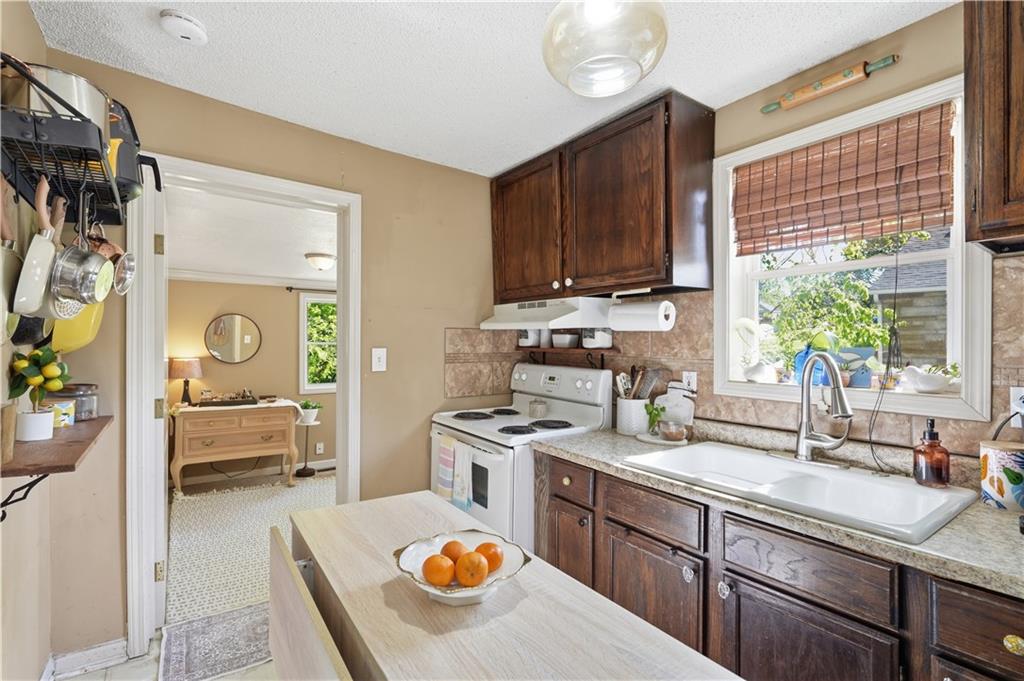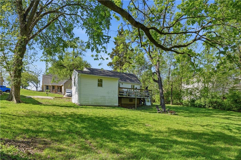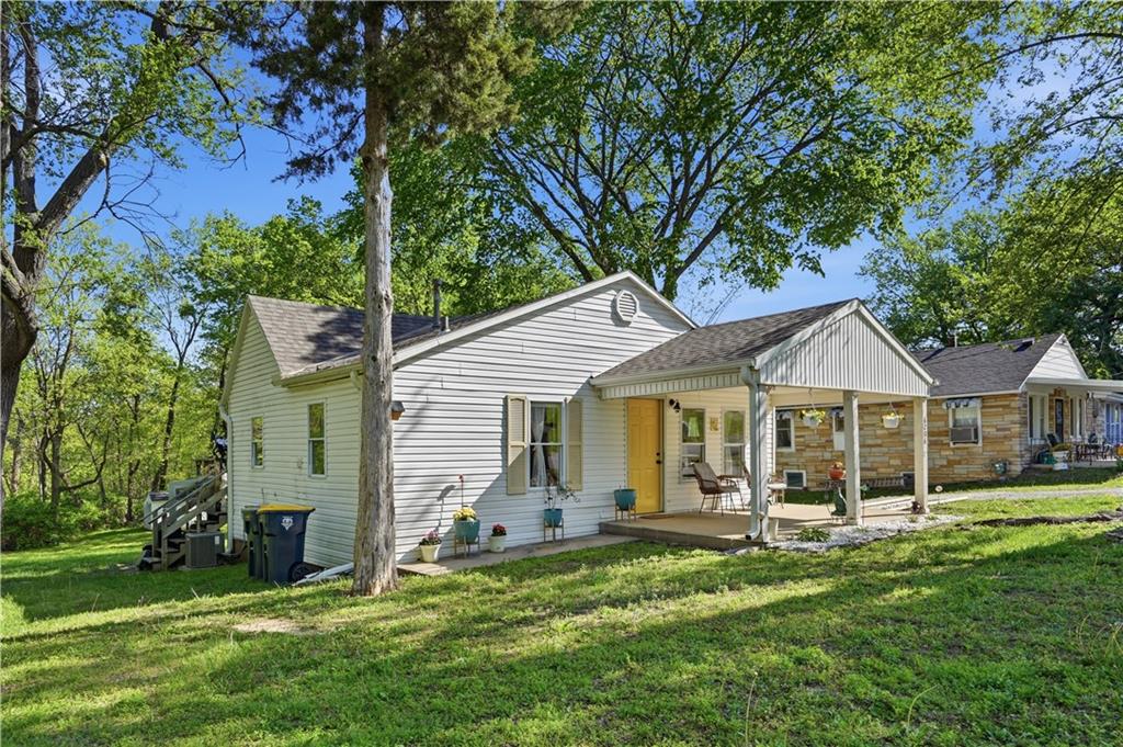 Welcome to this charming Kansas City bungalow, perfectly tucked away on nearly half an acre and surrounded by mature trees for added privacy and tranquility. From the moment you arrive, you’ll be drawn in by the inviting front porch—ideal for slow mornings and evening conversations. Out back, a second porch offers a more secluded space to relax, entertain, or simply enjoy the peaceful setting. The expansive, tree-lined lot is a rare find, providing endless possibilities for outdoor living, gardening, or future expansion. It’s the kind of space that gives you flexibility while still feeling cozy and manageable. Inside, this 2-bedroom, 1-bath home offers a warm and functional layout, ready for its next owner to move in and make it their own over time. Conveniently located in the Northland, this home offers quick access to major highways, is just minutes from downtown Kansas City, and close to the KC Current stadium—making it an ideal blend of quiet living and city accessibility. Whether you’re a first-time buyer, downsizing, or looking for a property with land and potential, this one checks the boxes.