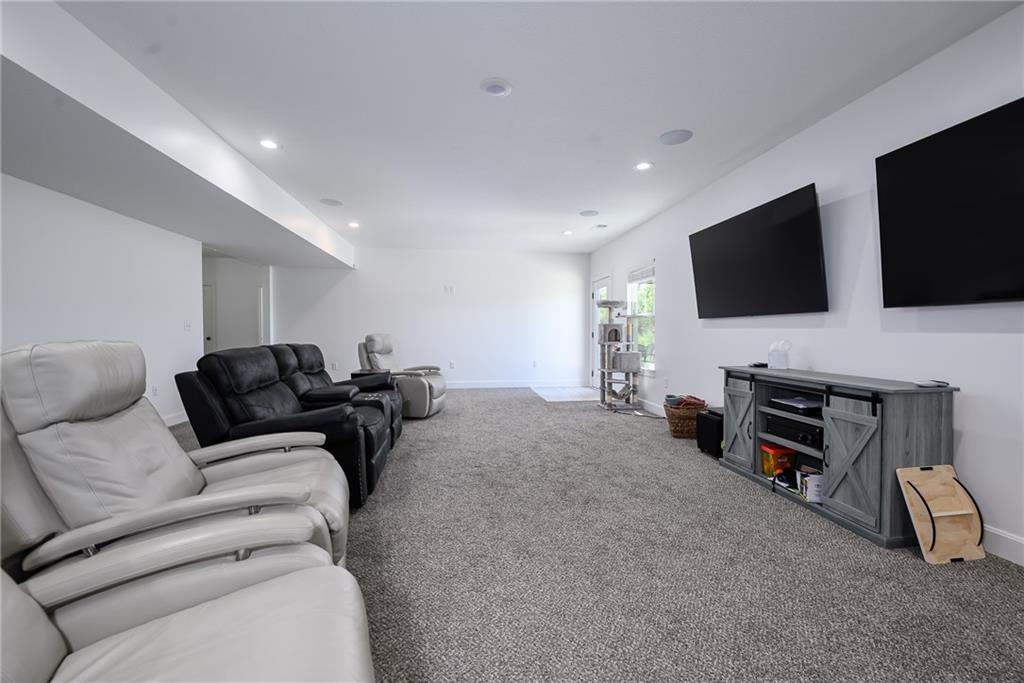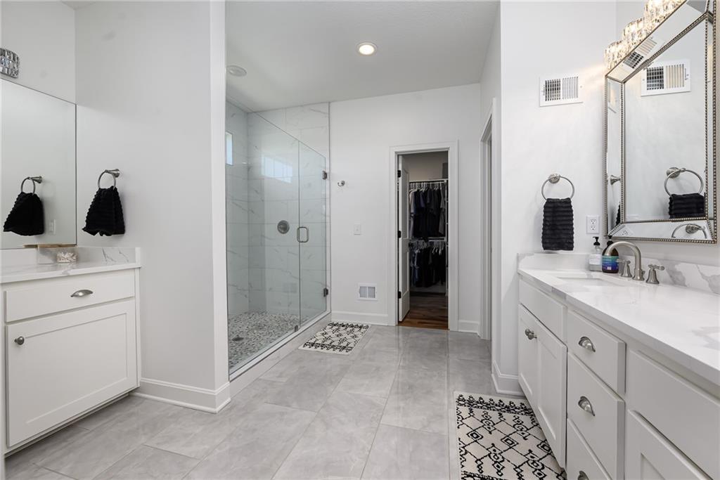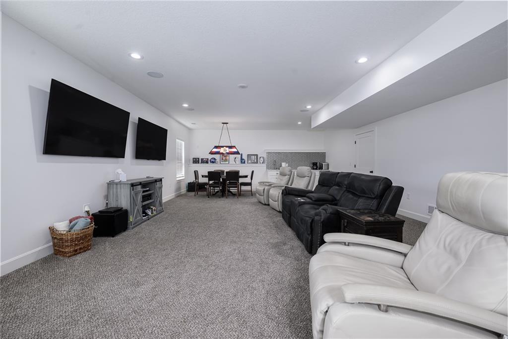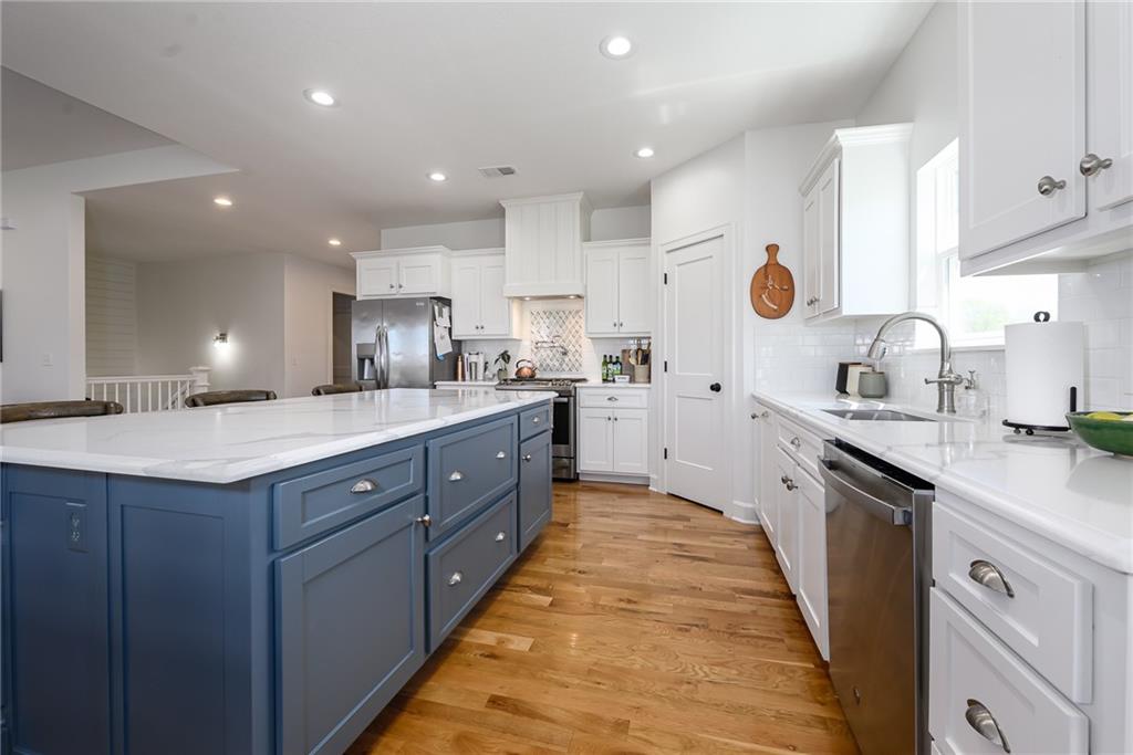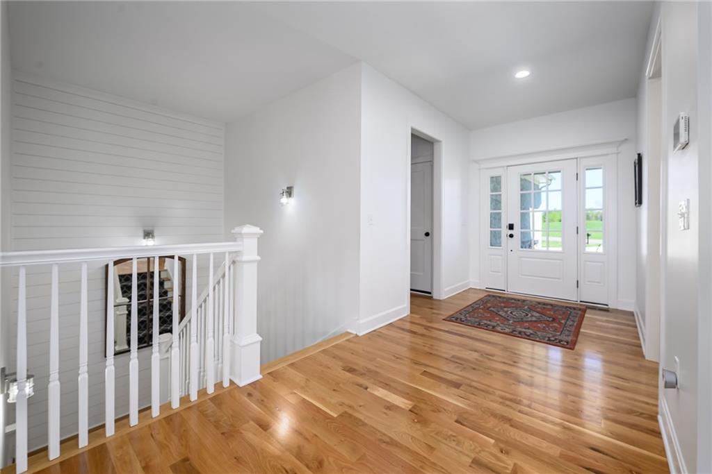 SPACIOUS 4 BEDROOM REVERSE 1.5 STORY ON 2.47 ACRES WITH AN IMMACULATE, OPEN FLOOR PLAN! Hardwood floors flow through the main living area, and the chef’s kitchen features an island, quartz counters, pot filler, gas range, and pantry. The vaulted living room centers around a fireplace, while the main-level master suite offers a large walk-in closet that connects to the laundry, plus a private bath with quartz counters, double vanities, makeup counter, and a large walk-in shower. There are 2 laundry areas, one on the main floor and one in the basement, along with one additional bedroom and full bath upstairs. The walkout basement is built for entertaining with a huge family room, wet bar, and 2 TV setups, plus 2 more bedrooms and a full bath. Enjoy the covered deck, large patio, covered porch, 3 car garage, on-demand hot water heater, high-efficiency HVAC, and storm shelter under the front porch. Perfect location, perfect home.