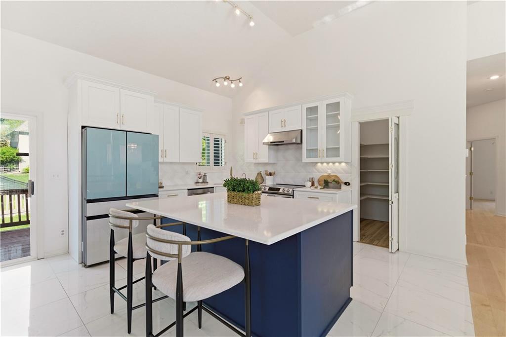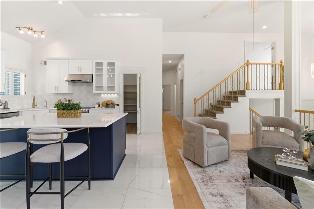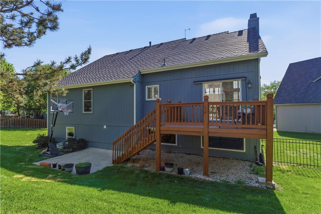 Chic, Fun, and Fully Updated! Ideally situated at the end of a quiet cul-de-sac, this unique custom-built home offers over 3,200 sq. ft. of finished living space. The interior is defined by a dramatic open floor plan featuring soaring 13-foot ceilings and high-quality finishes like Anderson windows, maple hardwood flooring, silent floor construction & plantation shutters. The heart of the home is a dazzling, remodeled kitchen complete with an expansive center island, new cabinetry, stylish backsplash, modern lighting, and premium appliances. Retreat to the totally private primary suite, which occupies its own dedicated level. This sanctuary features double-door entry, vaulted ceilings, a massive walk-in closet, and a spa-like bath with a jetted tub, sit-down vanity, and a custom shower with seating. The versatile layout includes two additional bedrooms on the main level and a lower-level bedroom with a bonus room, perfect for guests or a home office. Entertainment options abound in the huge family/media room, which comes ready for movie night with a projection screen TV. Behind the scenes, enjoy peace of mind with a BRAND-NEW COMP Roof and a high-end Trane furnace with zoned controls and a Honeywell humidifier. Step outside to a fully fenced lot, perfect for play or relaxation. This move-in-ready gem combines architectural character with top-tier mechanicals in a location that can't be beat. Located in award winning Blue Vally Schools and Close to Shops at Prairie Fire, Blue Hawk and Corbin Park and easy highway access. Come check this beautiful residence out. So much space for the $$$