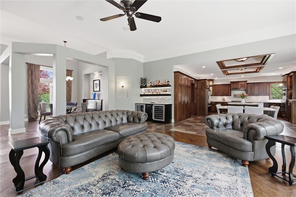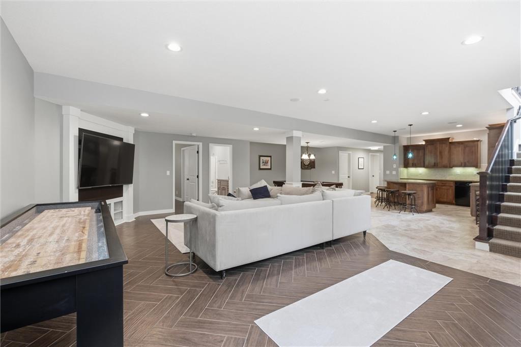 Welcome to a truly elevated living experience—where thoughtful design meets high-end upgrades at every turn. This stunning home features a chef’s dream kitchen with premium Bosch and Z-Line appliances, a prep sink, pot filler, glass washer, Brazilian marble island, and a fully equipped coffee station. Entertain with ease at the bar with wine/beverage refrigerator and expansive outdoor kitchen and living space. The open main level shines with new hardwood floors, fresh paint throughout, and smart WiFi dimmable lighting paired with surround sound inside and out. Enjoy year-round comfort with a high-end Bosch furnace and tankless water heater. The luxurious primary suite offers, his & hers walk -in closets, heated bathroom floors, a spa-like shower with multiple jets, and custom vanity with hidden power features. The fully finished lower level is ideal for multi-generational living or guests, complete with a second full kitchen, private garage entry, ADA-compliant features, and its own laundry hookup. From the oversized garage with cabinets and epoxy floor to the new concrete driveway apron, no detail has been overlooked. This is a rare opportunity to own a move-in ready home with luxury, function, and flexibility—schedule your private showing today before it’s gone!
