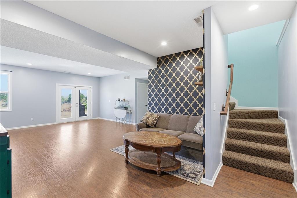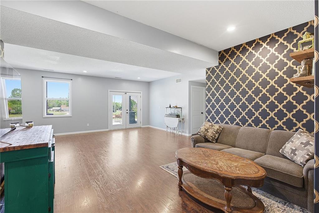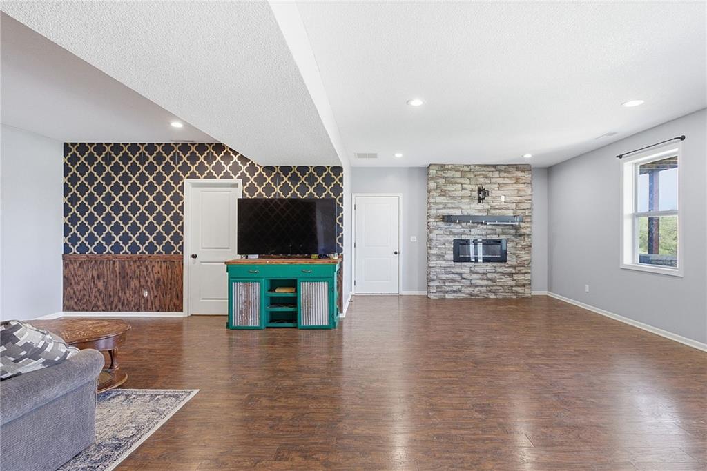 Welcome home to this custom-built 4 bed/3 bath ranch on 3.3 acres, designed with an easy open layout. The kitchen is ready for everyday life and entertaining, with an island, lots of cabinets, granite counters, a pantry, stainless appliances, and tile floors. Cozy up in the great room by the eye-catching rock fireplace. The primary suite feels like a retreat, featuring a big walk-in shower, soaking tub, and a walk-in closet tucked behind barn doors, plus two more bedrooms and a full bath on the main level. Downstairs, the walkout lower level adds even more space with a second rock fireplace, a 4th bedroom, a bath, and an office (or 5th nonconforming bedroom). You’ll love the laundry/pantry off the kitchen—plus a second laundry area in the basement. Step out to the covered patio and enjoy summer days in the 16x32 inground saltwater pool. With abundant wildlife, miles of views from the upper deck, and a peaceful blacktop location between Paola and Louisburg with quick access to Highways 69 and 169, this one checks all the boxes.