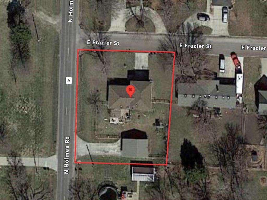 69 Hwy East on 359th St (Drexel Exit) road curves North on Second Street go through next curves to Holmes Rd (in town) house on South East corner of Holmes and Frazier Holmes