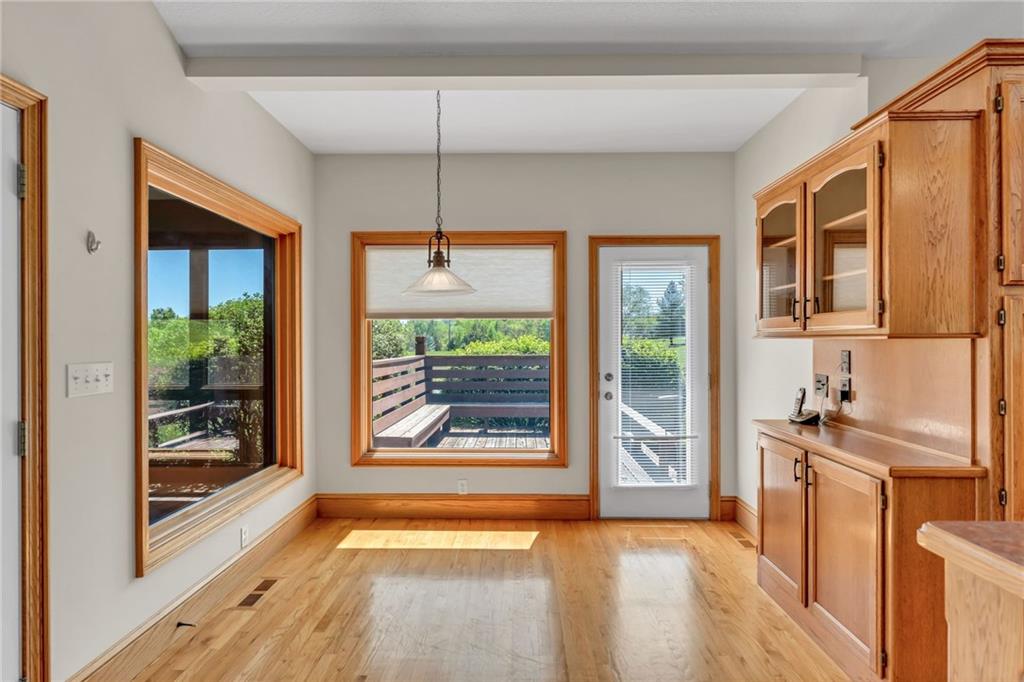 Enjoy peaceful country living just south of Lawrence on 5 scenic acres! This custom-built home showcases beautiful woodwork and quality craftsmanship throughout. The spacious, open main level is filled with natural light from large windows that capture stunning views in every direction. Relax and unwind in the inviting three-season porch, perfect for enjoying the outdoors year-round. The walkout basement features a large family room—ideal for entertaining or gathering—along with plenty of unfinished storage space for all your needs. Outside, you’ll find a pond, wide open space to roam, and a large tool shed for hobbies, equipment, or extra storage. A fantastic opportunity to own a cared for home with room to breathe, just minutes from town!