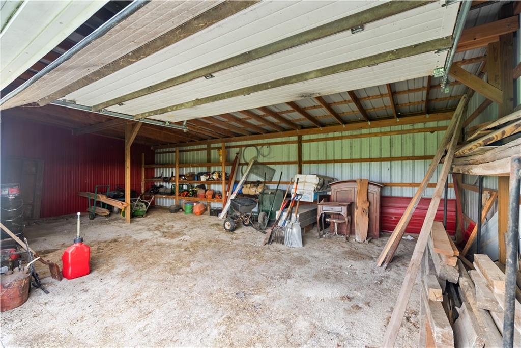 If you’ve been dreaming of a little space to spread out without giving up comfort, this one feels like home the minute you pull in. Set on 9.13 acres, this 3 bedroom, 2 bath ranch offers 1,793 square feet of easy, single-level living with room to breathe inside and out. Step through the door and you’re welcomed by warm hardwood floors that run throughout the home, creating a cozy, connected feel. The living area centers around a wood-burning fireplace, perfect for slow evenings and gathering with family or friends. The kitchen brings a touch of modern style with granite countertops, and all appliances stay, making the move-in process simple. Both bathrooms have been updated with LVP flooring for durability and style, while central HVAC keeps things comfortable year-round. Updated windows and insulated siding help create a quieter, more efficient space, even with the convenience of nearby highway access. Outside is where this property really starts to tell its story. Whether you're working, tinkering, or just need extra storage, the detached 2 car garage/shop is ready to go with two overhead doors and its own wood-burning stoves. There’s also an additional outbuilding with an overhead door and lean-to, plus a small shed for all the extras. Dog pens are already in place and will stay, making it easy for your four-legged companions to settle in too. You’ll find yourself drawn to the outdoor spaces, from the covered east-facing patio that’s perfect for morning coffee to the pergola patio on the south side, ideal for winding down at the end of the day. With a roof that’s only 5 years old and low-maintenance vinyl siding, the big items are already taken care of. This is the kind of place where you can slow down a bit, enjoy the land, and make it your own, whether that means gardening, hobbies, or simply enjoying the quiet of country living.