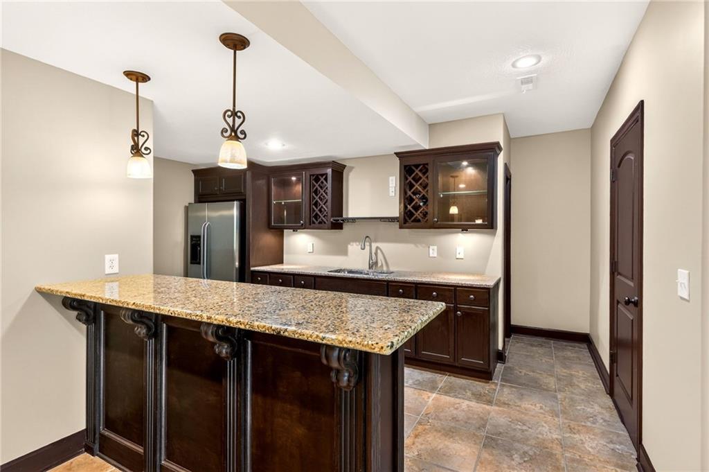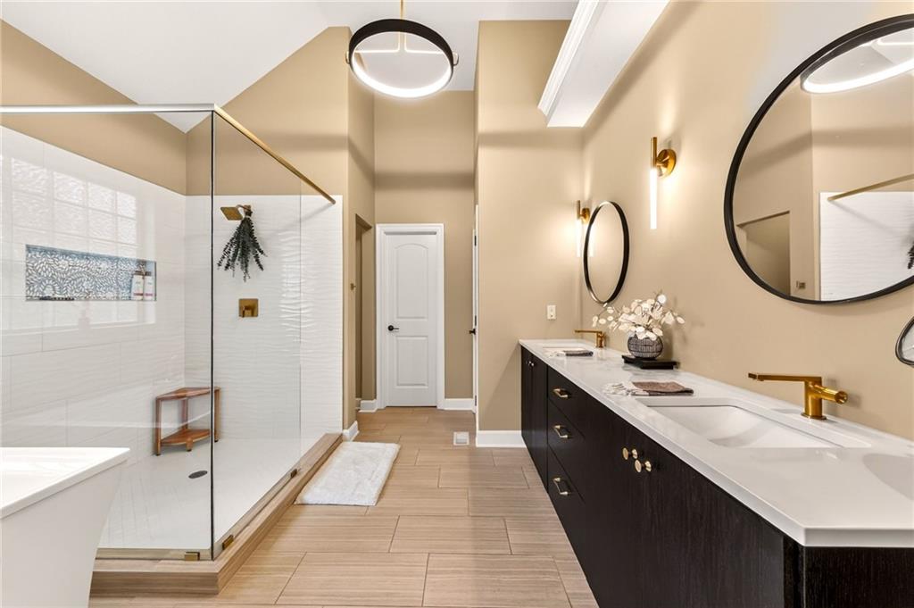 Welcome home to this show-stopping 1.5-story in the highly coveted Copperleaf community! Perfectly positioned in the Liberty School District, this one-of-a-kind property offers over 5,000 sq ft, 6 bedrooms, 4.1 baths, & a 3-car garage—backing to a private greenway for the ideal blend of space, serenity, and convenience near schools, shopping, & dining. Step inside to an inviting, light-filled open floor plan featuring formal dining & living spaces, a cozy hearth room, and a beautifully reimagined kitchen. Designed to impress, the kitchen boasts new appliances, updated countertops, tile backsplash, freshly painted cabinetry, an oversized island, and a walk-in pantry, perfect for everyday living and entertaining alike. Rich hardwood floors span the main level, complemented by a stylishly retiled fireplace and elevated finishes throughout. The main-level primary suite is a true retreat, highlighted by a completely remodeled and expanded, one-of-a-kind spa-like bathroom with an enhanced, modern, and functional flow! Enjoy Kohler fixtures, a custom vanity, 6-foot soaking tub, oversized walk-in shower, and added storage. A second main-level bedroom and half bath provide ideal flexibility for guests or a private office. Upstairs, you’ll find a spacious loft, a second primary suite with en-suite bath and walk-in closet, plus two additional bedrooms and bath. The finished walkout lower level is built for entertaining, featuring a large family room, wet bar with granite counters, and a media room with custom built-ins & a hidden playroom, sixth bedroom, and full bath. Extensive updates deliver worry-free living, including a new roof, gutters with leaf guards, hot water heater, insulation, carpet, garage door, fresh interior paint, professional landscaping & comprehensive water management with French drains. BONUS: Enjoy 3 seasons of relaxation on the screened-in deck overlooking a peaceful, private backyard. Homes like this don’t come along often—schedule your showing today!