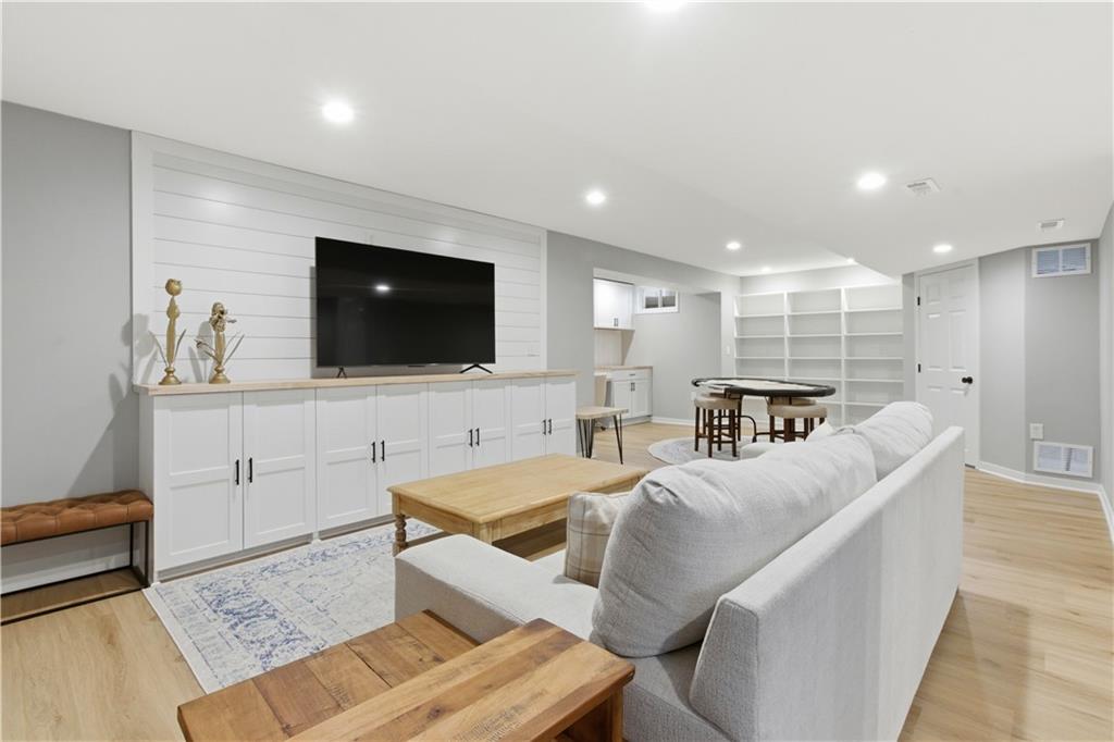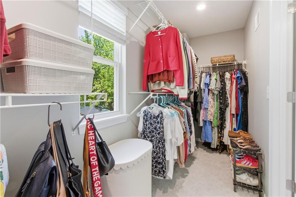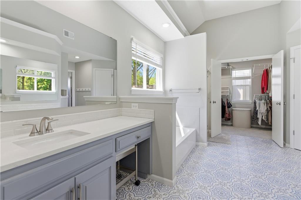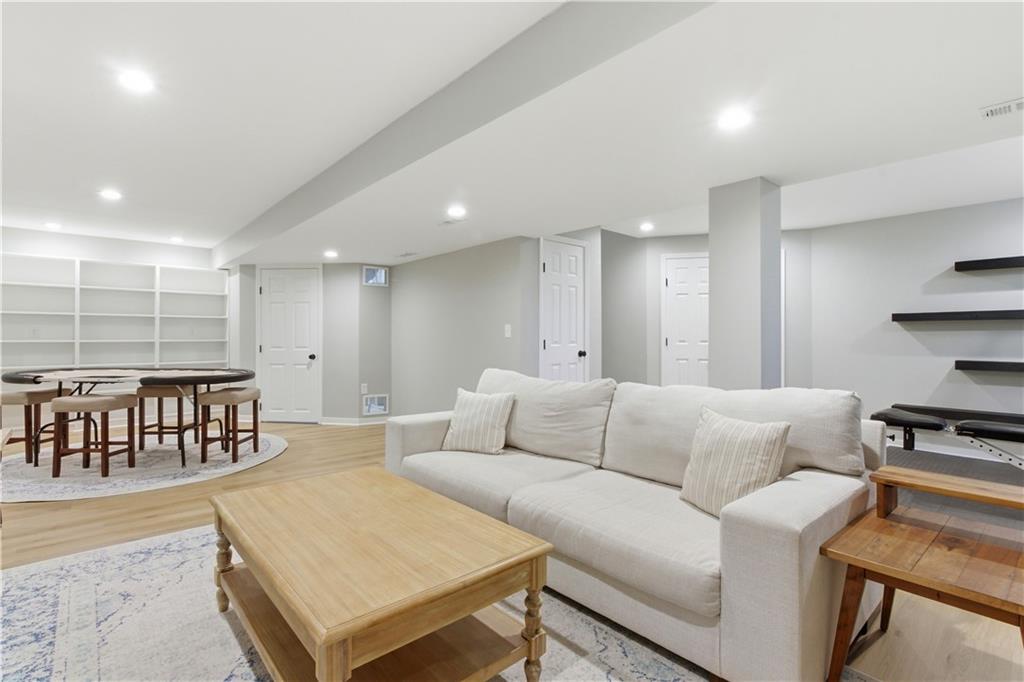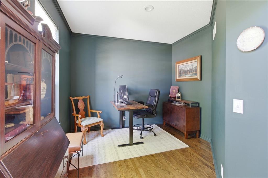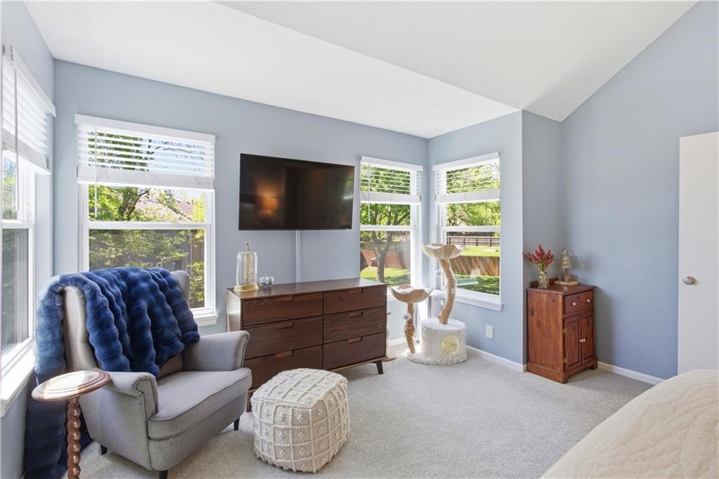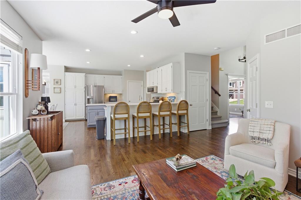 Meticulously maintained home offering exceptional curb appeal with updated landscaping and sprinkler system front and back. Cul-de-sac tucked inside the Eastbrooke subdivision. Inside, enjoy a formal living room with custom built-ins and a stunning fireplace, plus a versatile front flex room. The remodeled kitchen boasts white cabinetry, quartz countertops, designer tile backsplash, gas range, and spacious eat-in area flooded with natural light. SO much space in this kitchen, plenty of cabinets/counter space. Reverse osmosis water filter at kitchen sink. Smart home features include ring cameras, smart garage and thermostat. Beautiful wood floors flow throughout the main level. Half bath with beautiful tile! Upstairs, the spacious master suite features a luxurious bathroom with heated tile floors and impressive walk-in closets. Separate tub/shower and dual vanities. Secondary bedrooms are generously sized with updated bath. The finished lower level provides ample living space with a rec room, custom built-ins, study nook, and abundant storage including a battery backup sump pump. The expansive fenced backyard includes a spacious patio, vibrant landscaping, level yard space, and a custom workshop off the garage. Great for tool storage or wood shop. Neighborhood trails connect to the Indian Creek Trail system. This home is truly move-in ready and close to schools, shopping, dining and more!