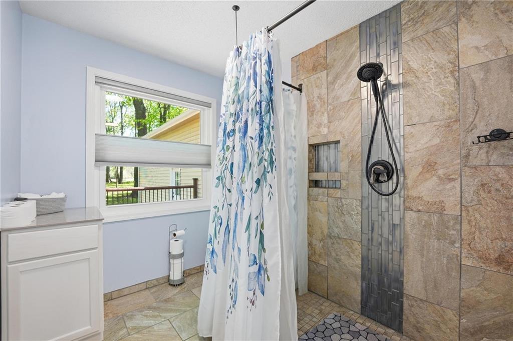 Bring the horses and farm animals...this is country living at its best, just minutes from town! Inside, you’ll find a fully updated interior with all NEW windows and a spacious great room featuring a vaulted ceiling, stunning stone fireplace, and beautiful built-in bookcase. All bedrooms are generously sized, each featuring its own half or full bath. Primary suite has a walk-in closet and en suite bath showcasing a gorgeous NEW tiled shower. Impressive lower level with 9 ft ceilings gives the space a true main-level feel. The HUGE rec room offers plenty of space for a second family room, game area, or both! The non-conforming bedroom with LVP flooring is ideal for a mother-in-law suite, teenager, or guest space, and the full basement bath adds even more convenience. Two separate garages provide tons of room for cars, boats, and all your extra toys. The lower leveled garage is even heated/cooled! Outside, you’ll love the private setting backing to greenspace, complete with a pond and 42' x 24' pole barn ready for your farm animals. And for even more charm, the chicken coop can stay...along with the chickens...if the buyer wants them!